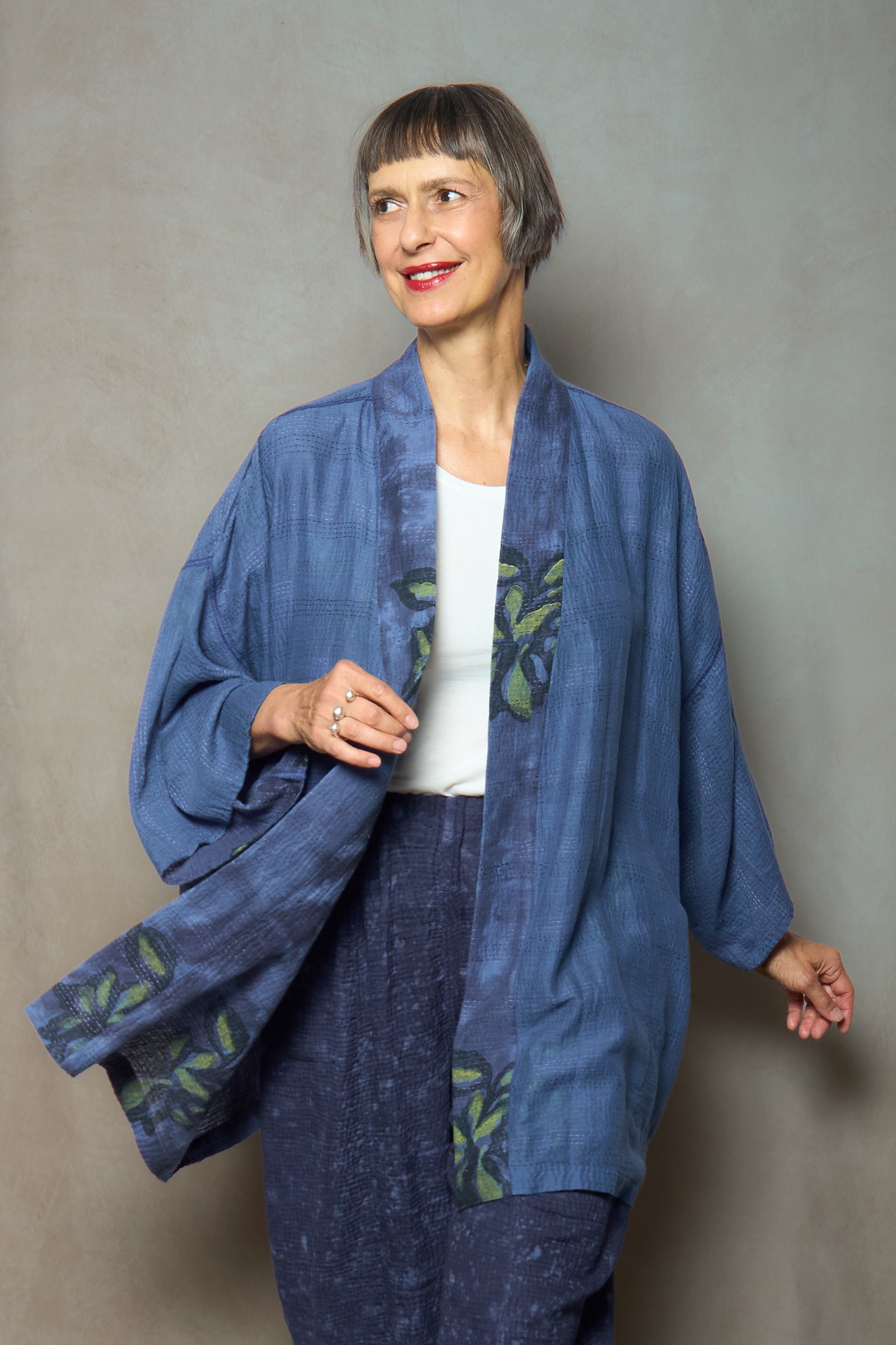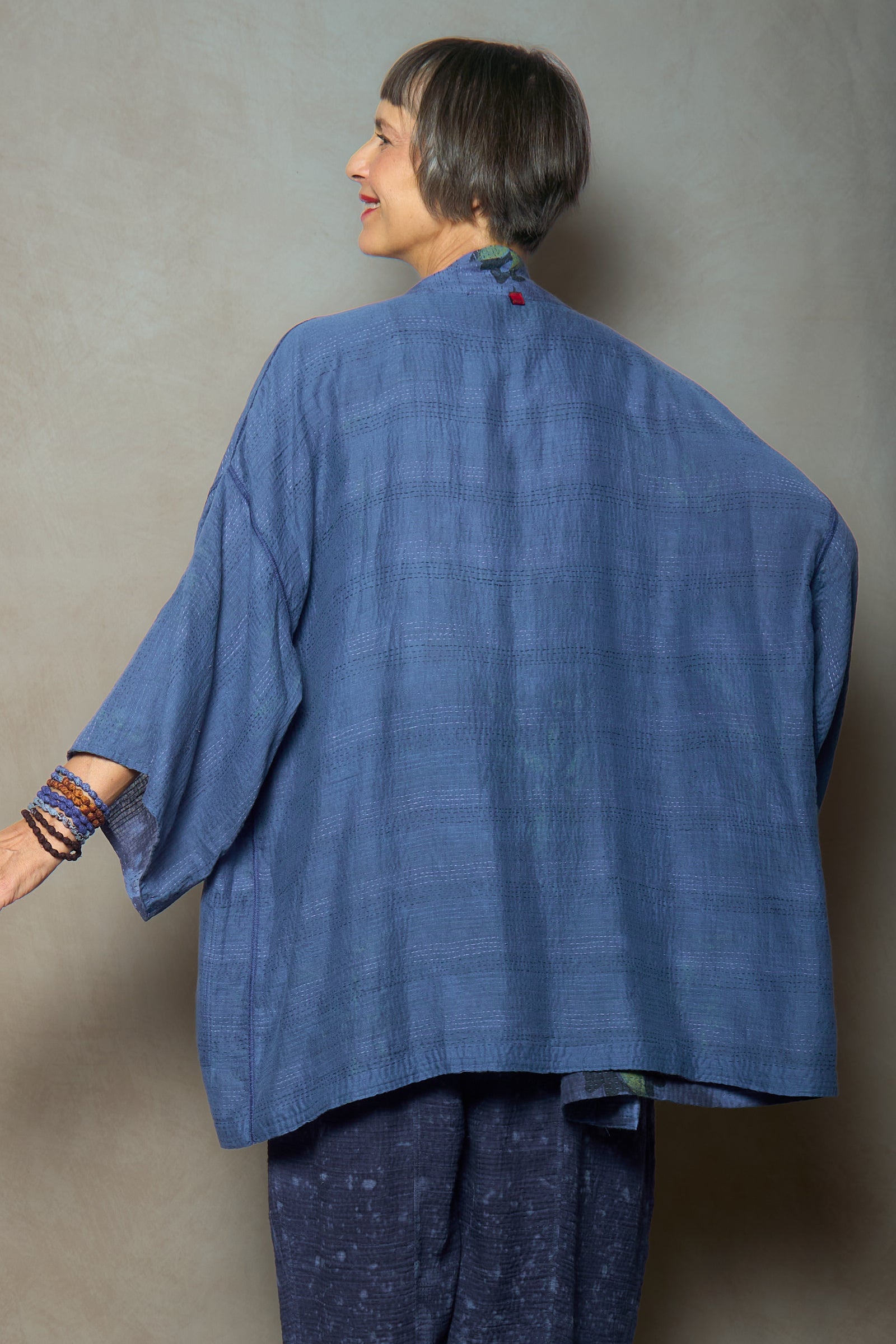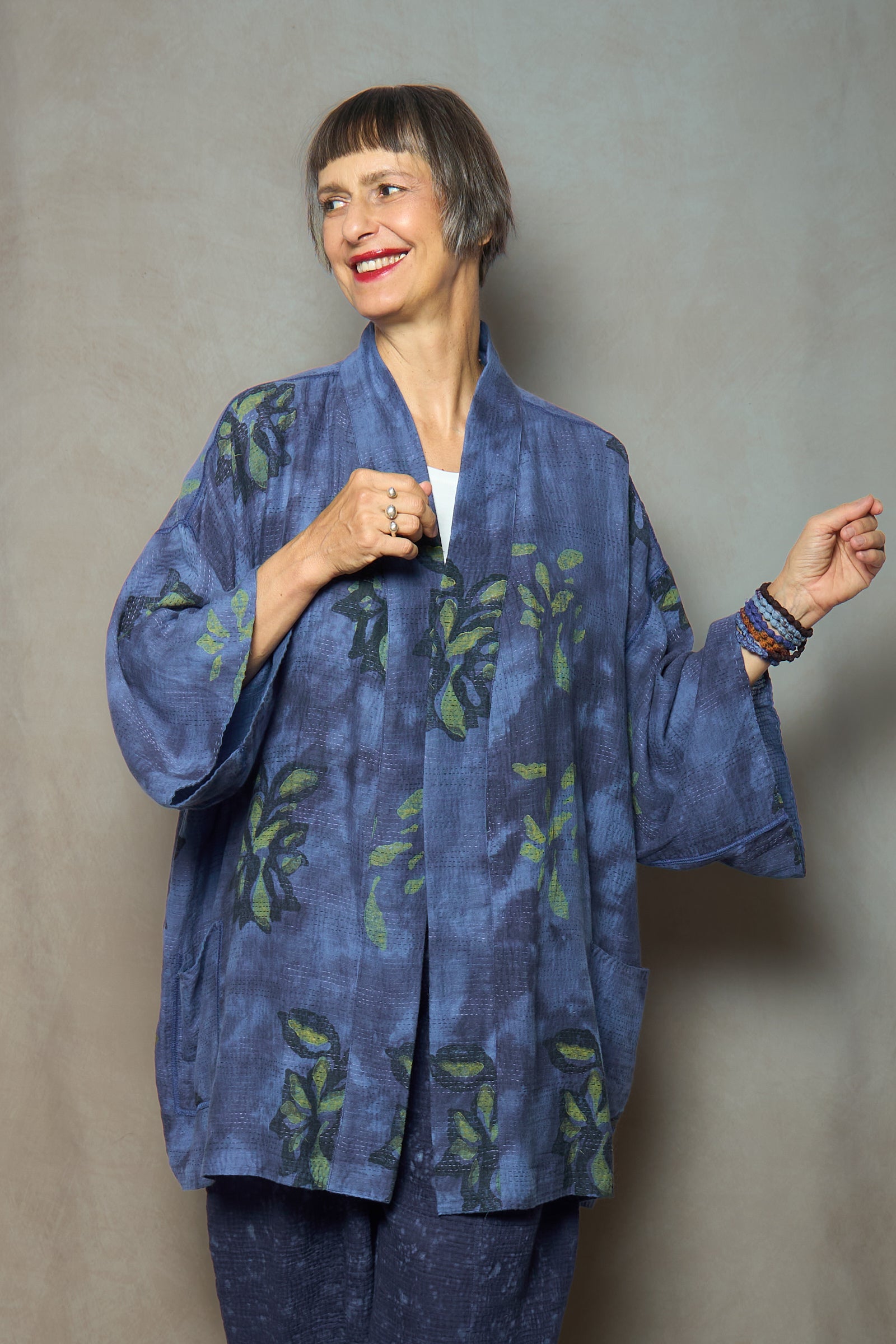 CLOUD TIE DYE FLORAL KANTHA KIMONO COLLAR JACKET - uf2j108-blu -