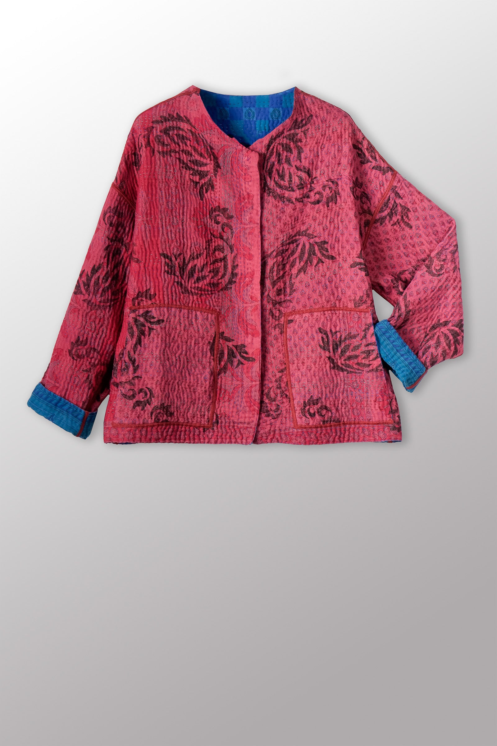 4 Layer Vintage Saris with Hand Stitches on Entire Garment - Reversible