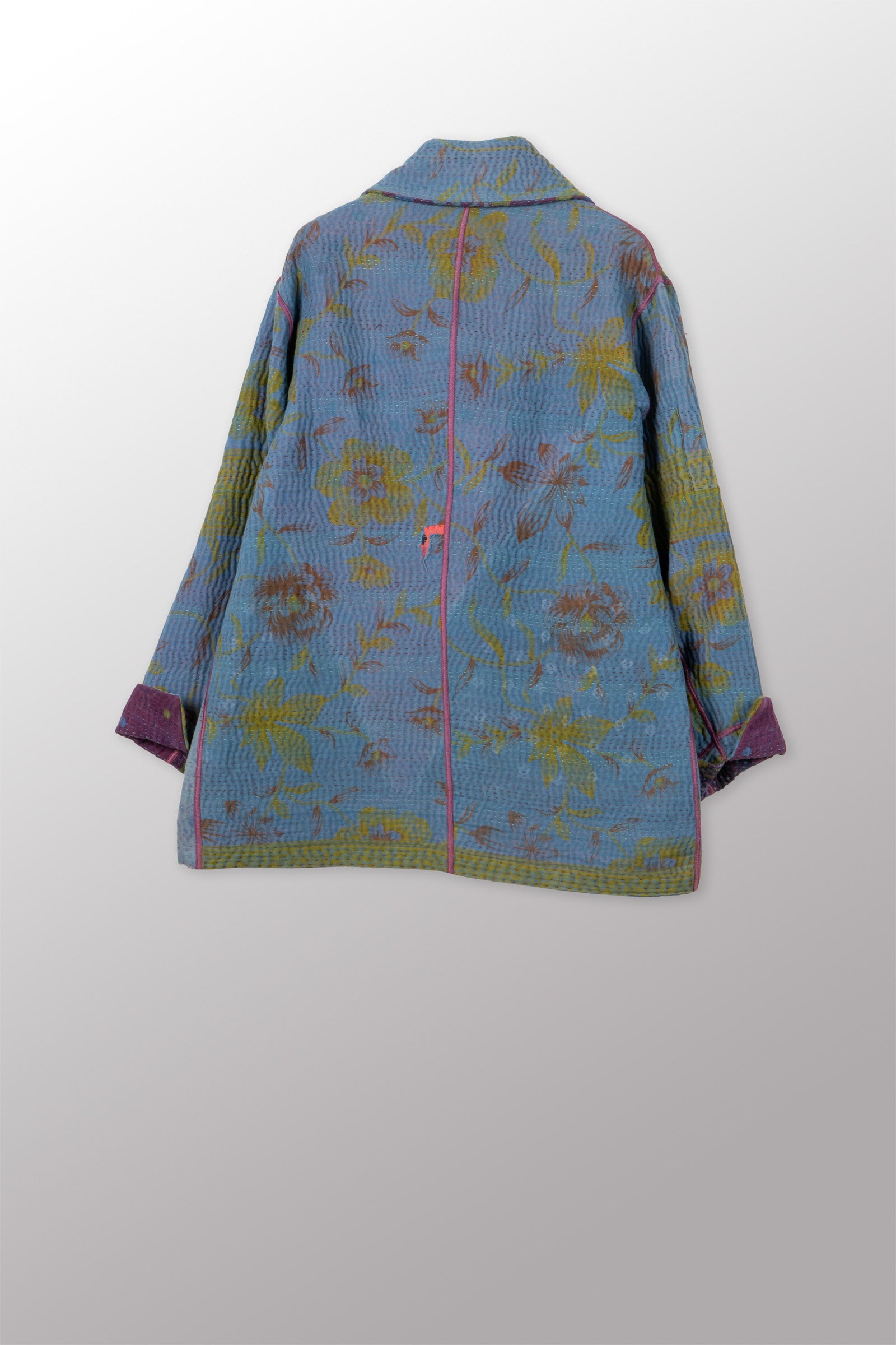 COTTON OVERDYE KANTHA PEA COAT - ov4349-cblu001m -