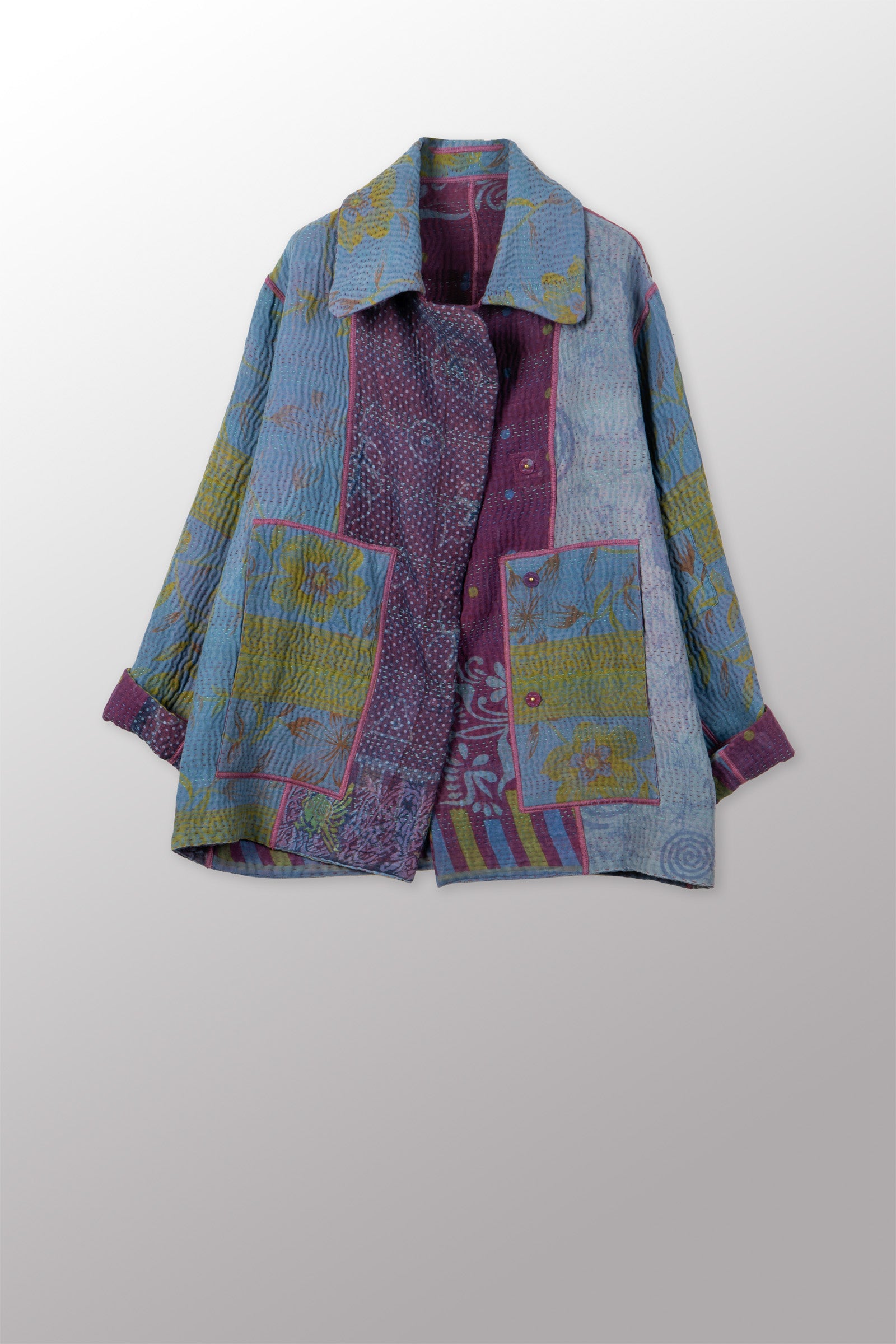 4 Layer Vintage Saris with Hand Stitches on Entire Garment - Reversible