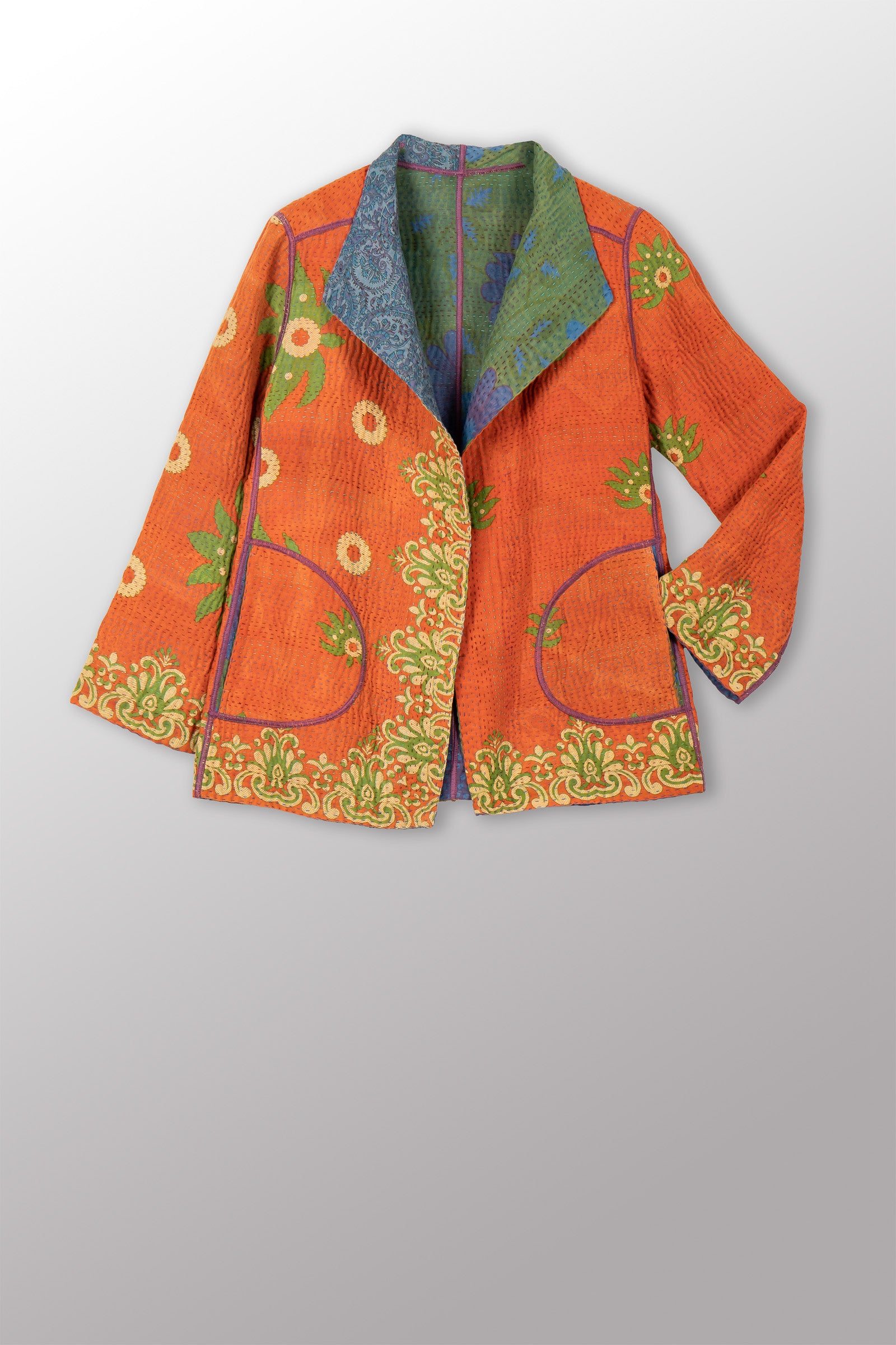 4 Layer Vintage Saris with Hand Stitches on Entire Garment - Reversible