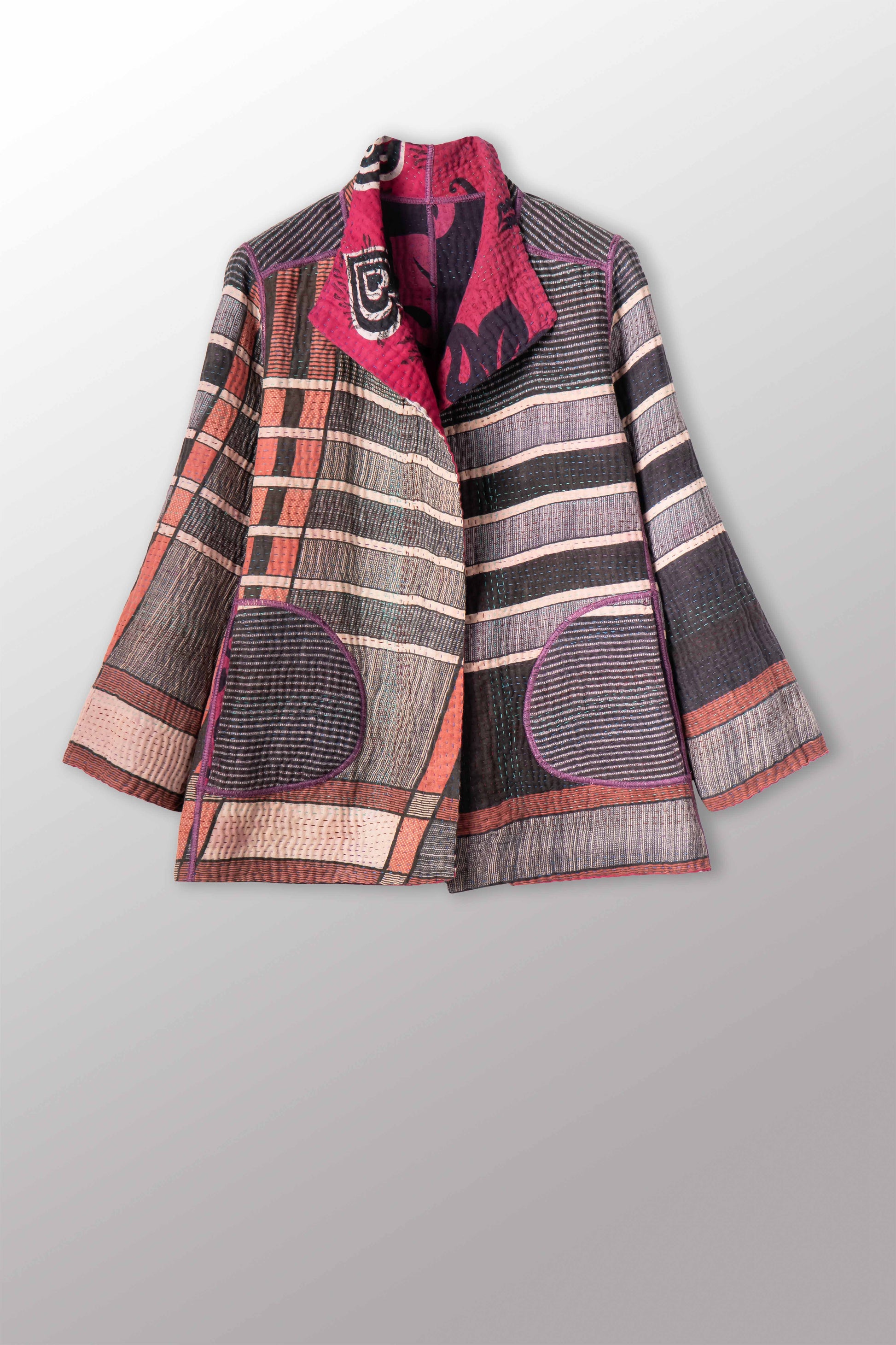 4 Layer Vintage Saris with Hand Stitches on Entire Garment - Reversible