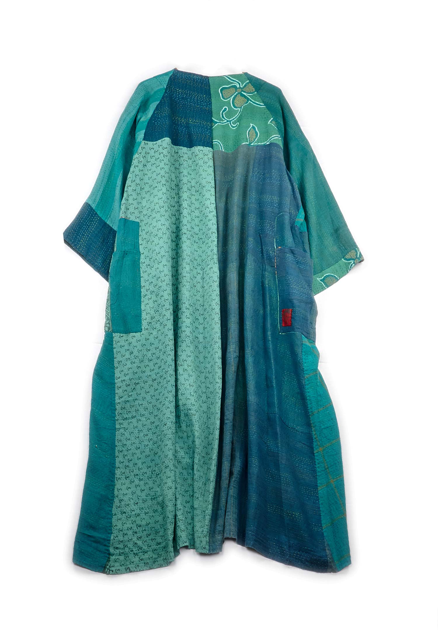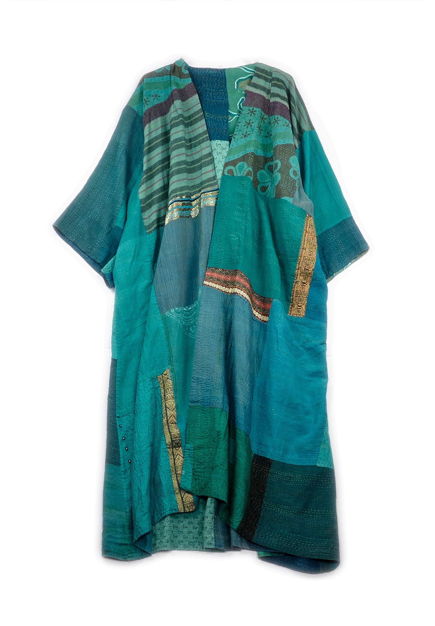 COTTON SILK SW PATCH KANTHA KIMONO MAXI - ws2318-tel -