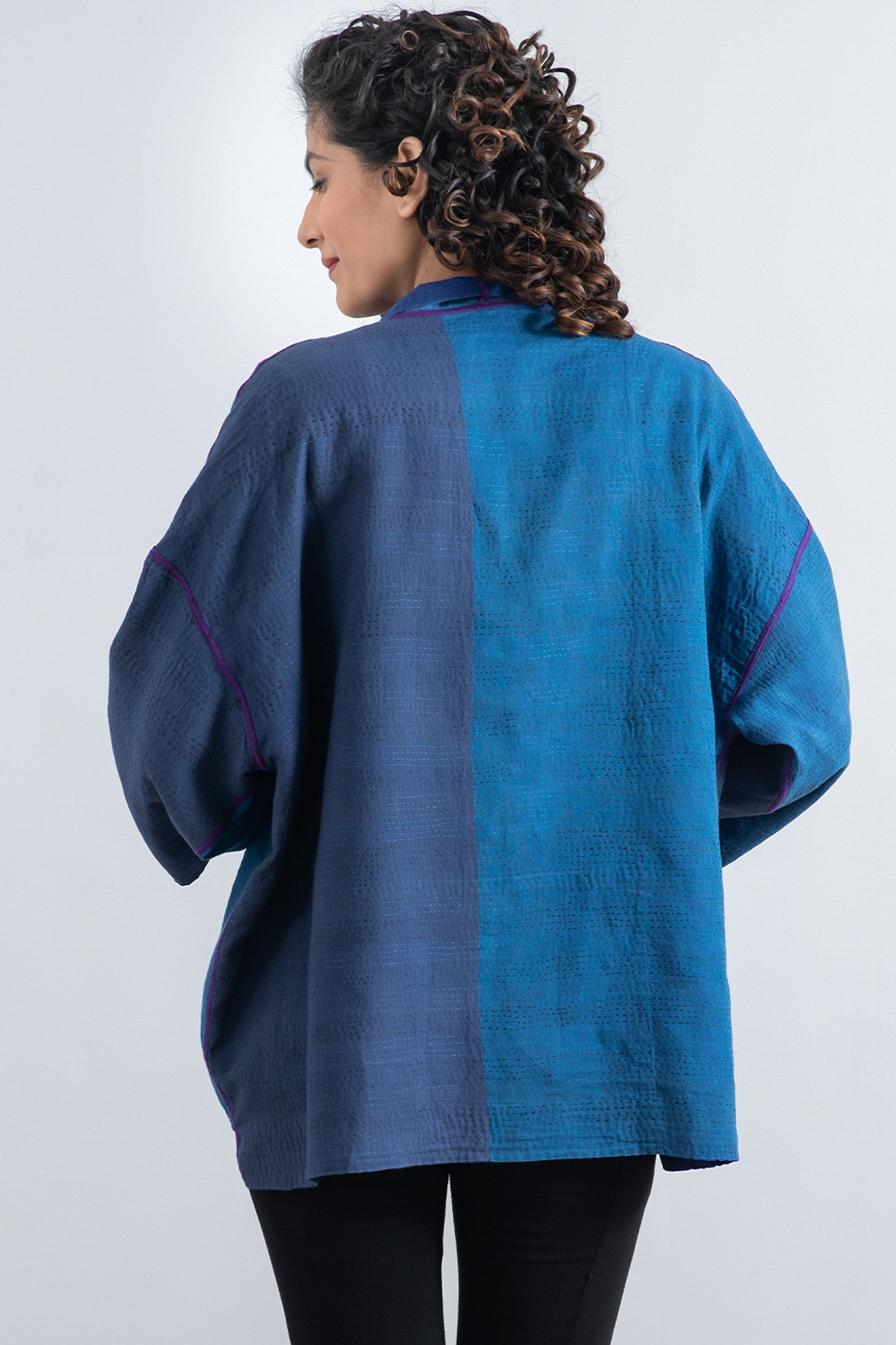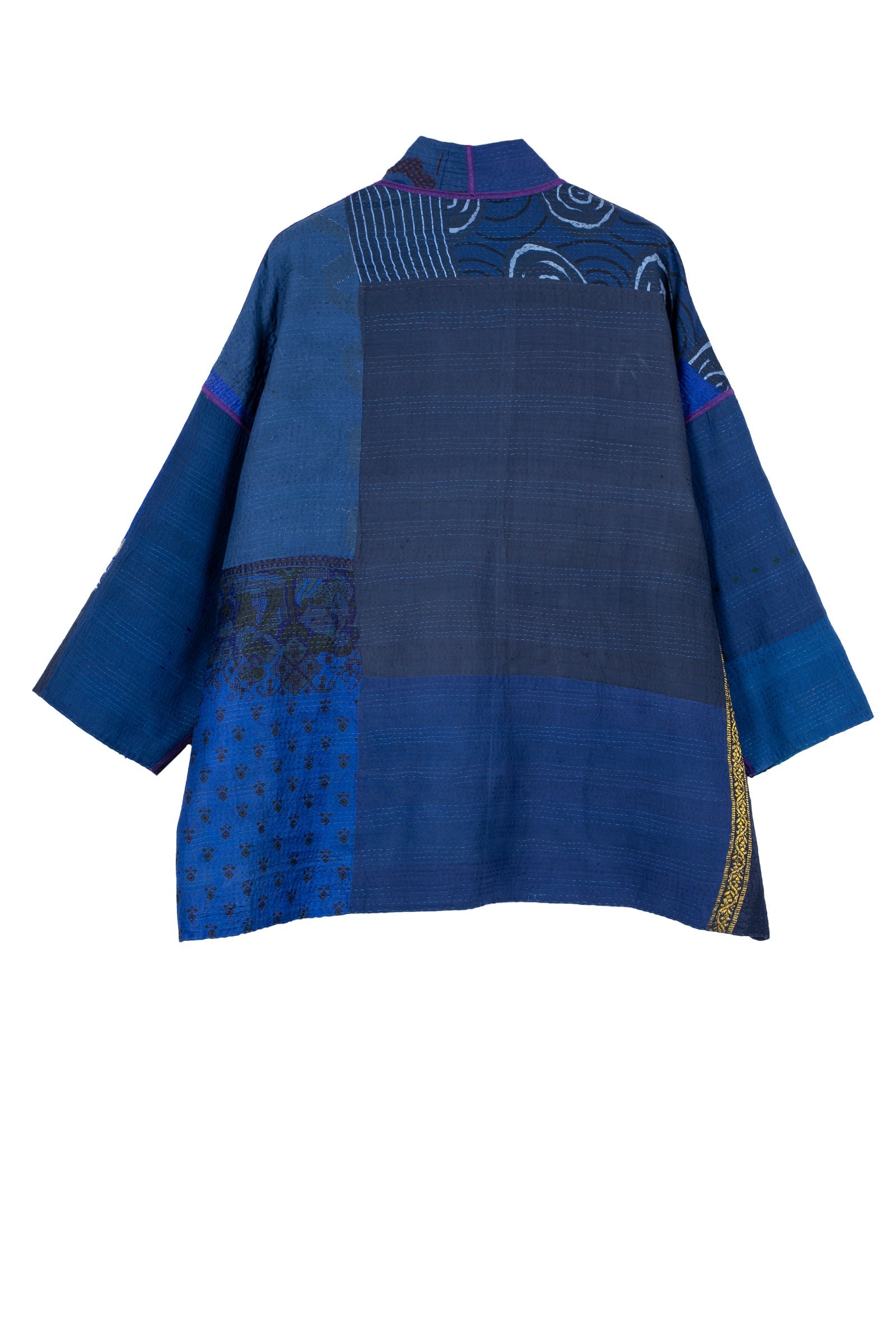 COTTON SILK SW PATCH KANTHA MINI KIMONO JACKET - ws2055-blu -