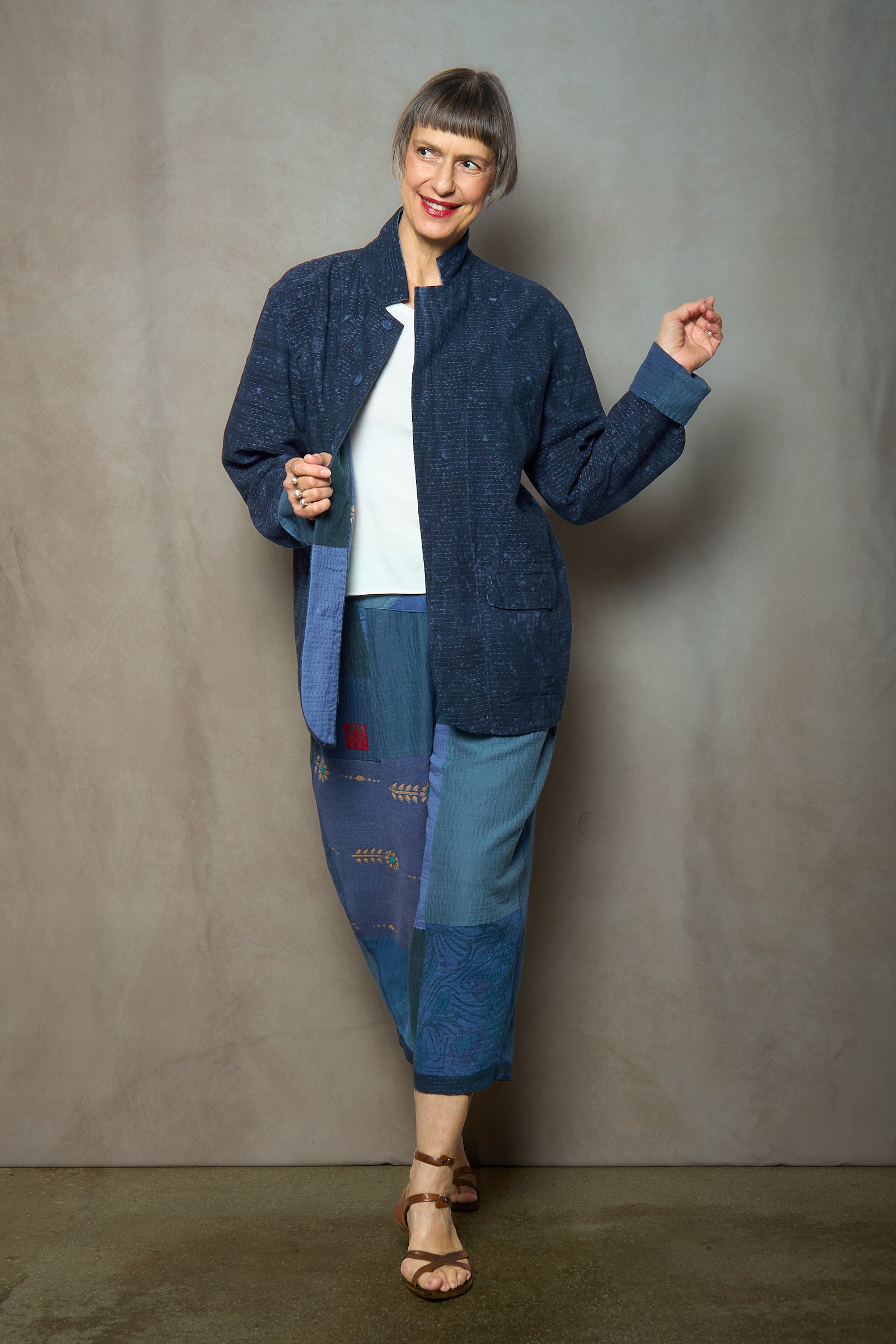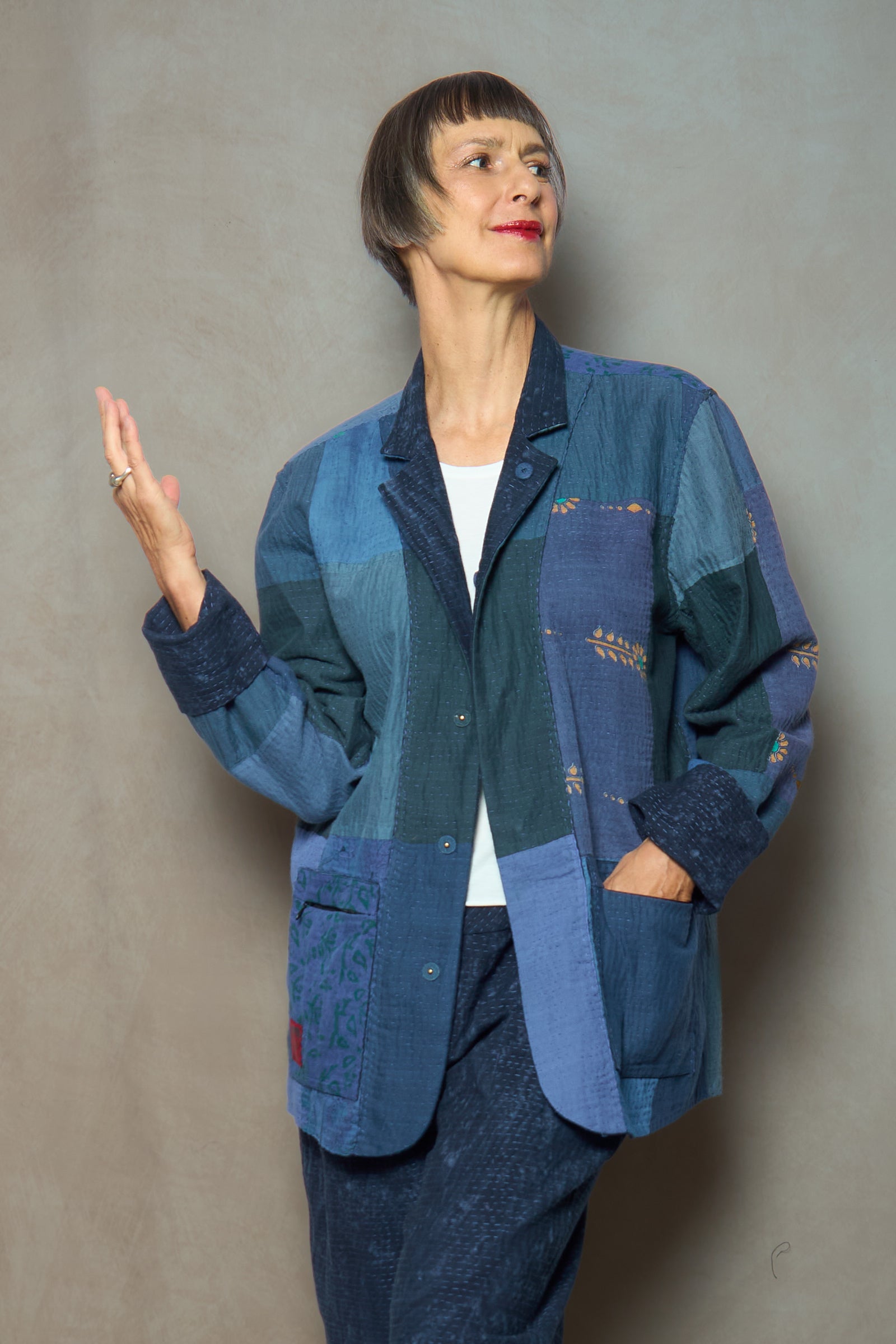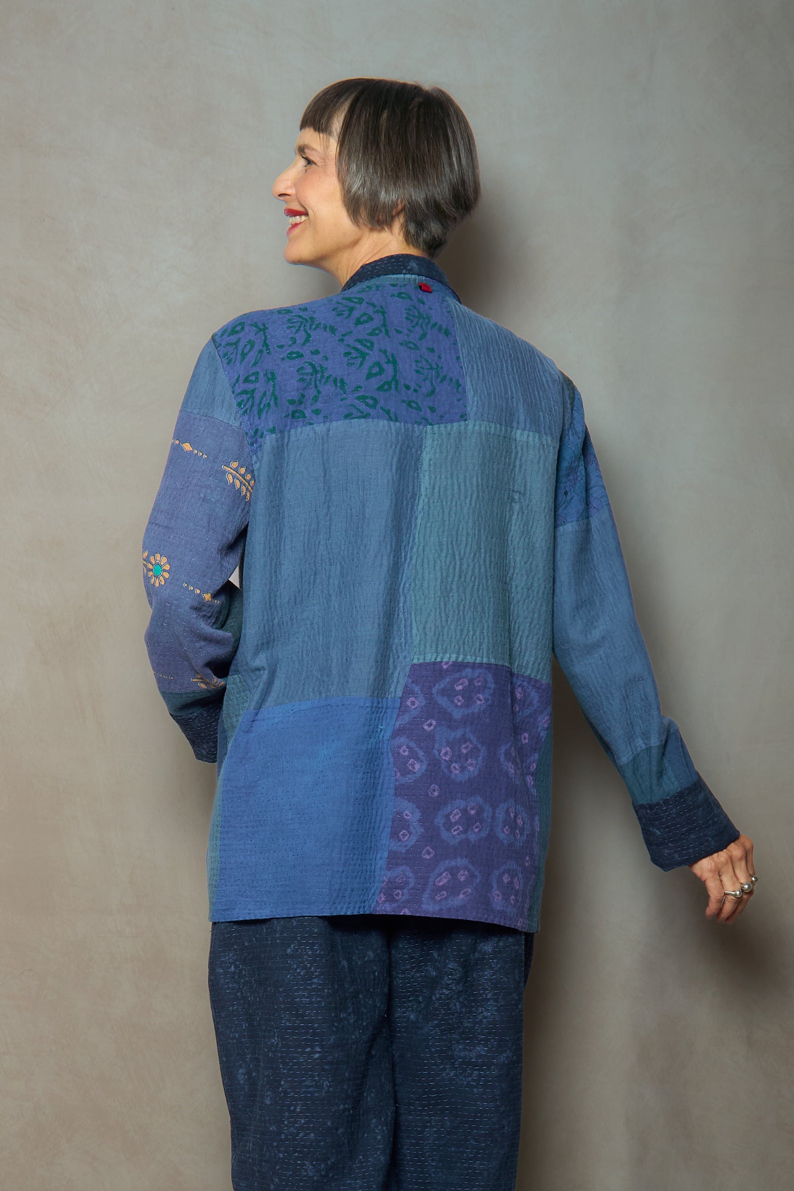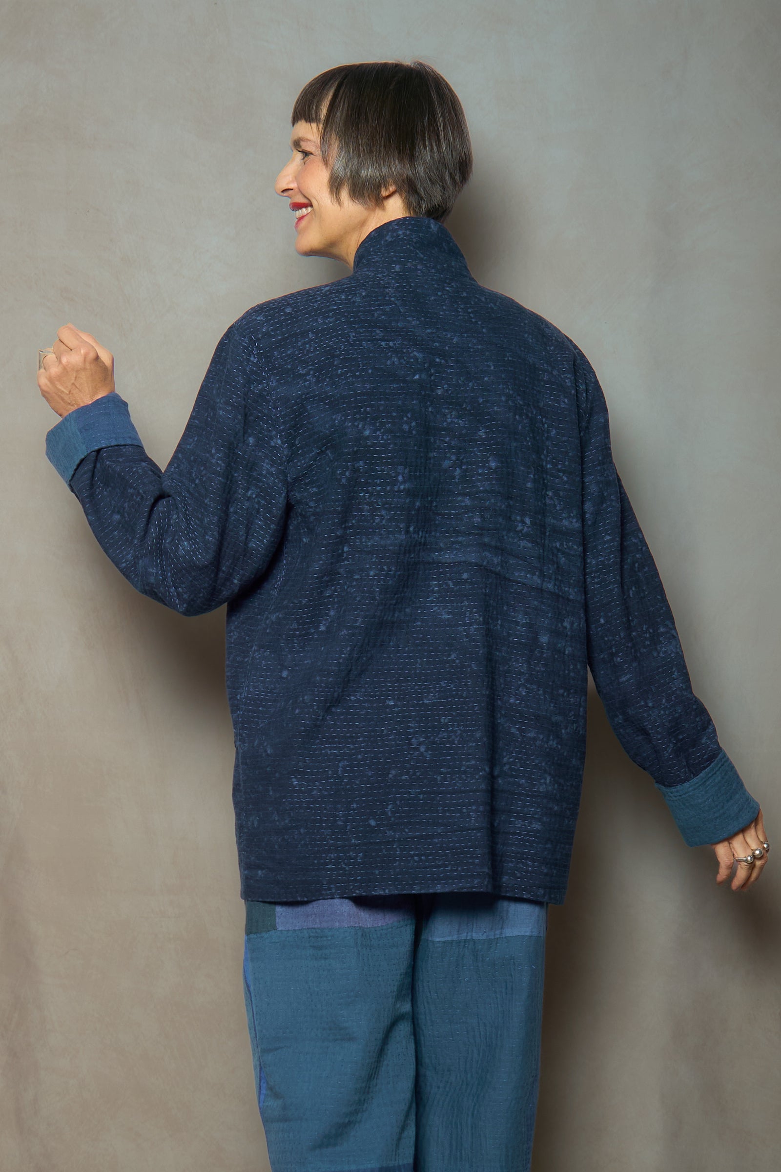 DUCK SUN DYE WITH PATCH KANTHA SIMPLE MEN'S JACKET - us2072-nvy -
