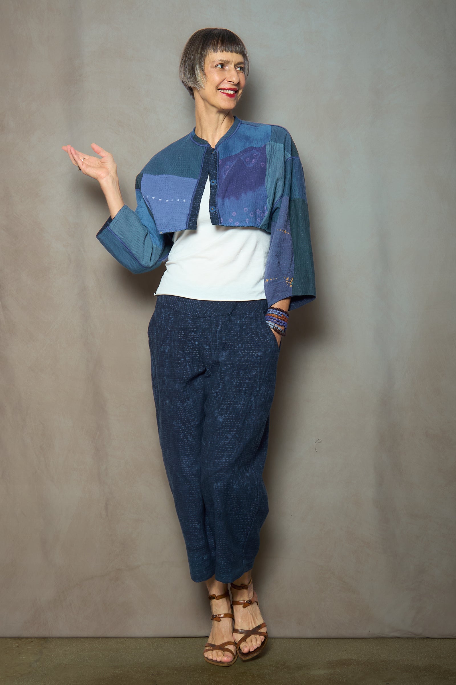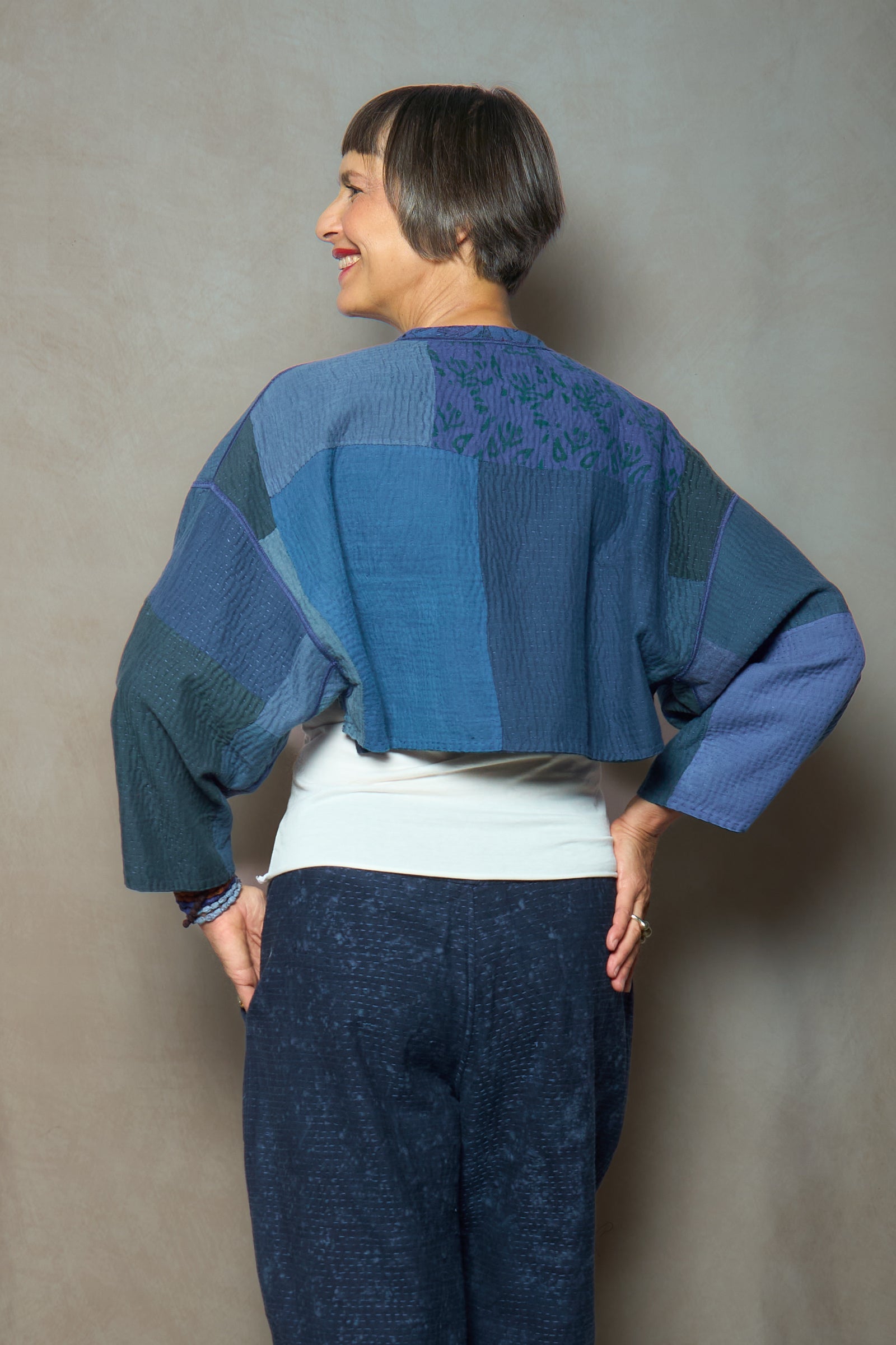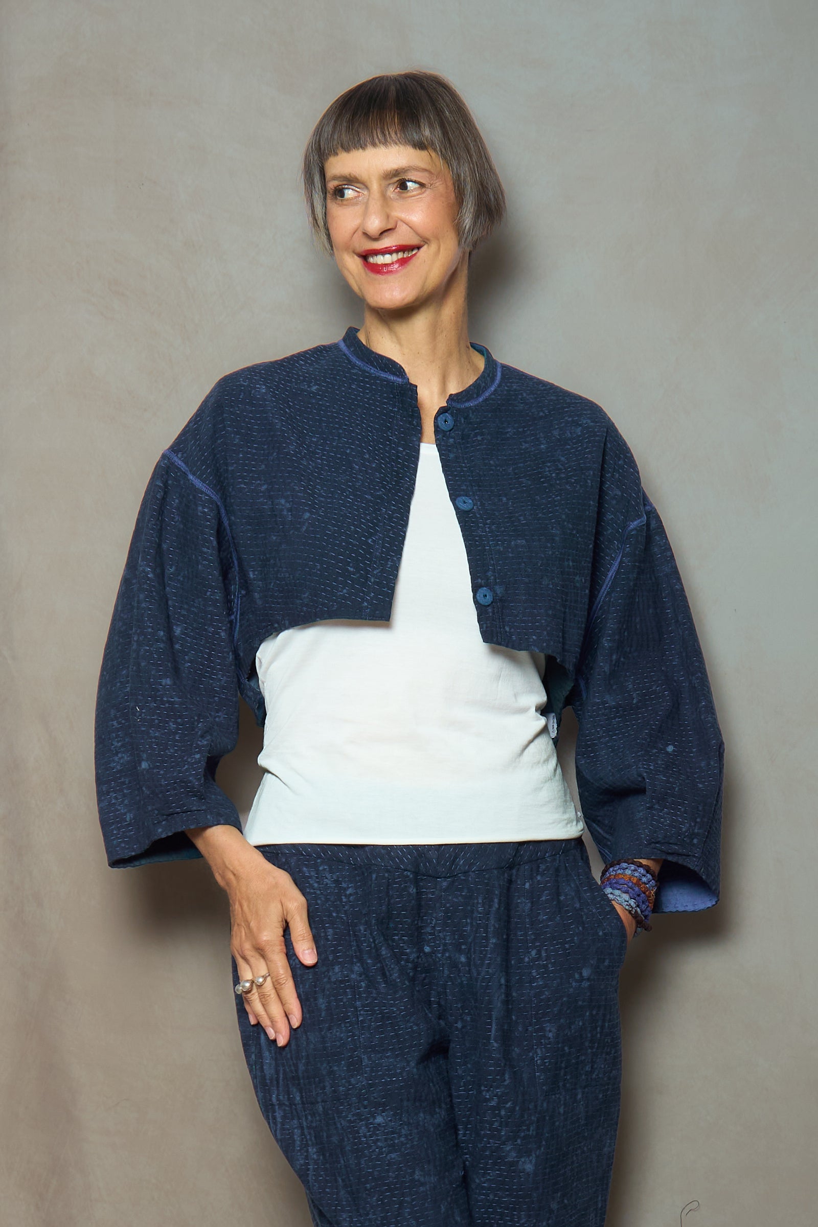 DUCK SUN DYE WITH PATCH KANTHA SLEEVE JACKET - us2090-nvy -