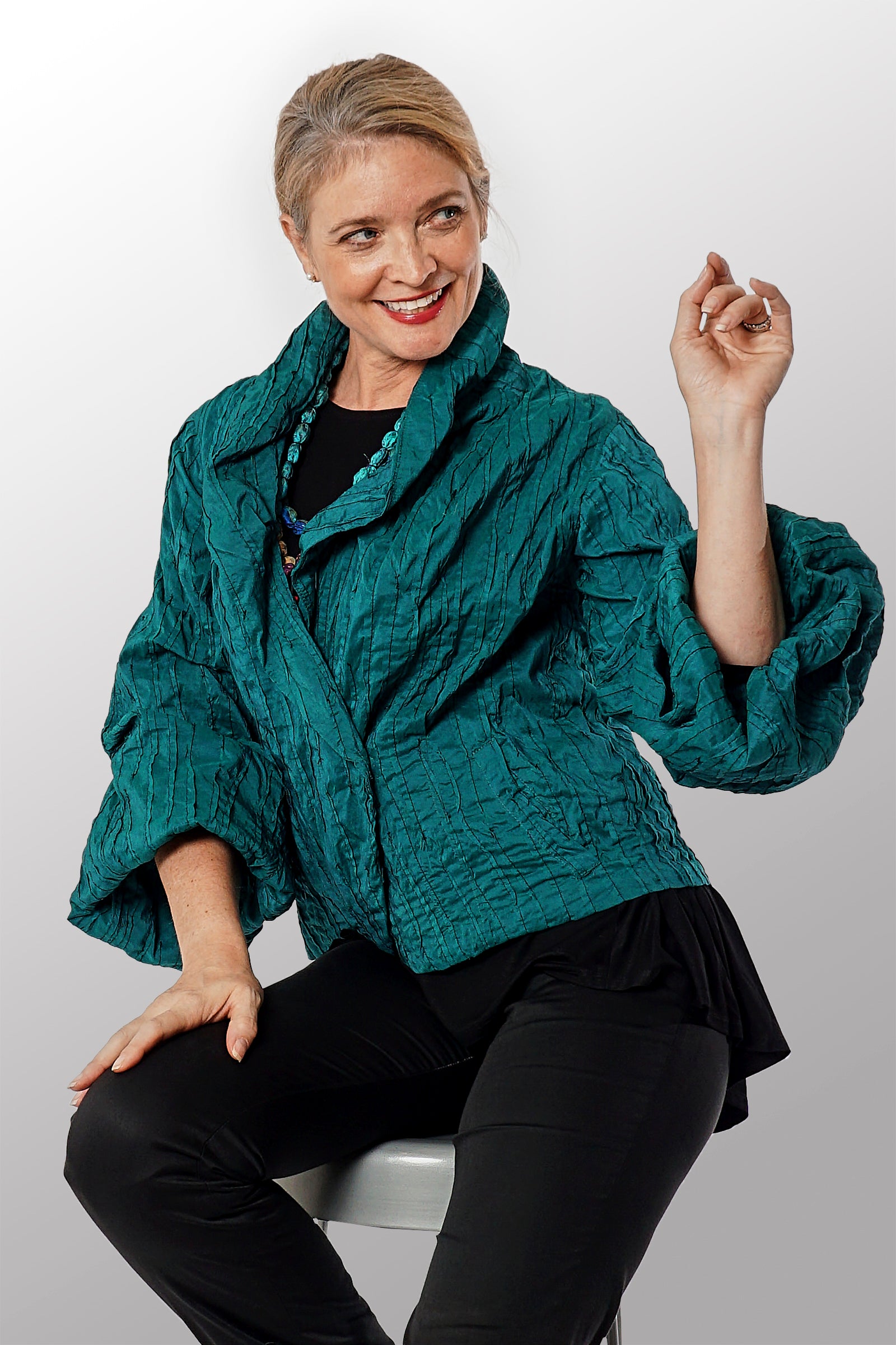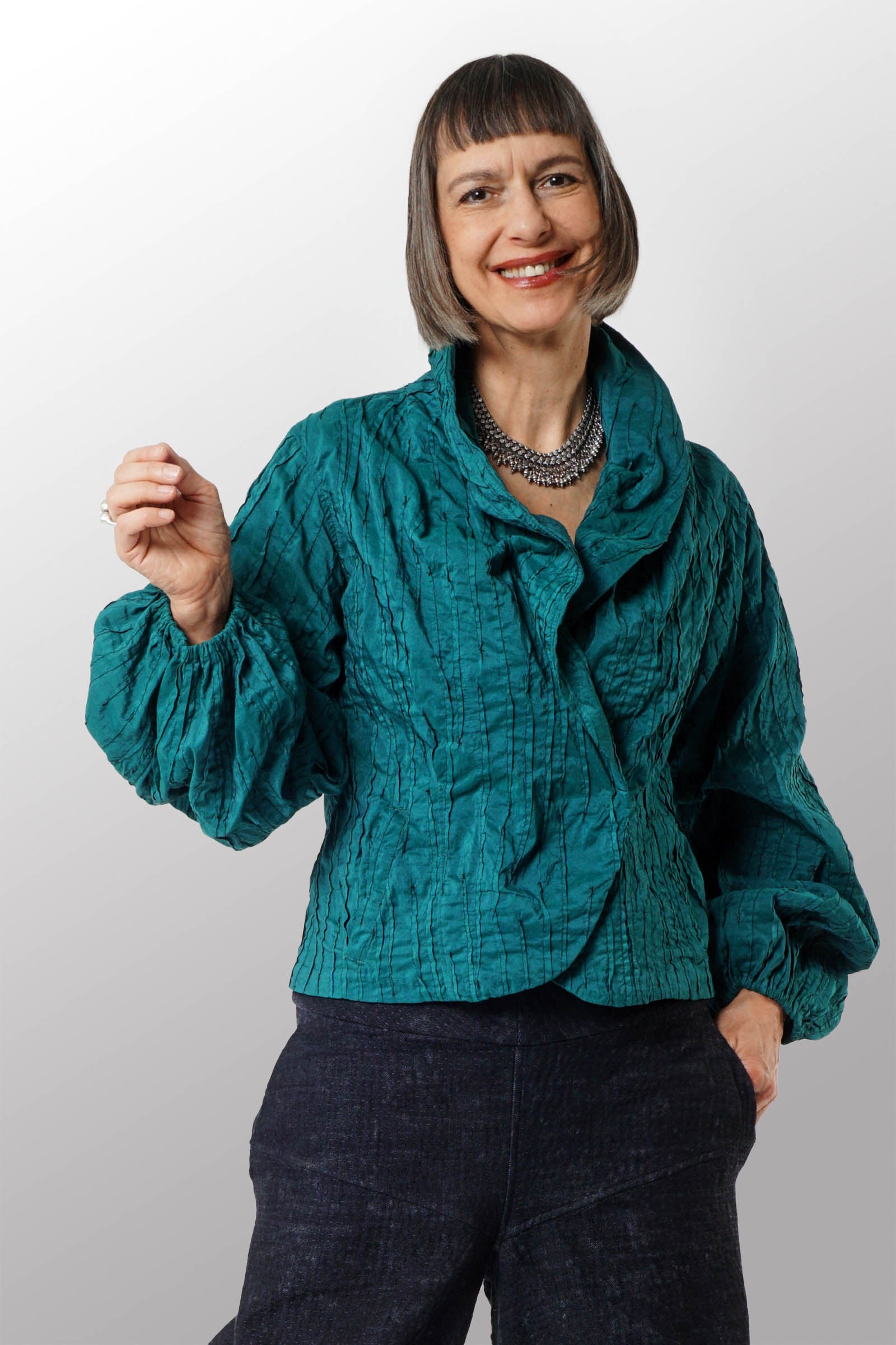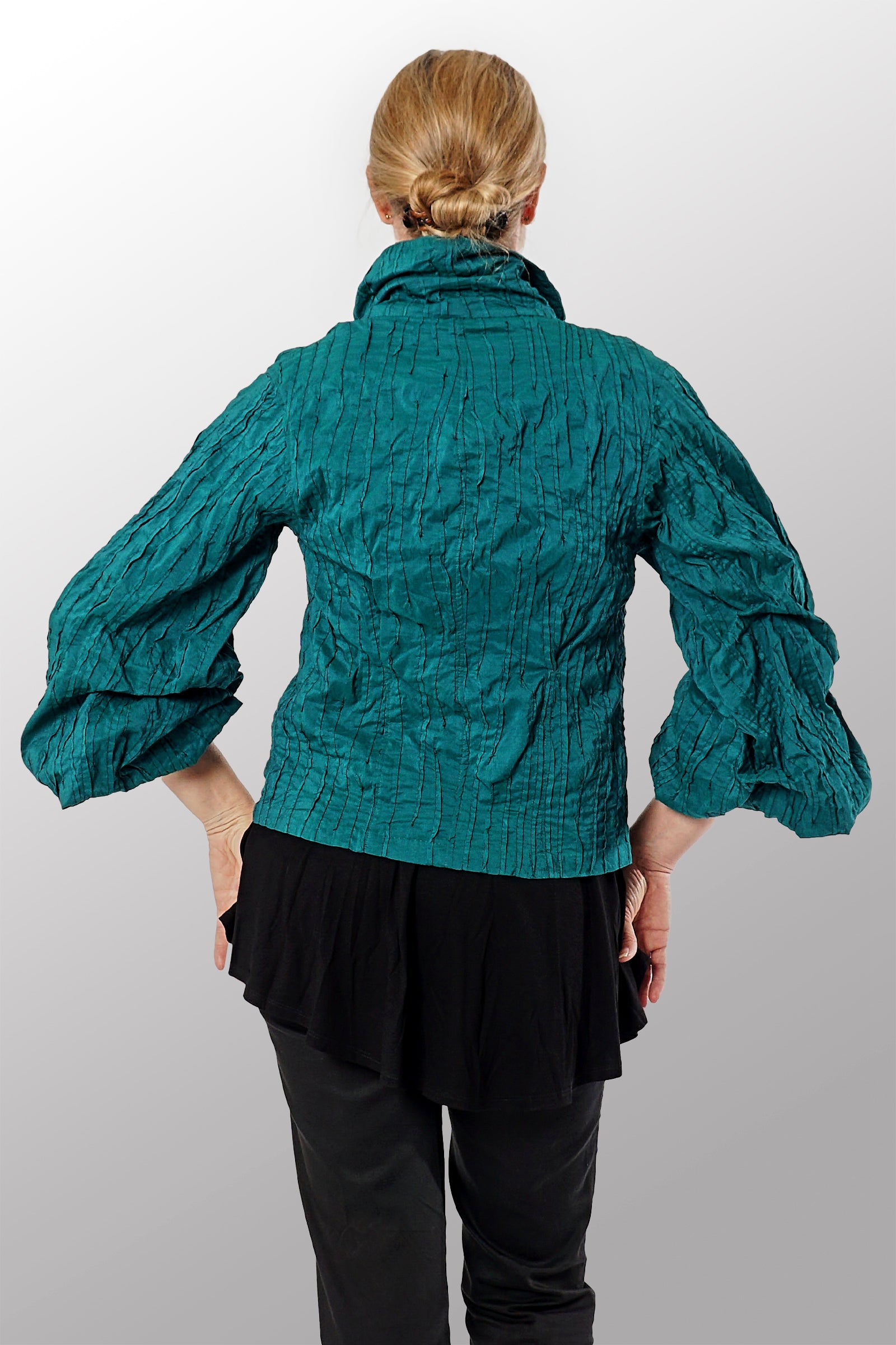DYED COTTON SILK HEAVY VOILE RANDOM TUCK PUFF SLV. JACKET - dr1077-grn -