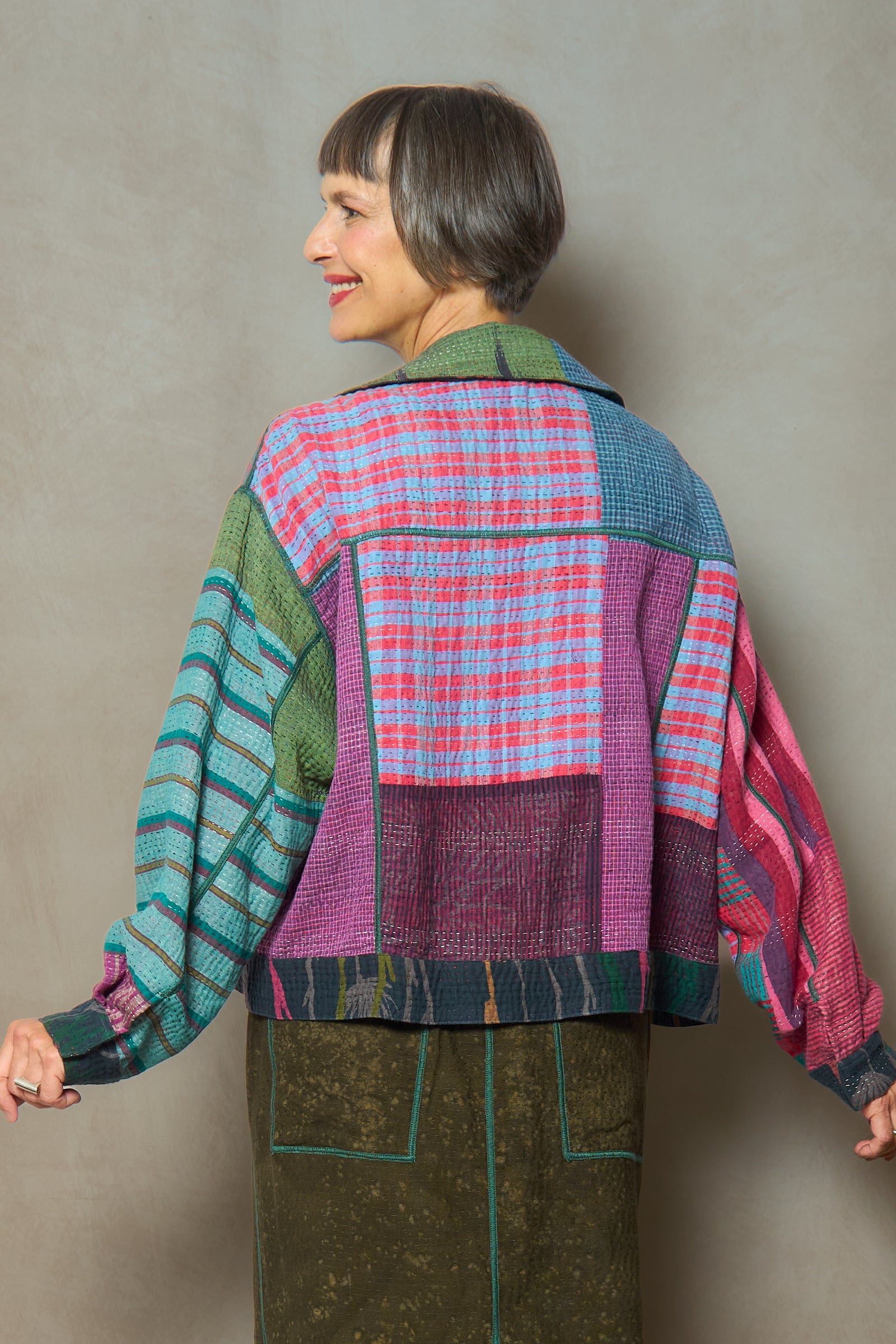 4 Layer Vintage Saris with Hand Stitches on Entire Garment - Reversible