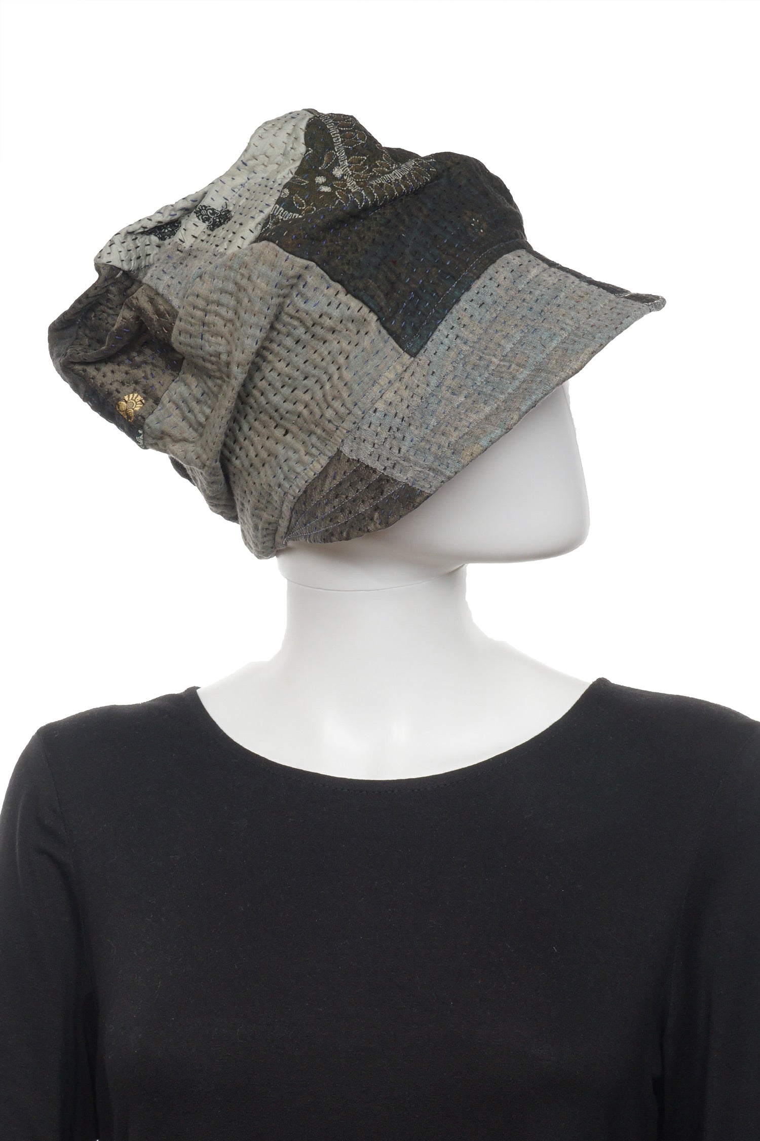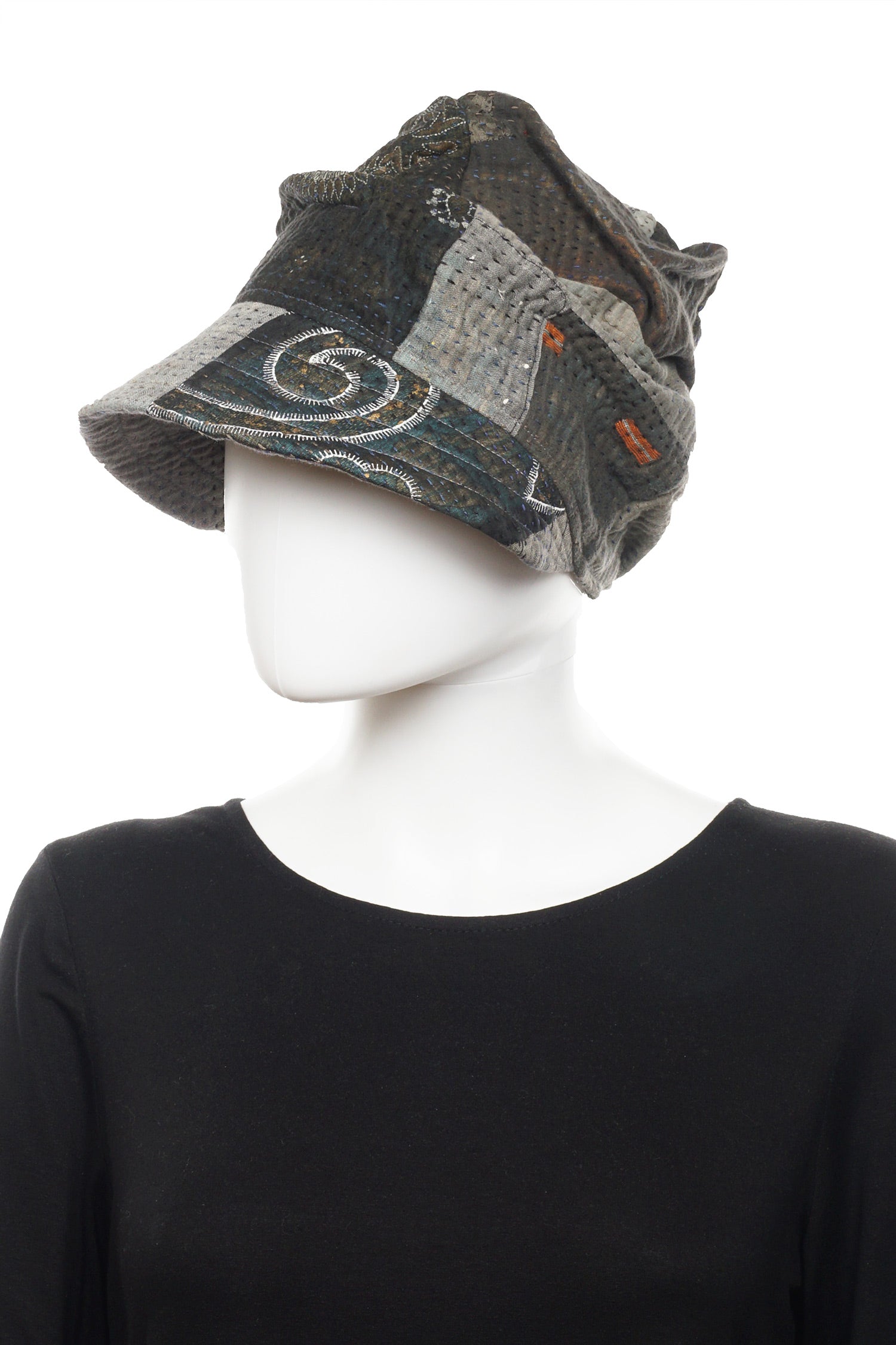 FRAYED PATCH KANTHA HALF BRIM HAT - fi4881-gry -