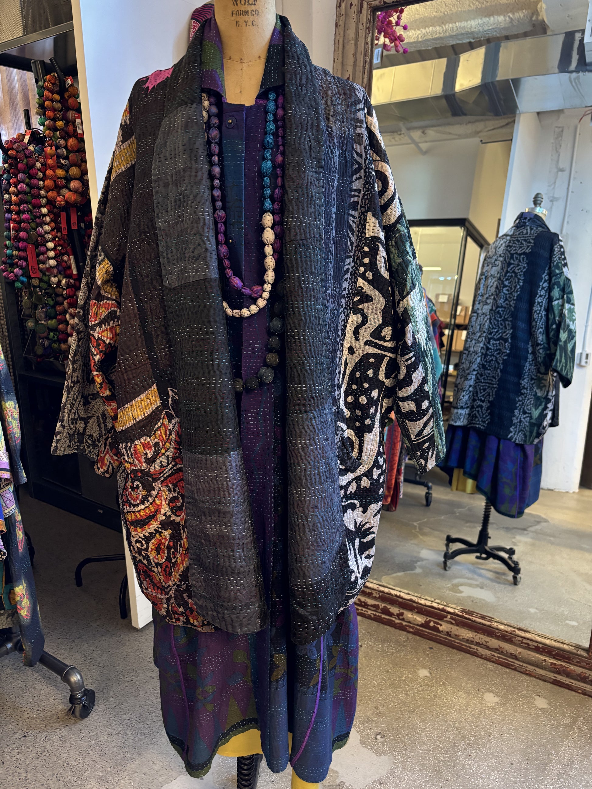 4 Layer Vintage Saris with Hand Stitches on Entire Garment - Reversible
