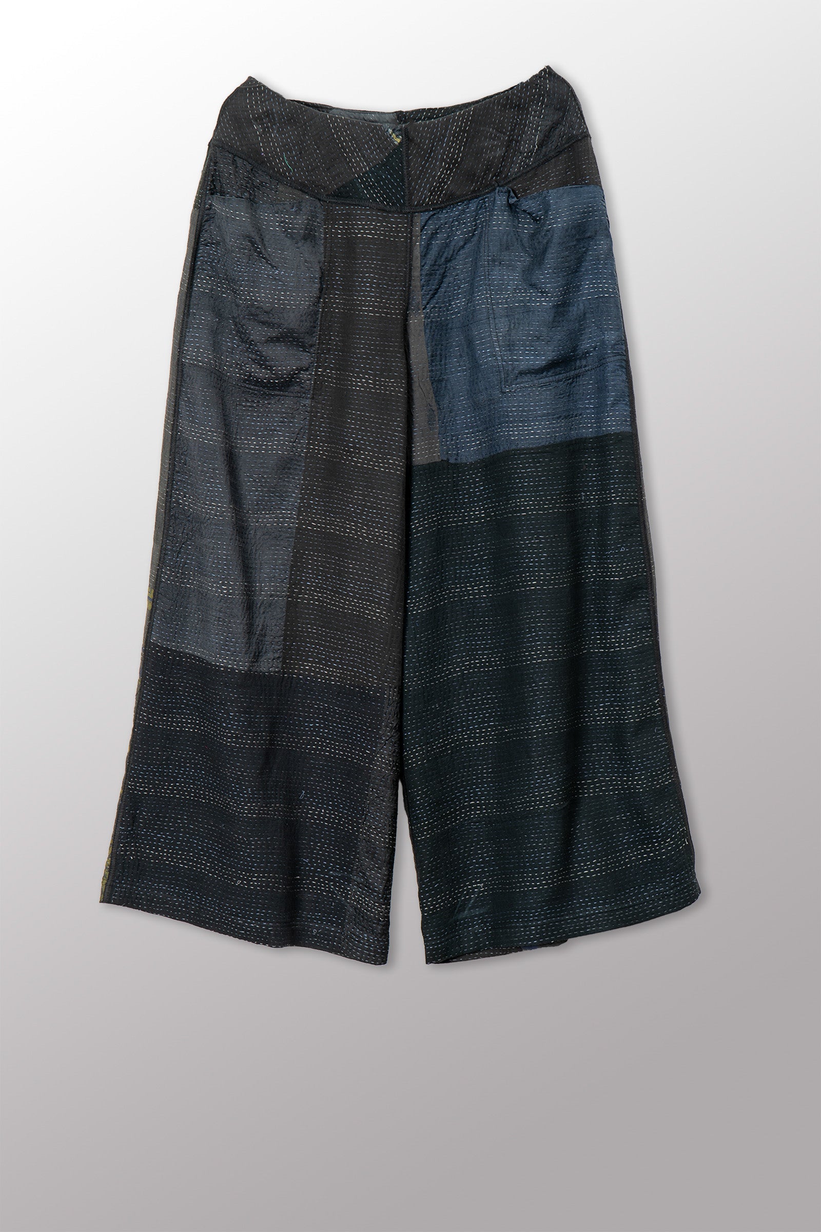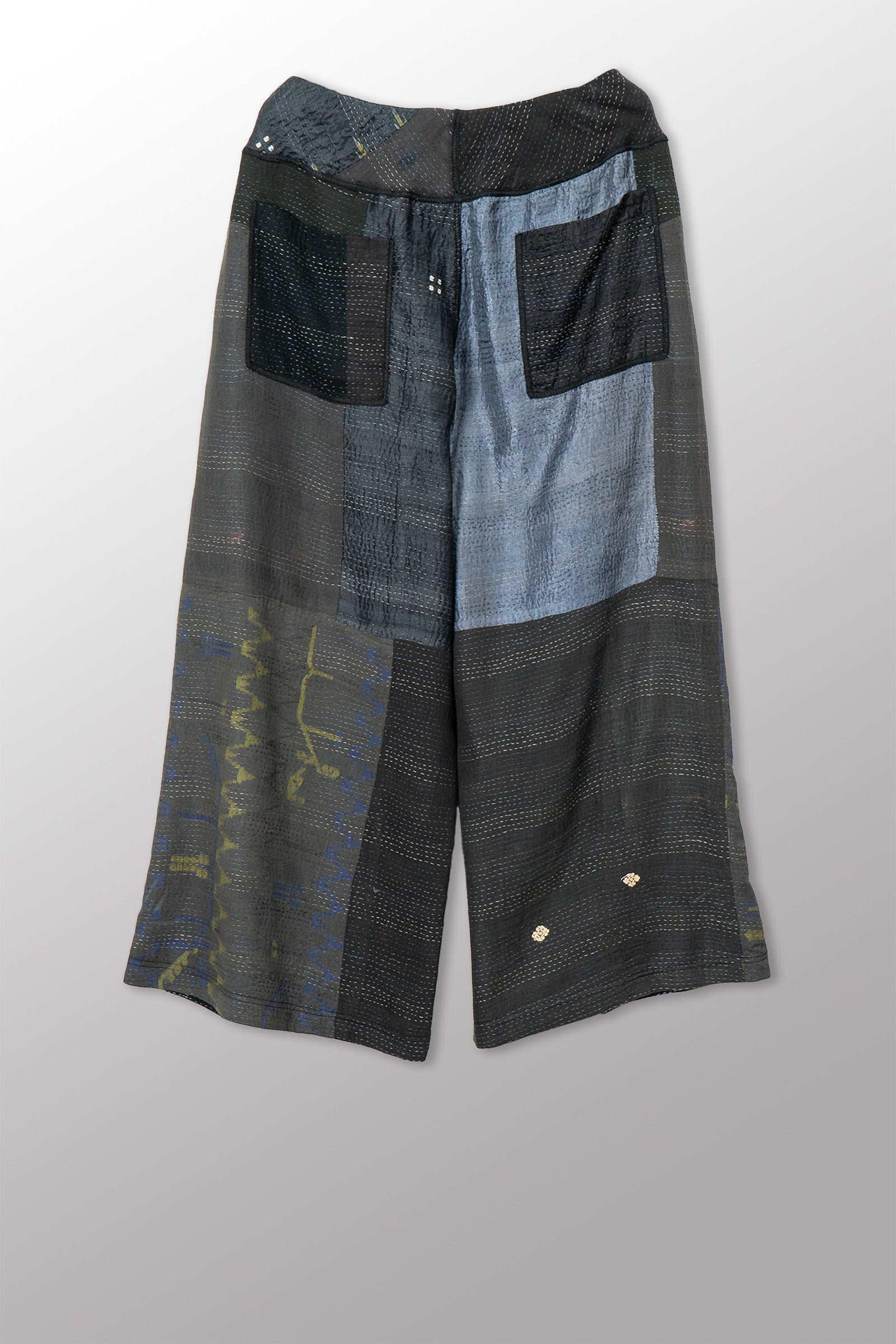 JAIPUR PATCH KANTHA MID RISE WIDE LEG PANTS - jp2665-blk -