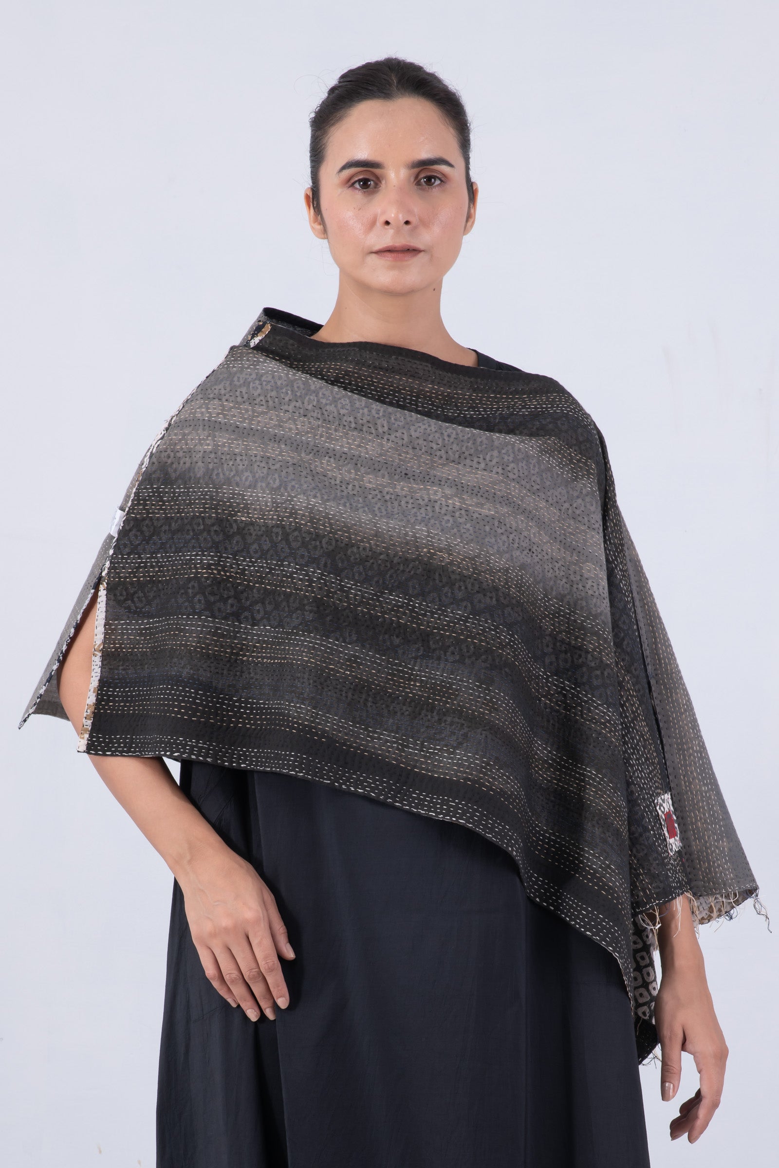 KIMONO COTTON KANTHA WIDE CAPE - kc2813-gry -