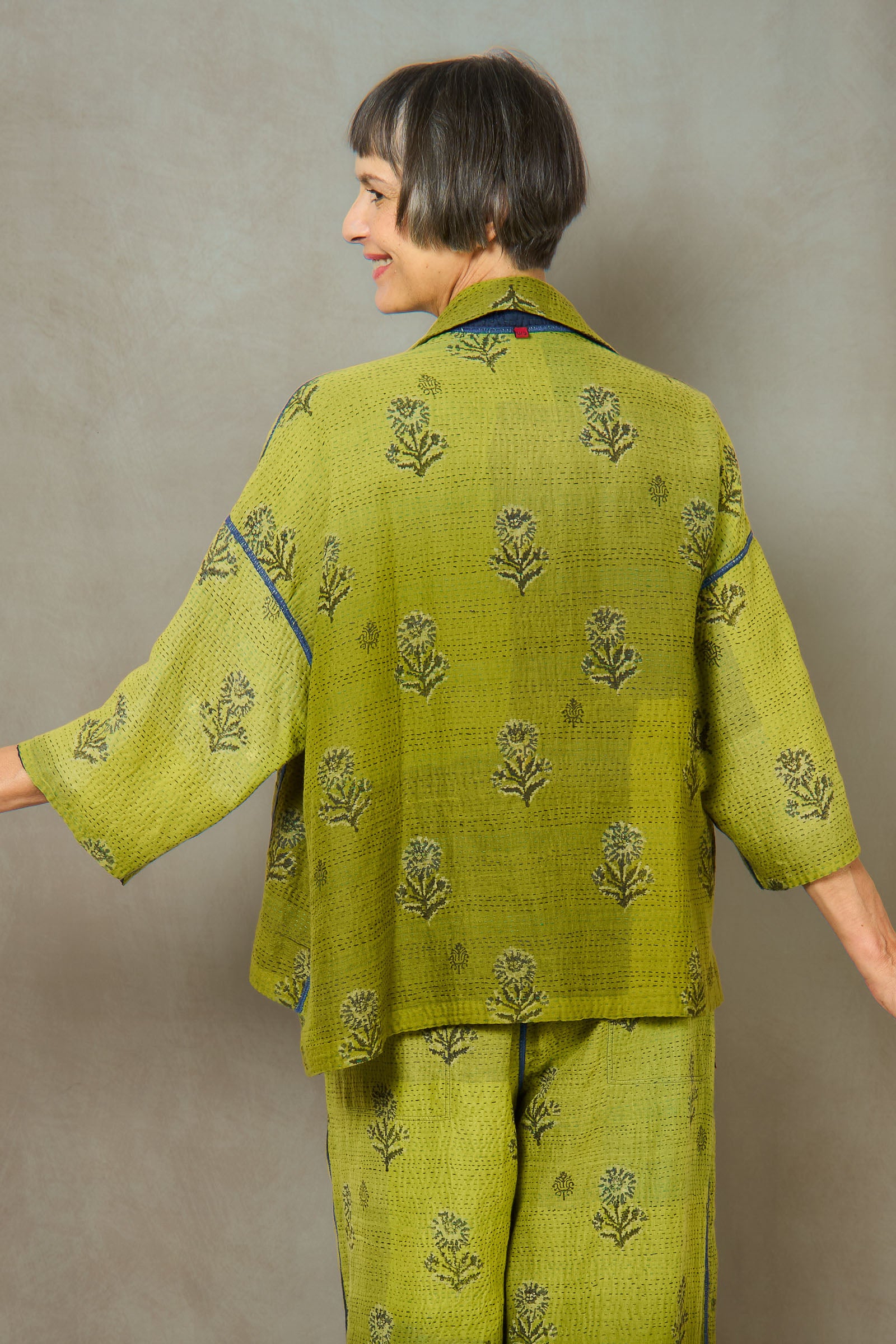 MARBLE FRAY PATCH KANTHA CROPPED TENT SHIRT - mf2596-grn -
