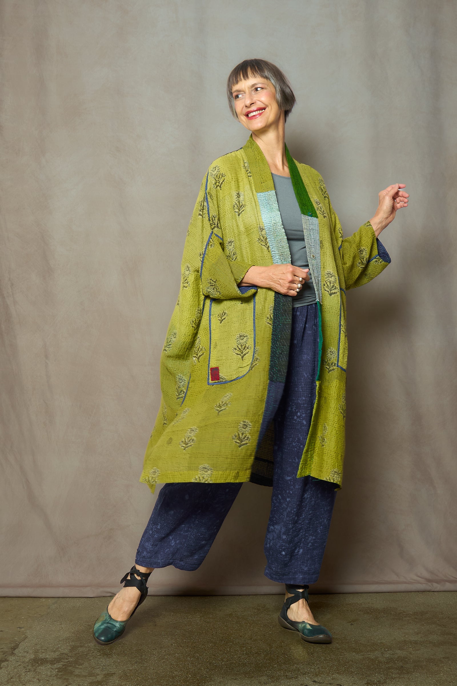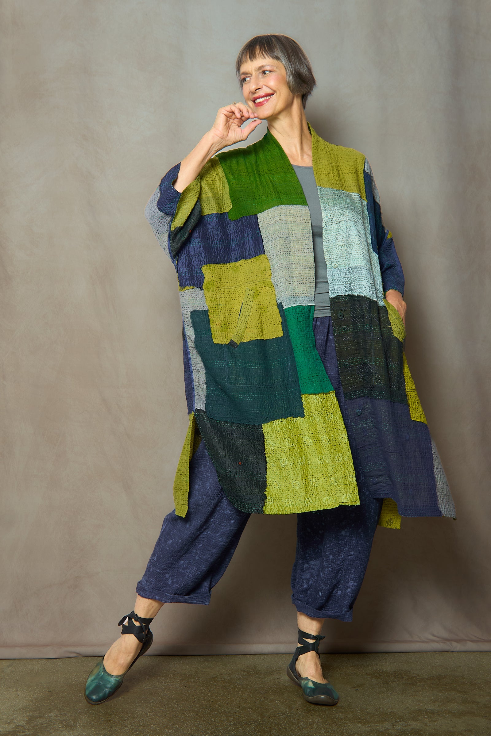 MARBLE FRAY PATCH KANTHA PONCHO TOPPER - mf2356-grn -