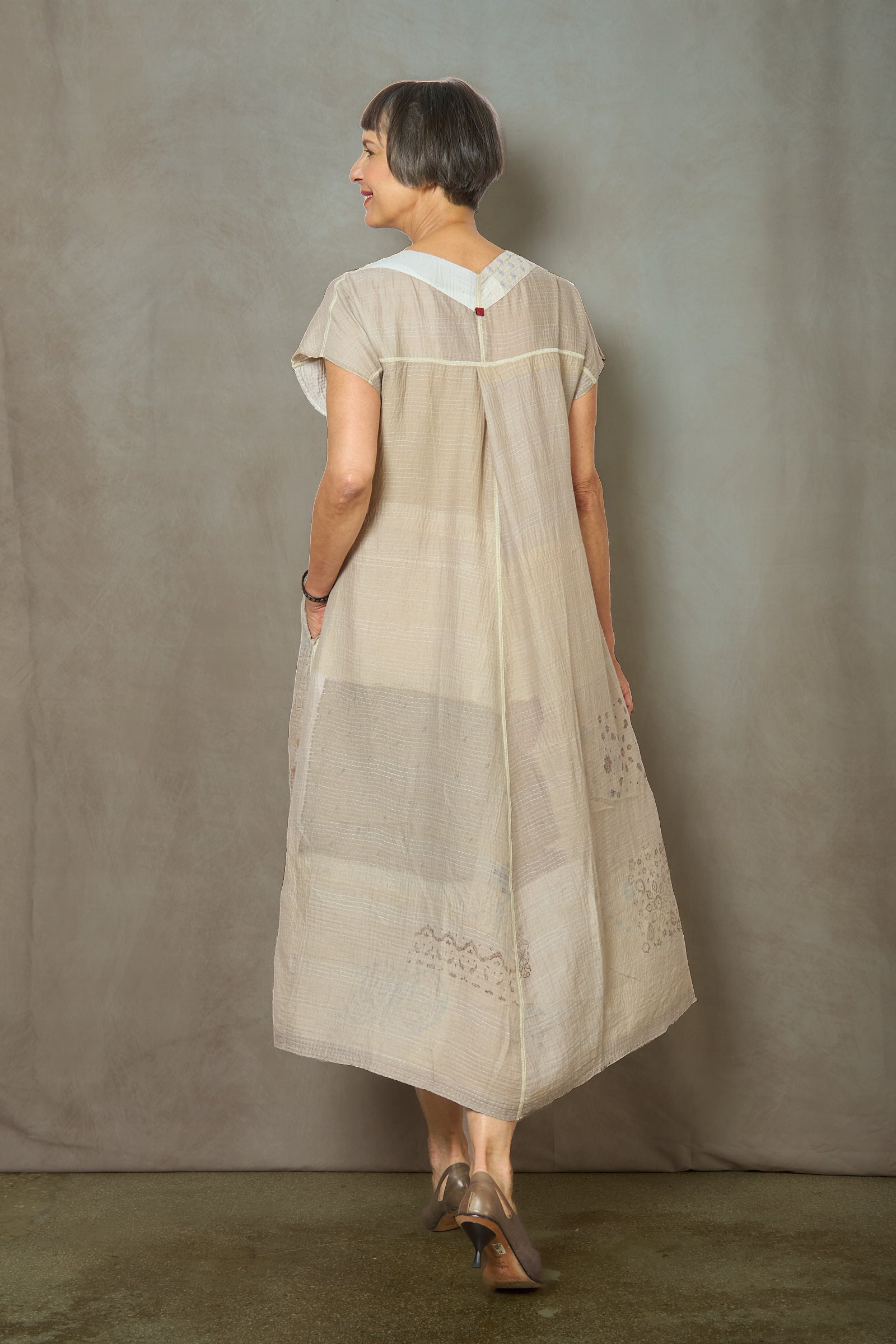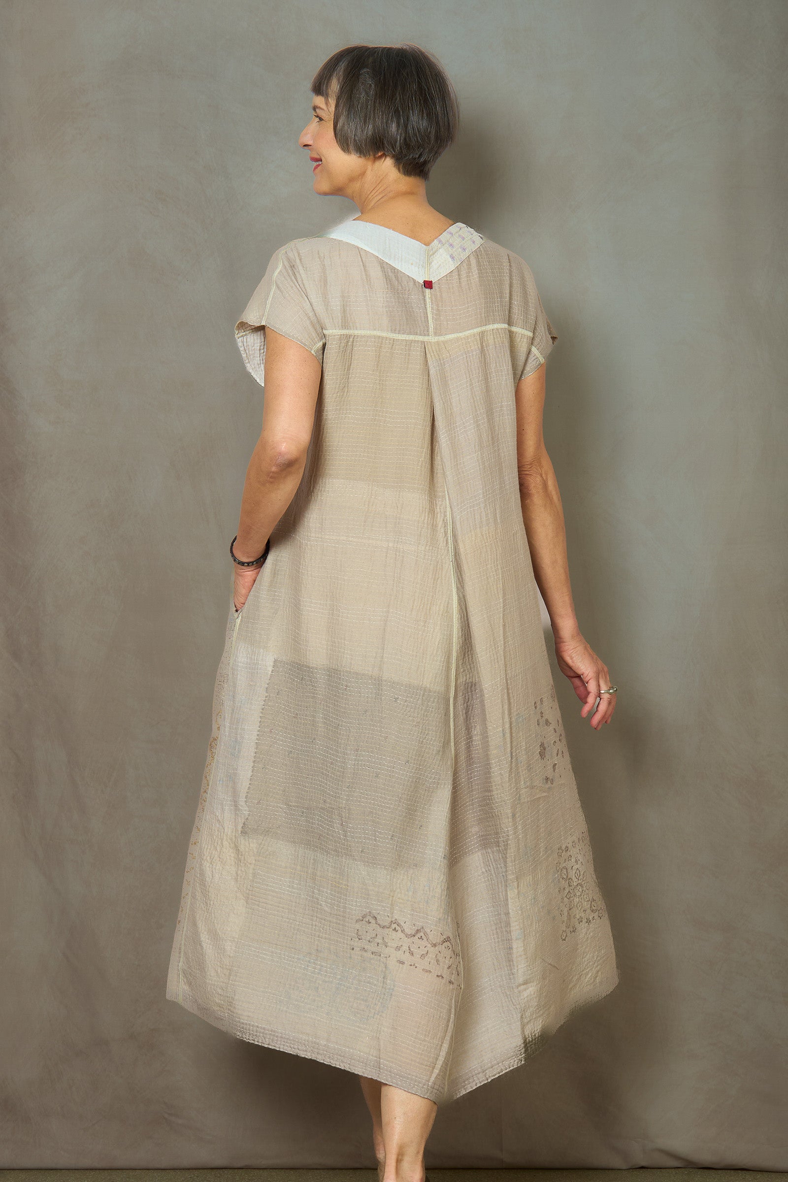 MOSAIC FRAY PATCH KANTHA V-NECK FRENCH SLV. DRESS - zb2467-ivy -