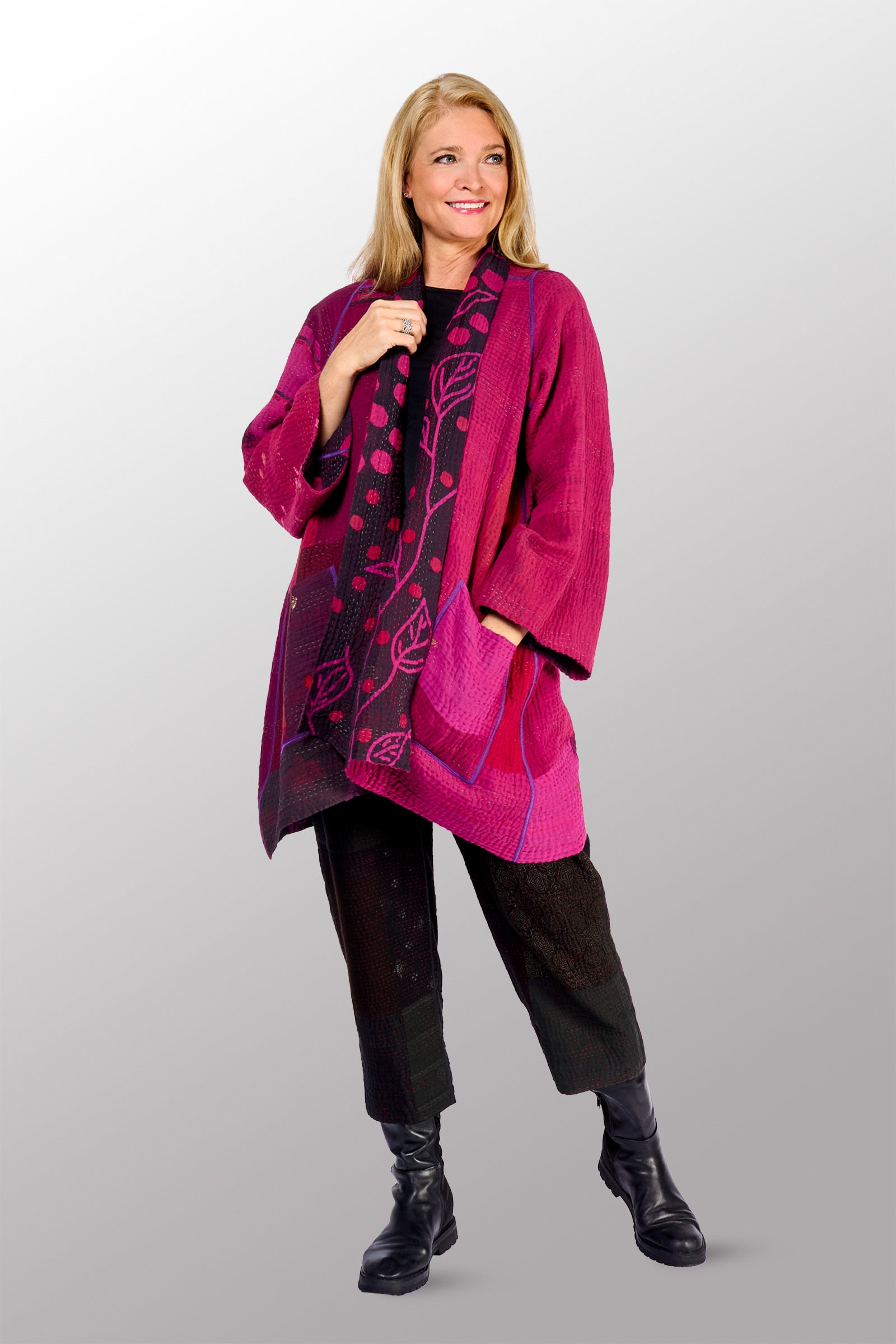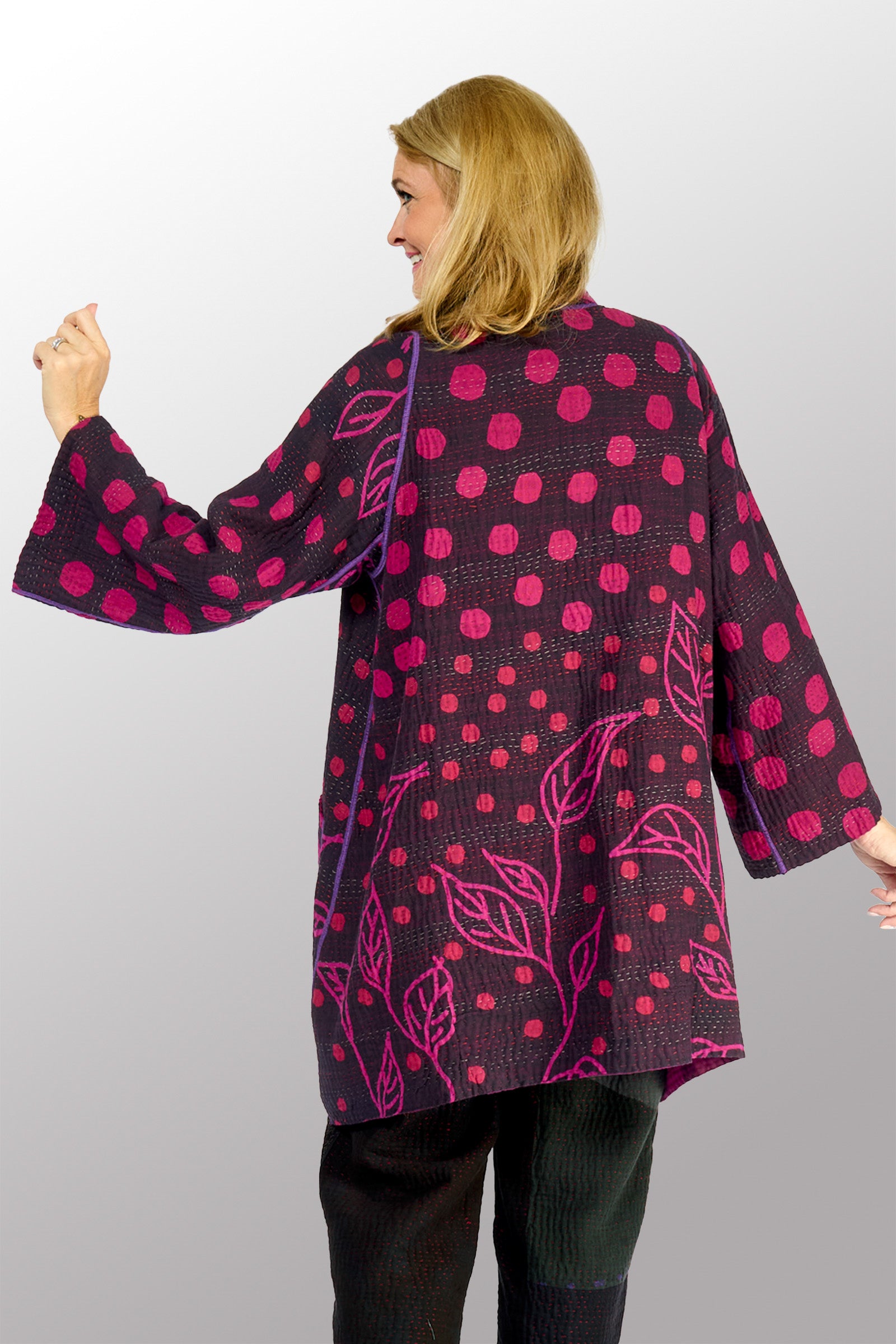 OVERDYED POLKA DOTS & LEAVES KANTHA A-LINE JACKET - dl4003-fus -
