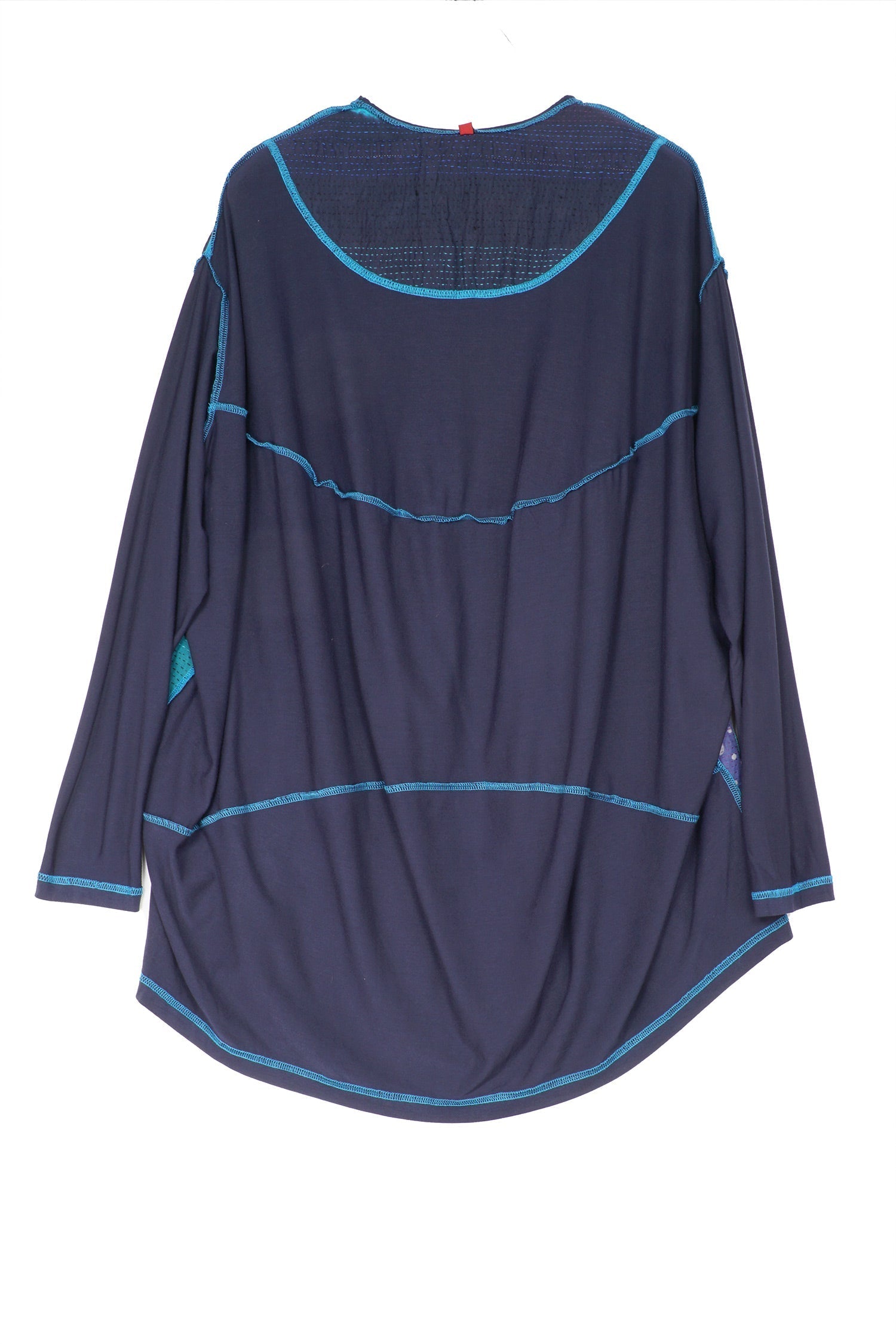 PATCH & CIRCLE PRINT KANTHA AND KNIT LONG JKT - pc2028-blu -
