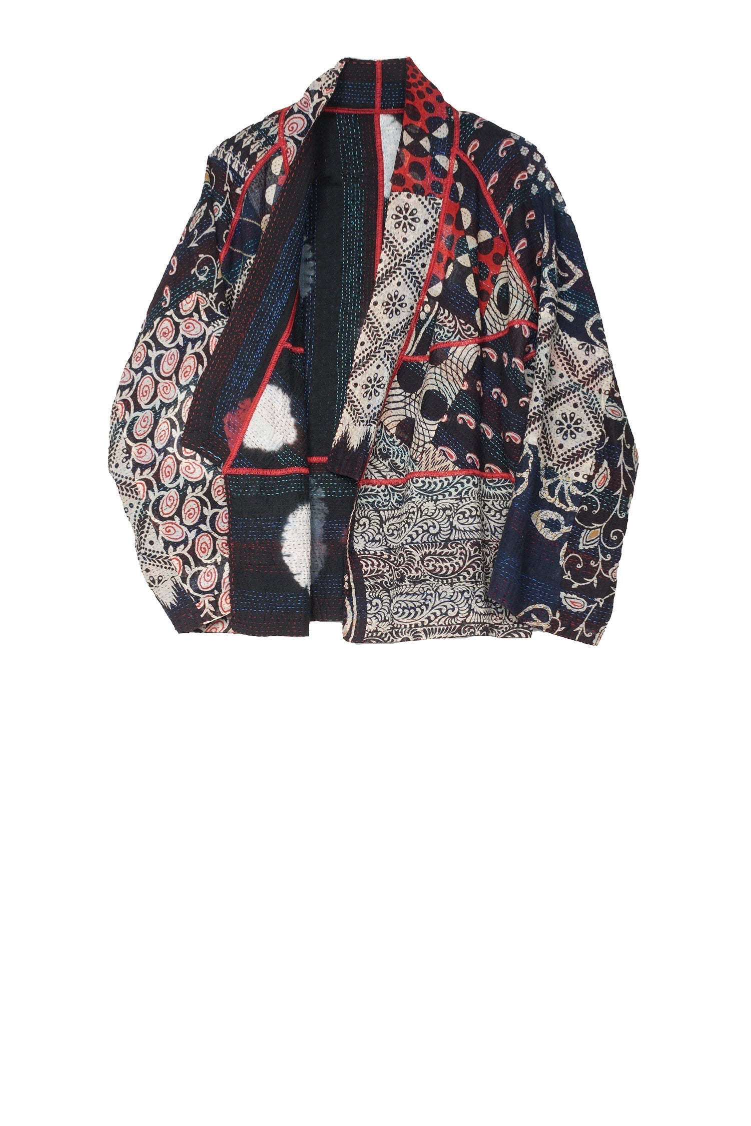 PATCH & CIRCLE PRINT KANTHA DOLMAN SHORT JKT - pc2015-blk -