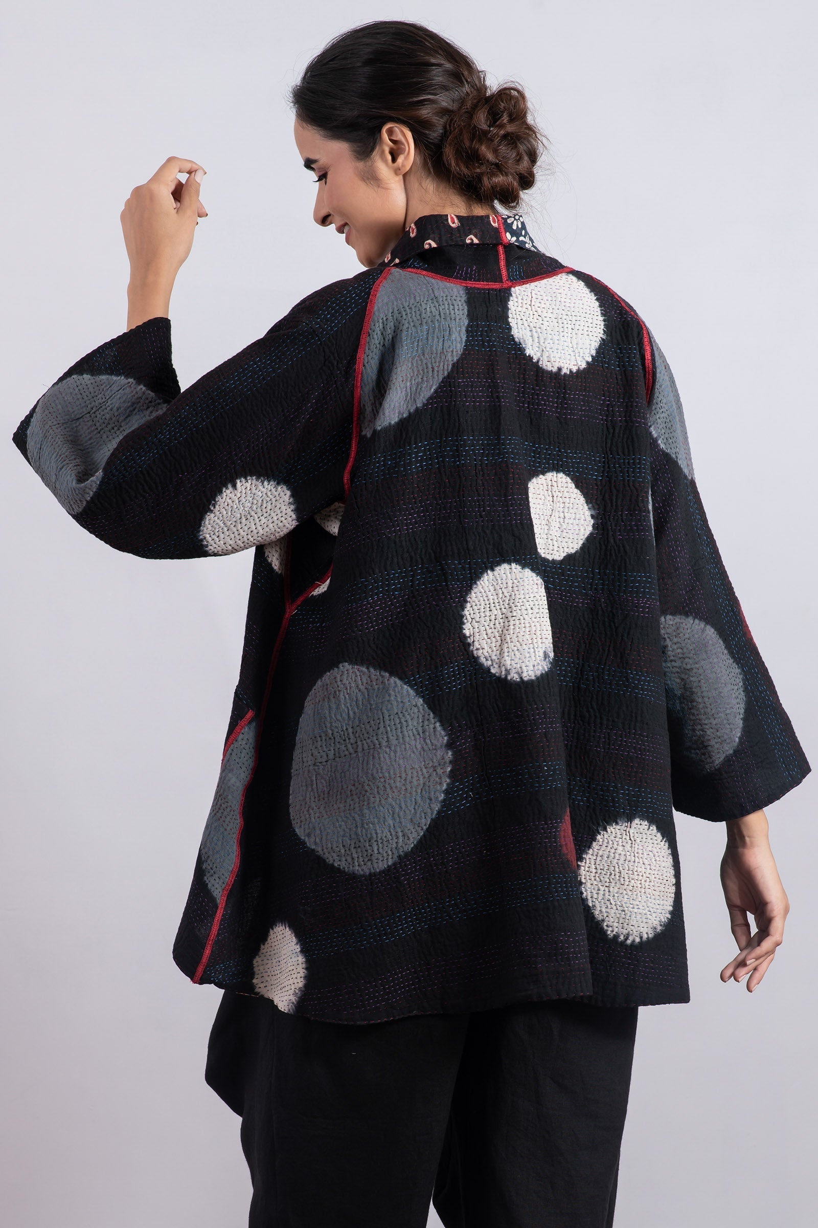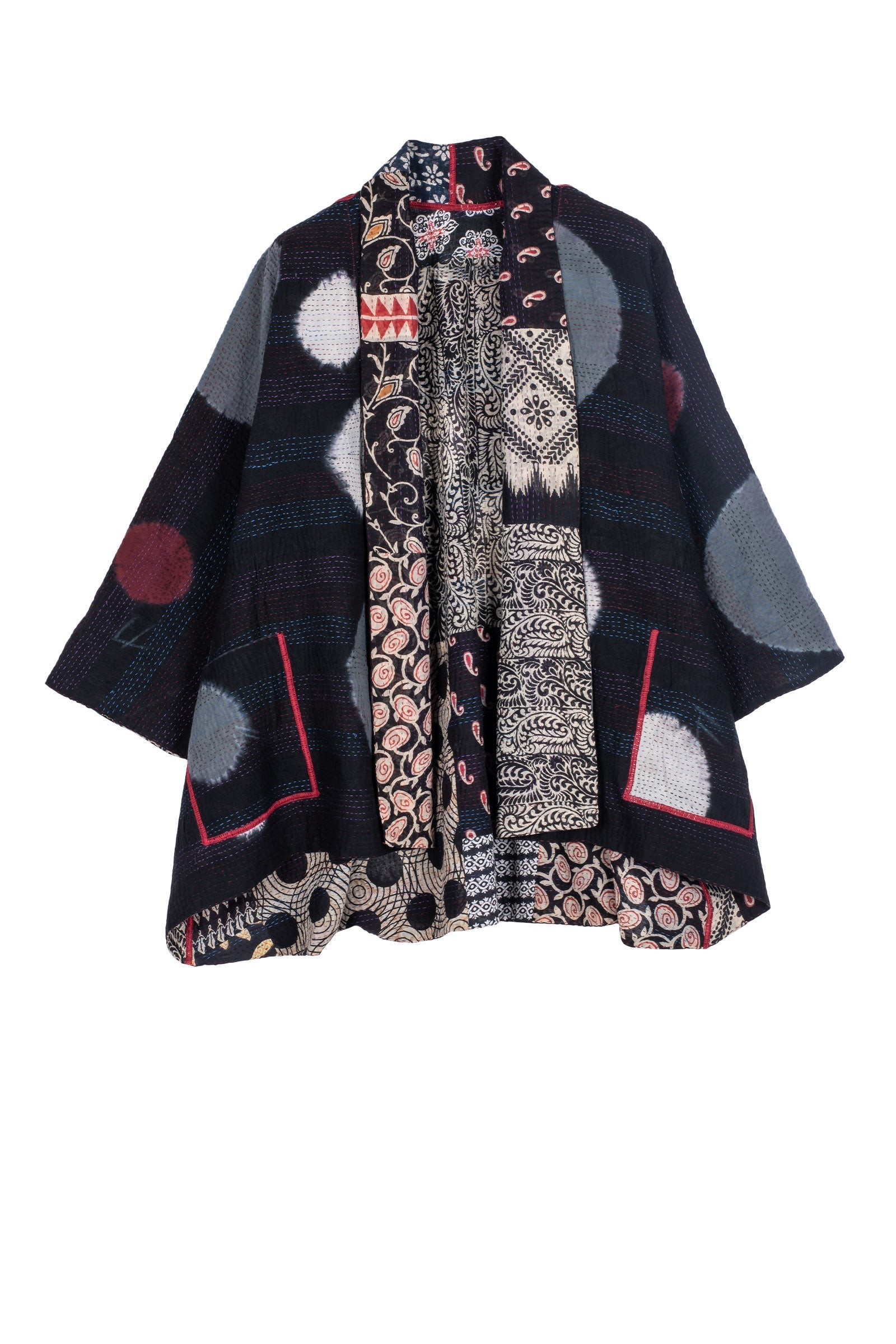 PATCH & CIRCLE PRINT KANTHA KIMONO JKT - pc2004-blk -