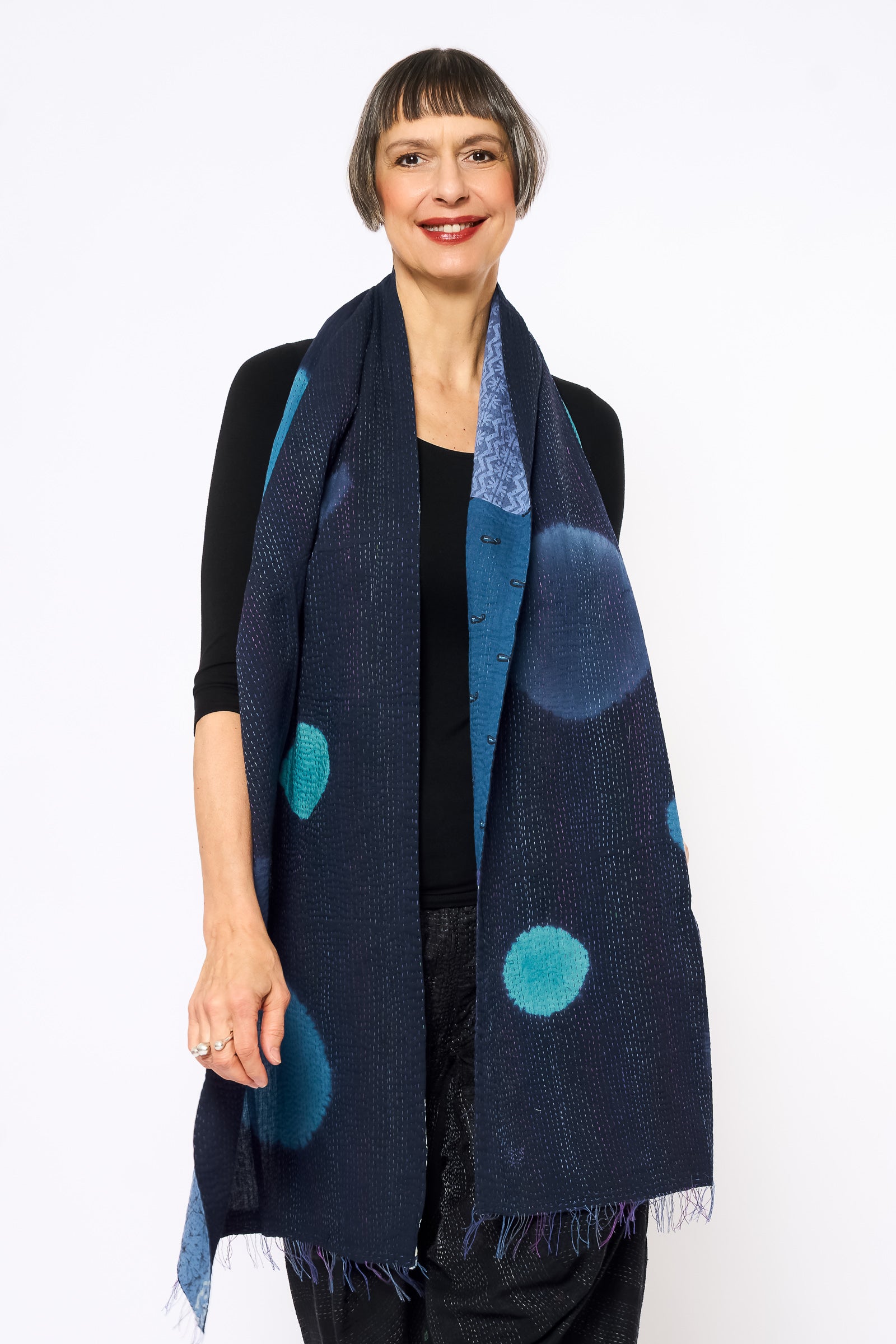 PATCH & CIRCLE PRINT KANTHA SCARF STANDARD - pc2801-blu -