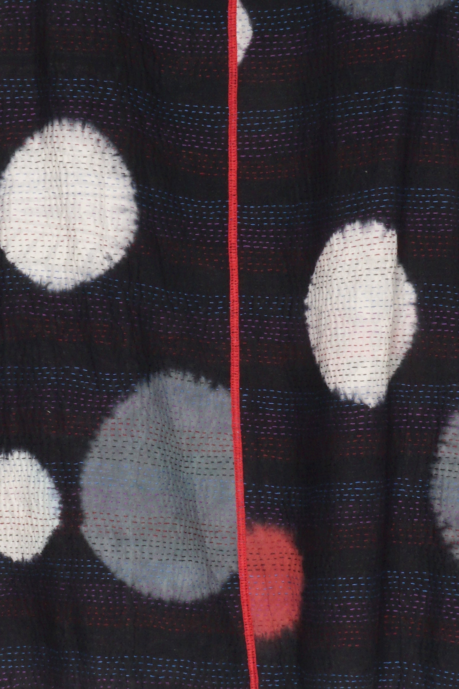 PATCH & CIRCLE PRINT KANTHA WING COLLAR VEST - pc2207-blk -