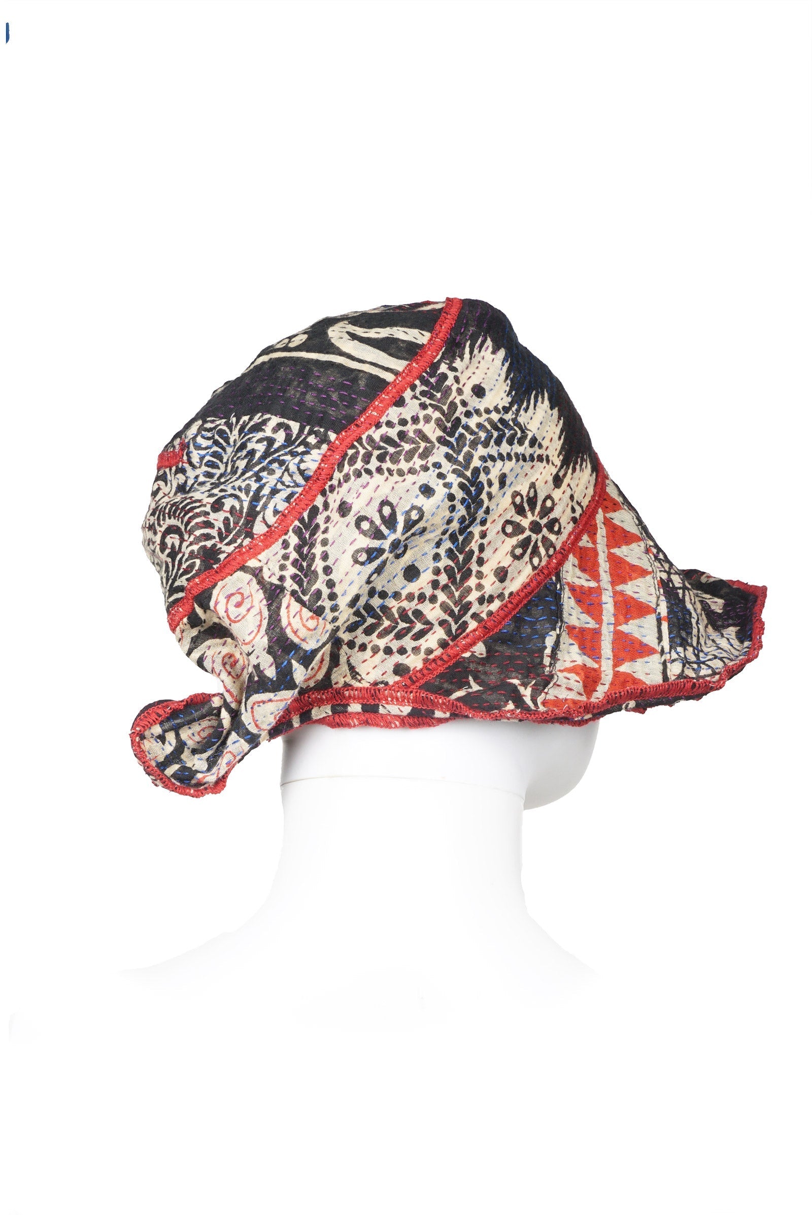 PATCHED PRINT KANTHA CIRCULAR CUT BRIM HAT - pp2882-blk -