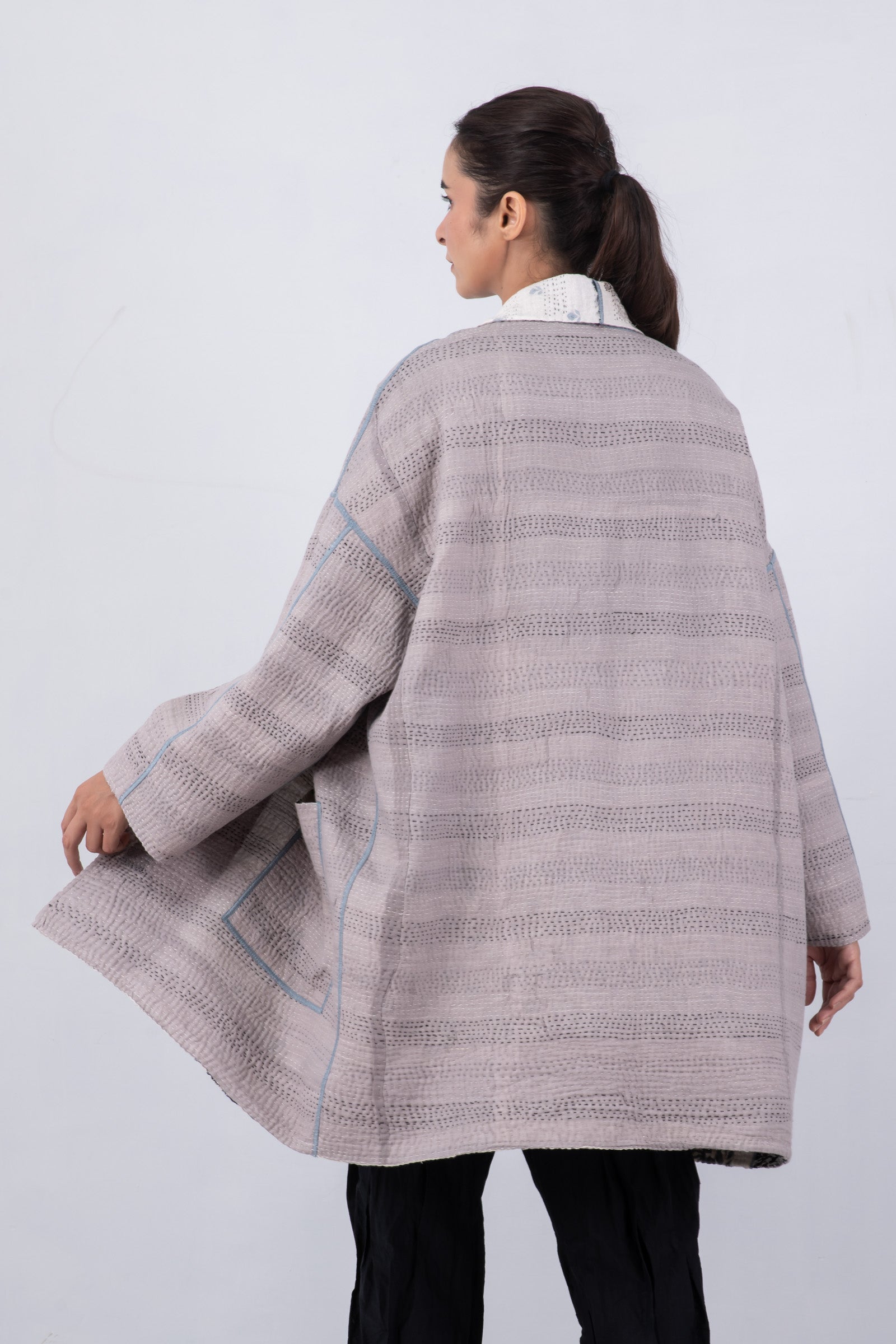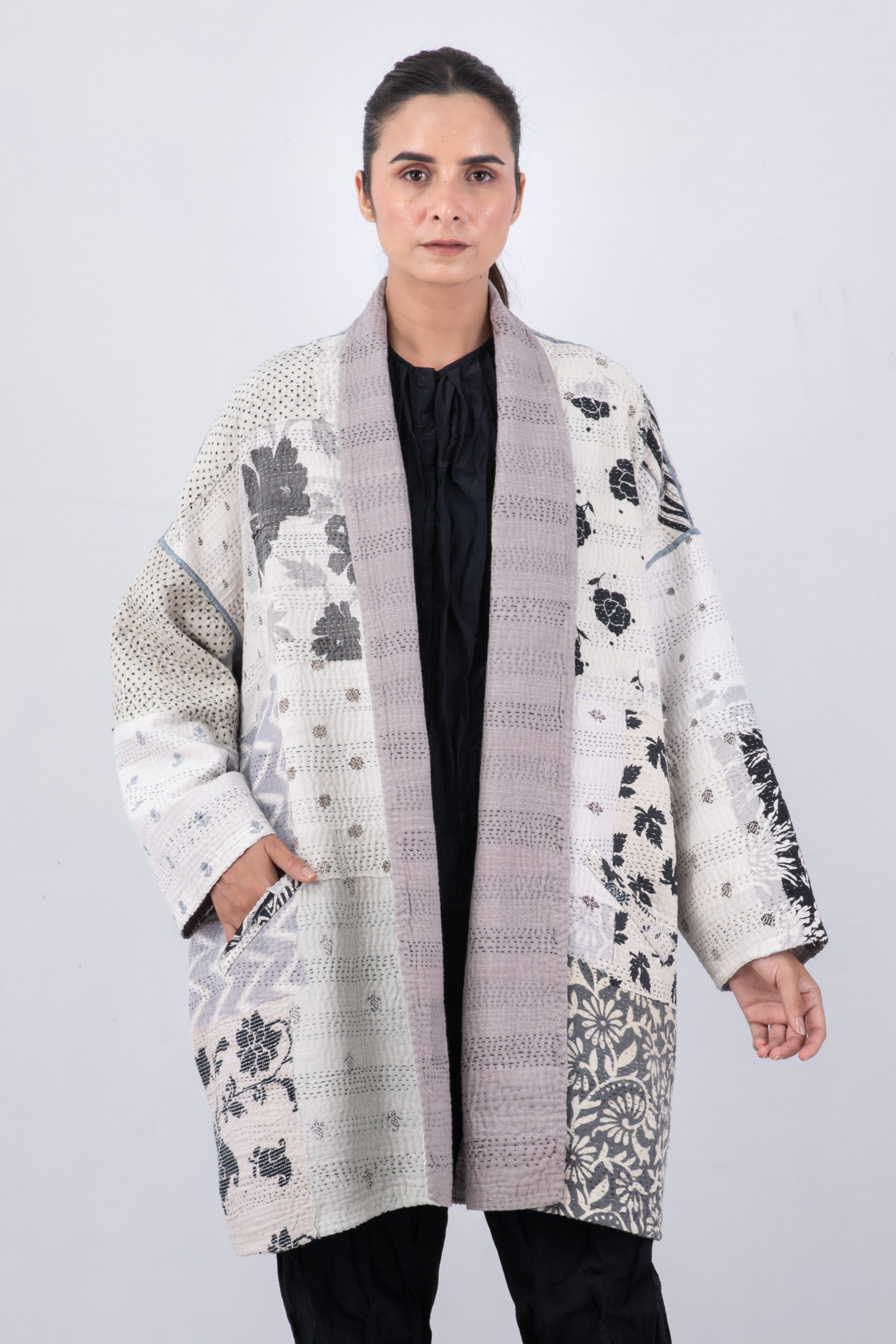 POWDER PATCH KANTHA HAORI JACKET - pd4068-gry -