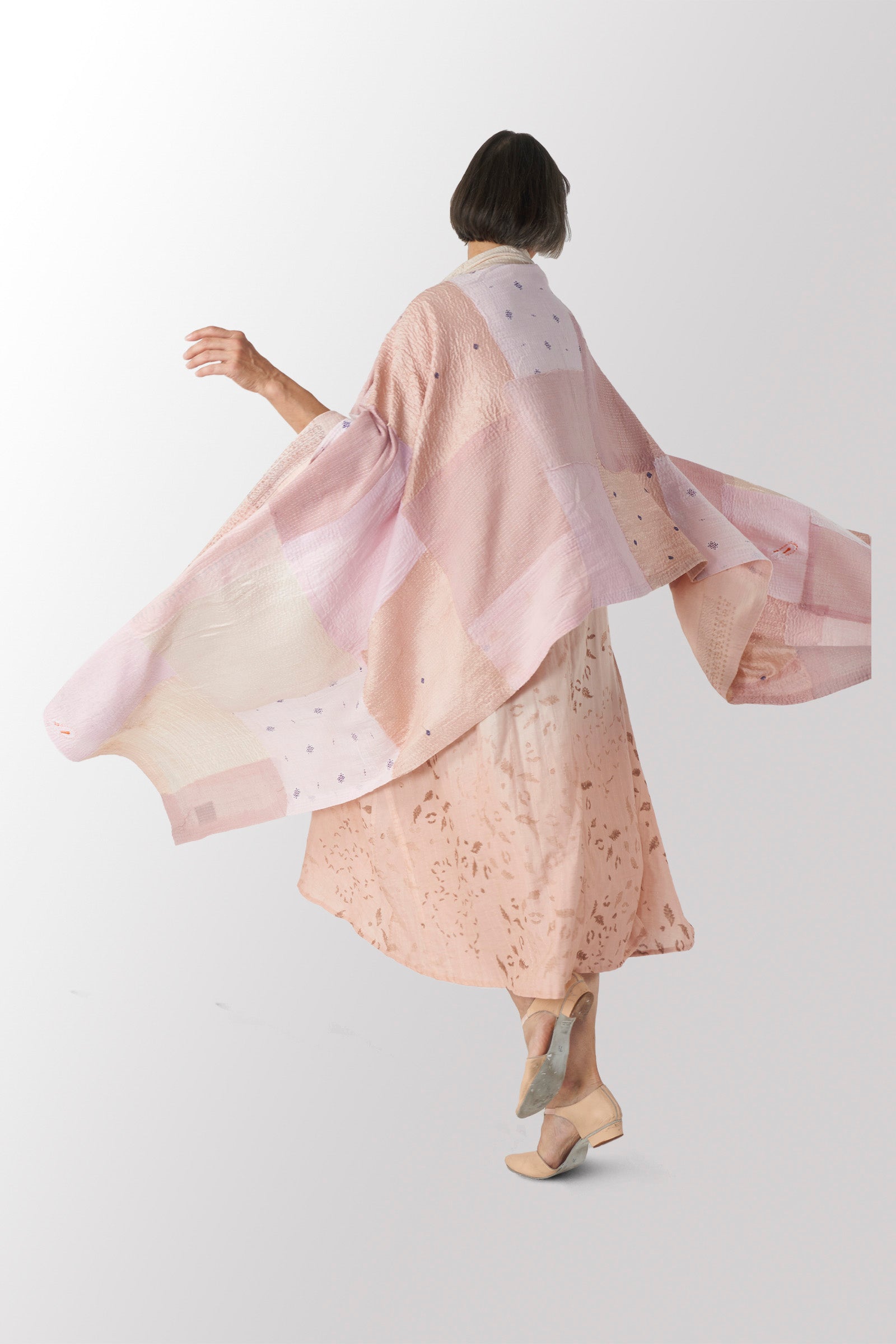 2 Layer Vintage Saris with Hand Stitches on Entire Garment - Reversible