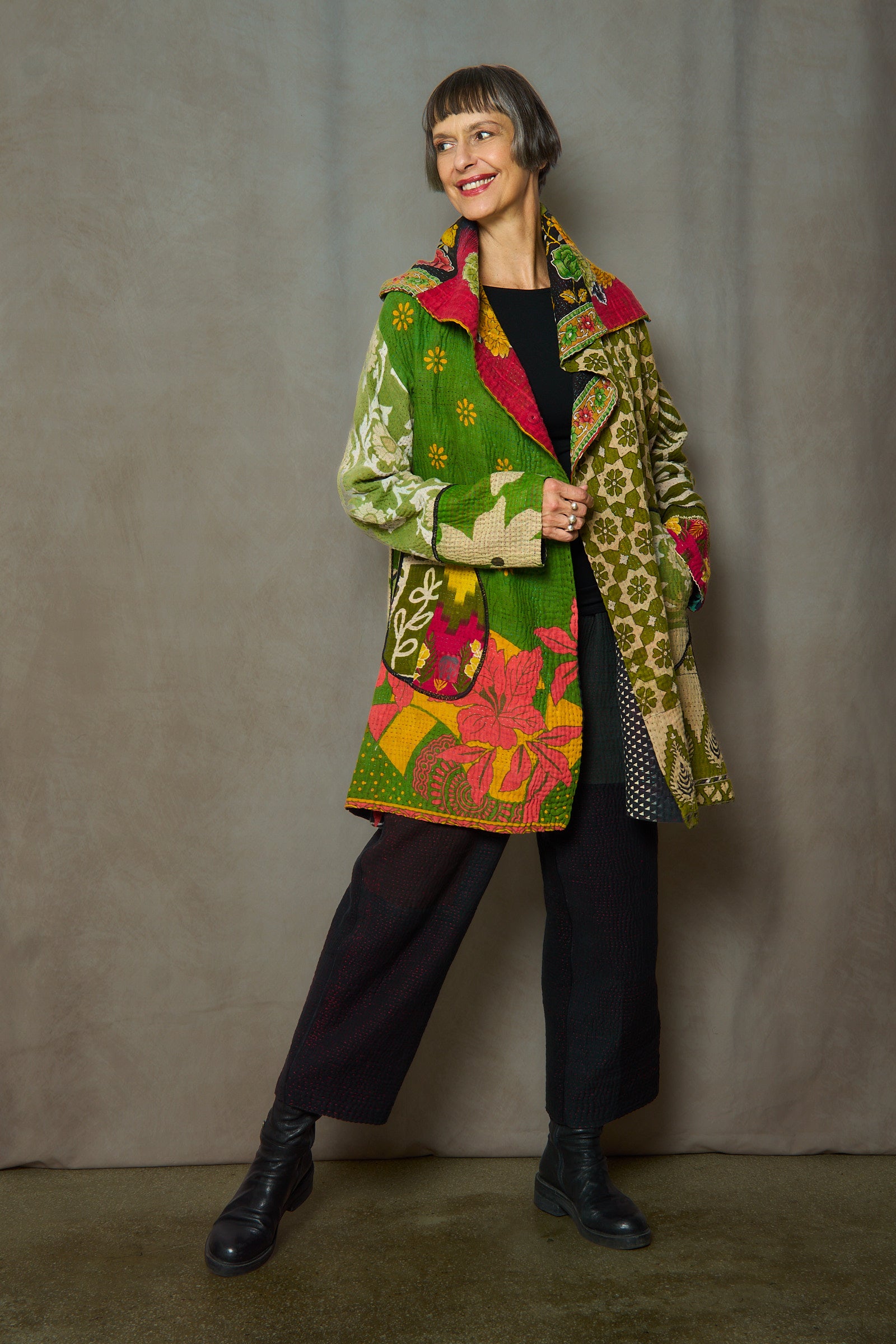 PUZZLE KANTHA A-LINE COAT P - pz4336-grn -