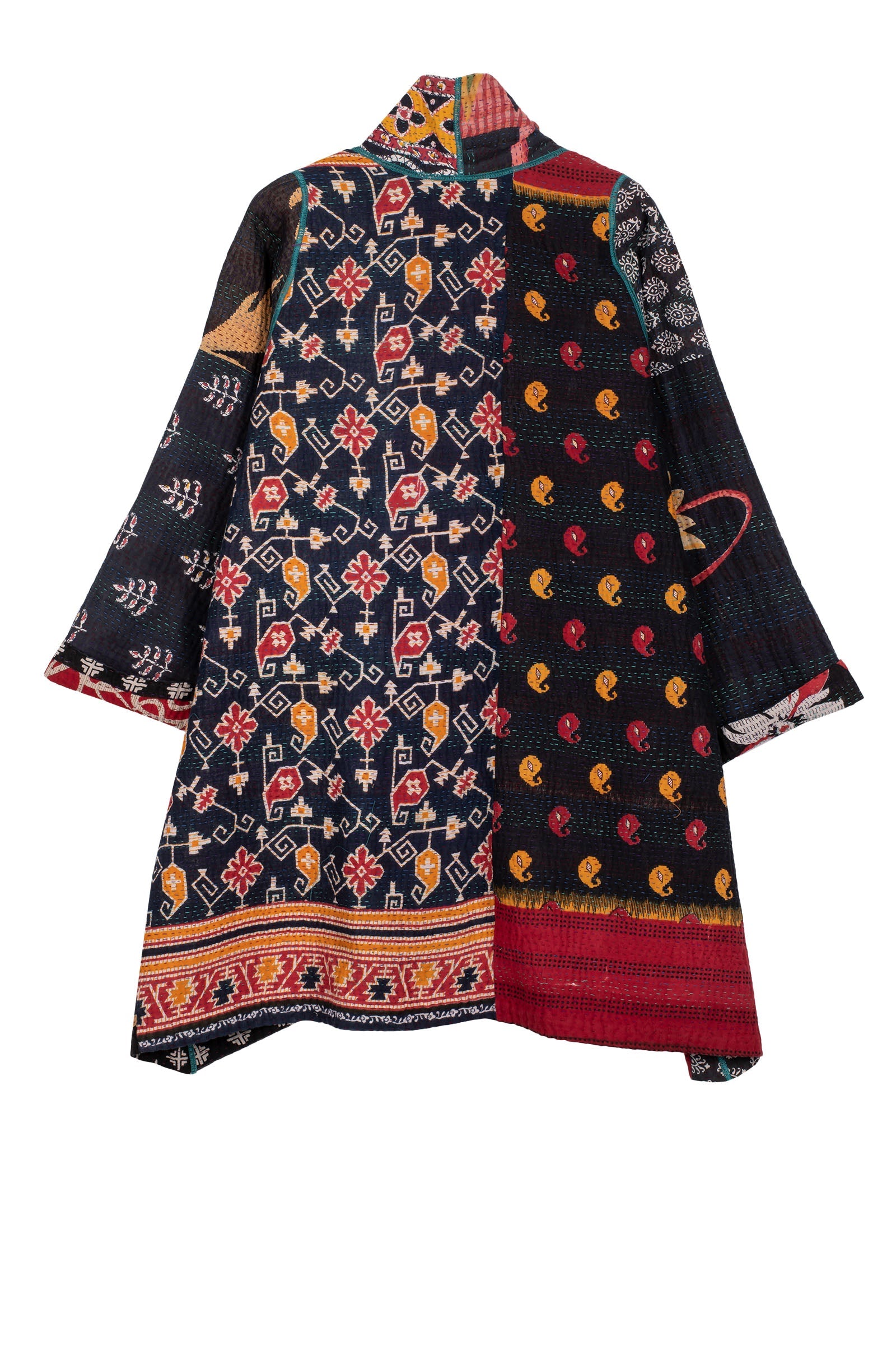 4 Layer Vintage Saris with Hand Stitches on Entire Garment - Reversible