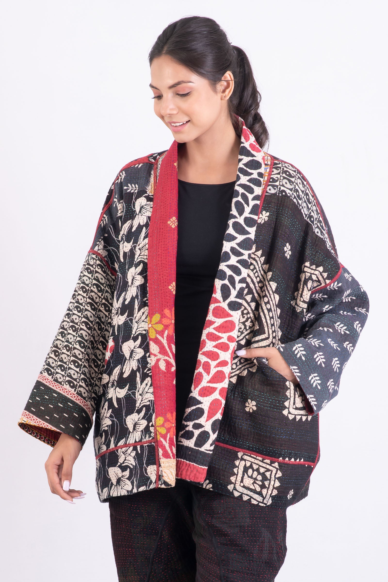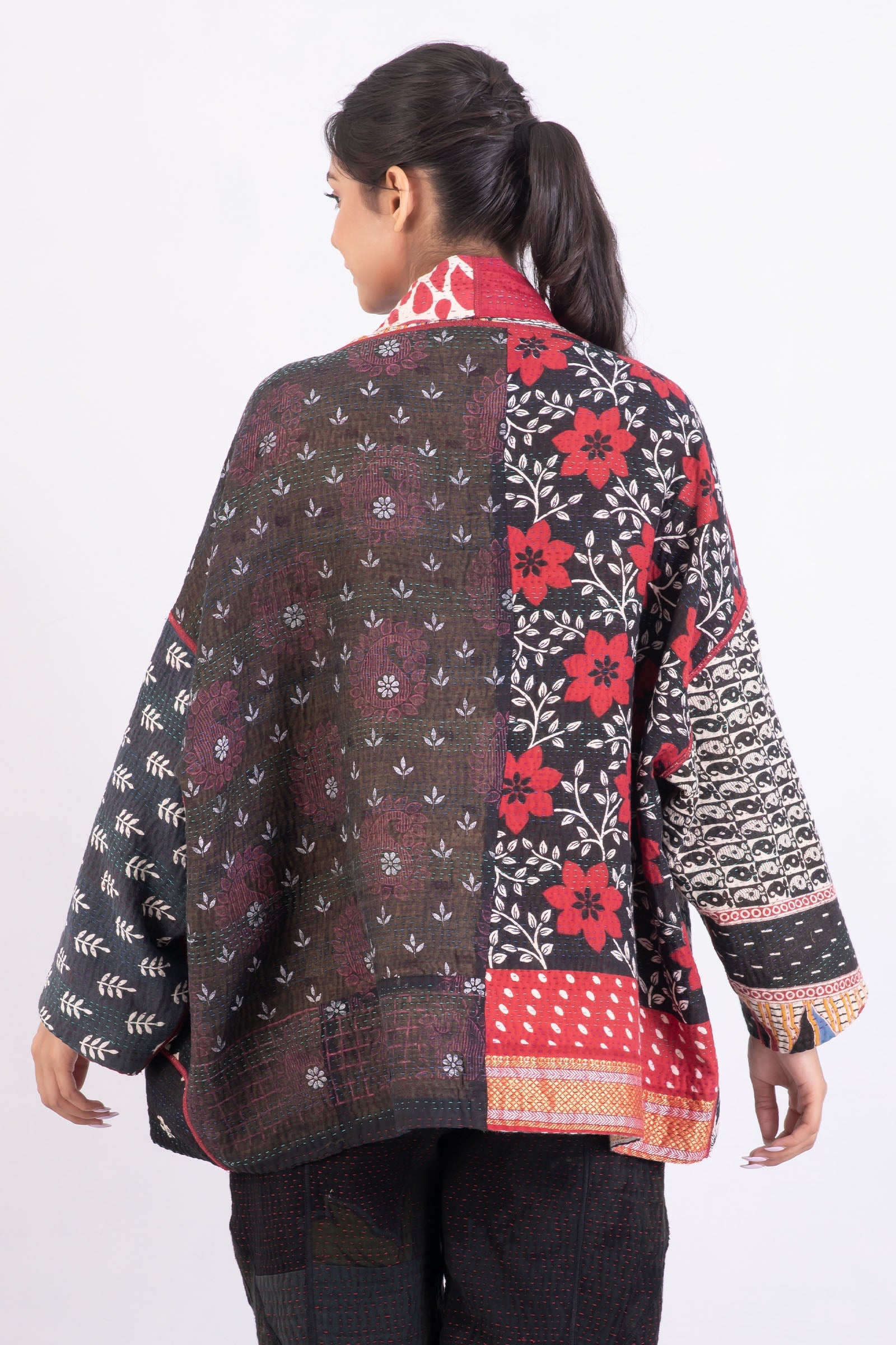 4 Layer Vintage Saris with Hand Stitches on Entire Garment - Reversible