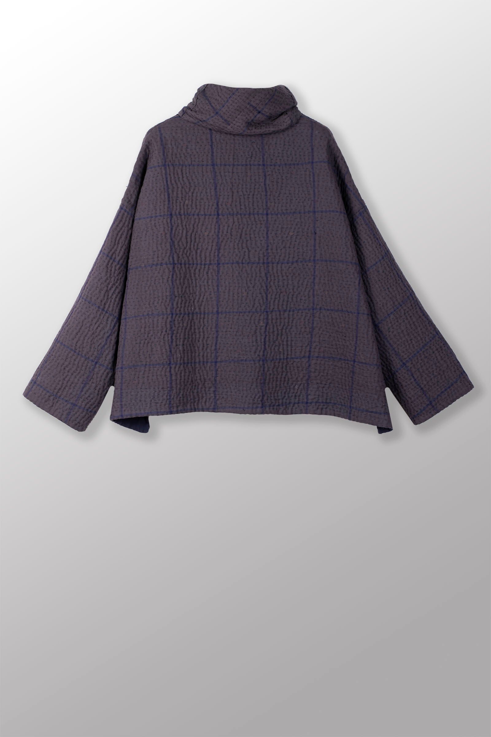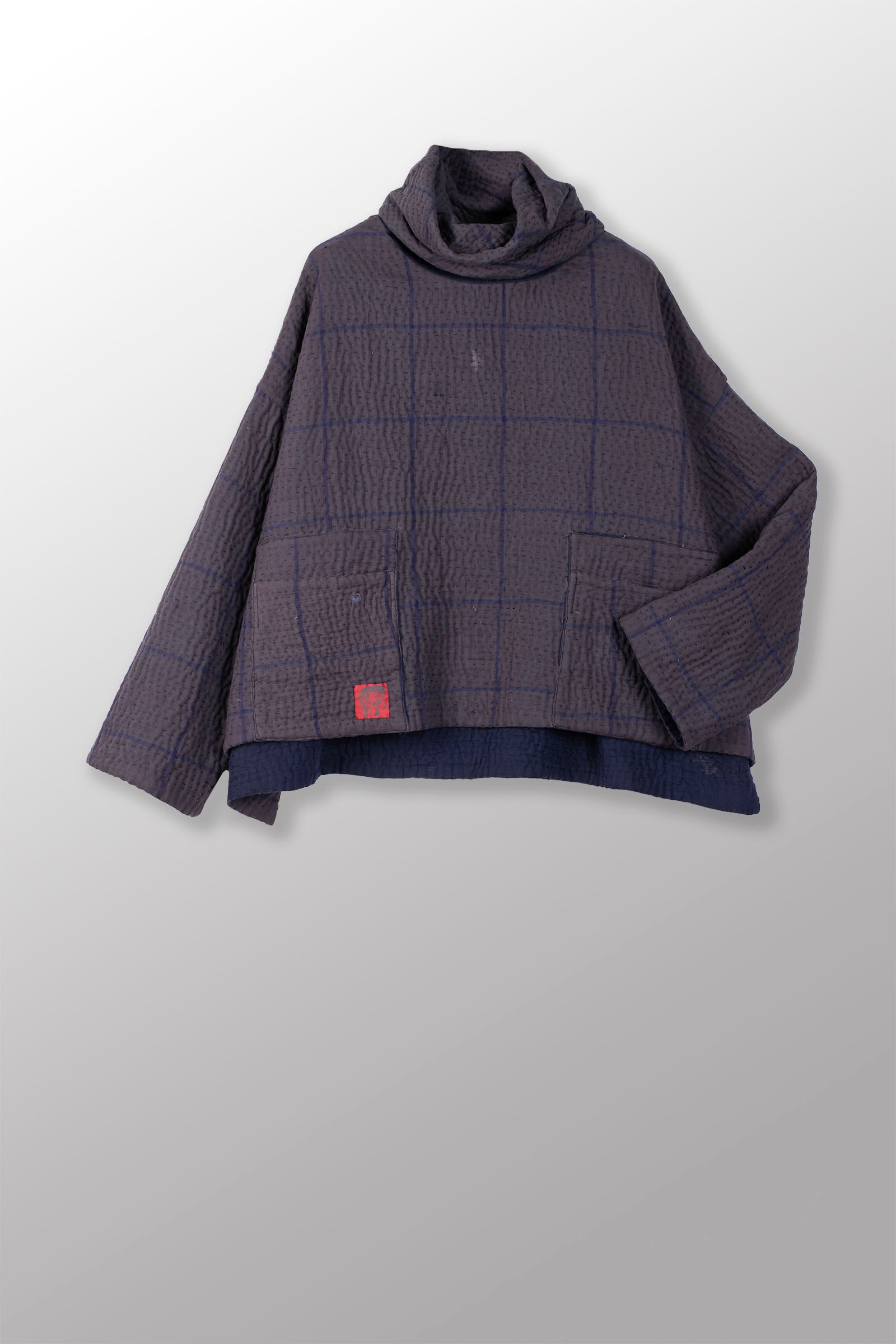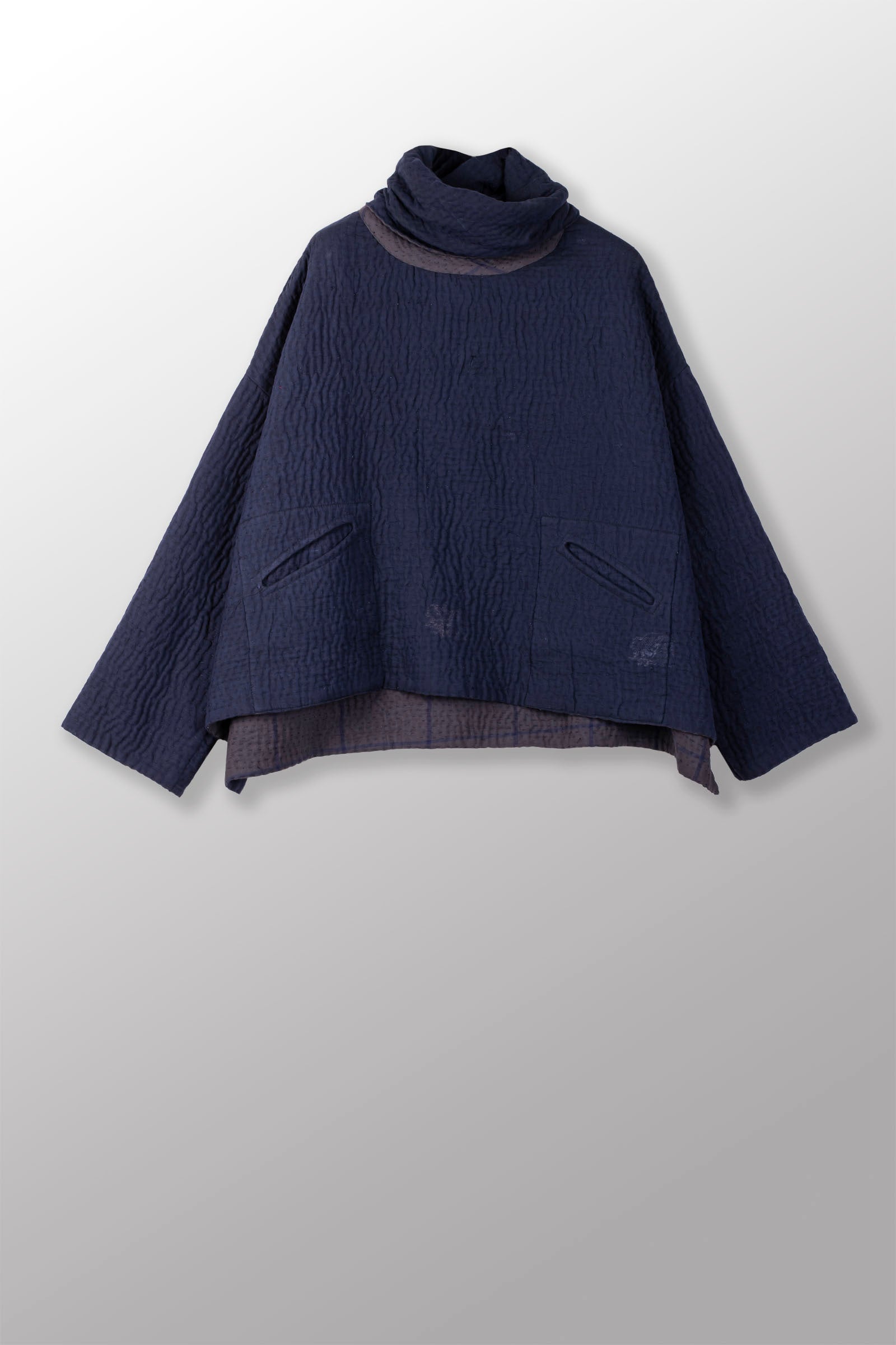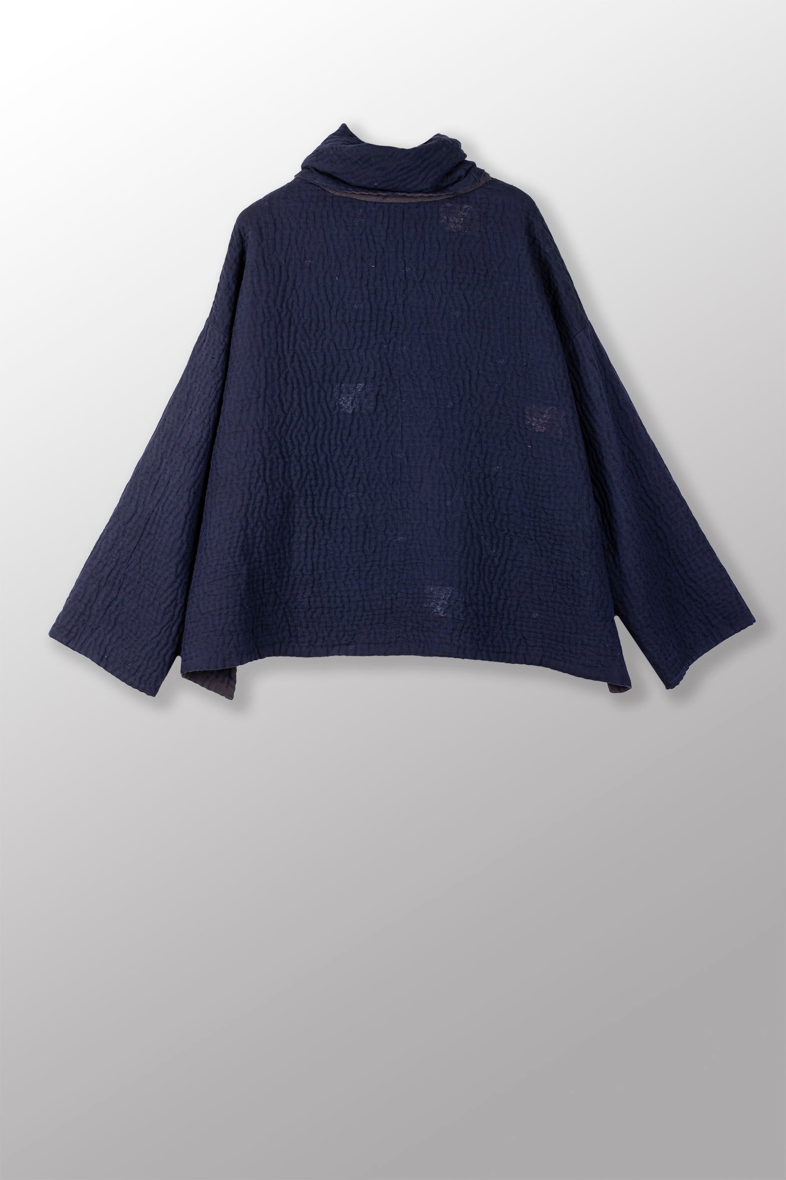 QUILTED VINTAGE COTTON WITH FLANNEL KANTHA NEW COWL NECK PONCHO - fq5083-blu -