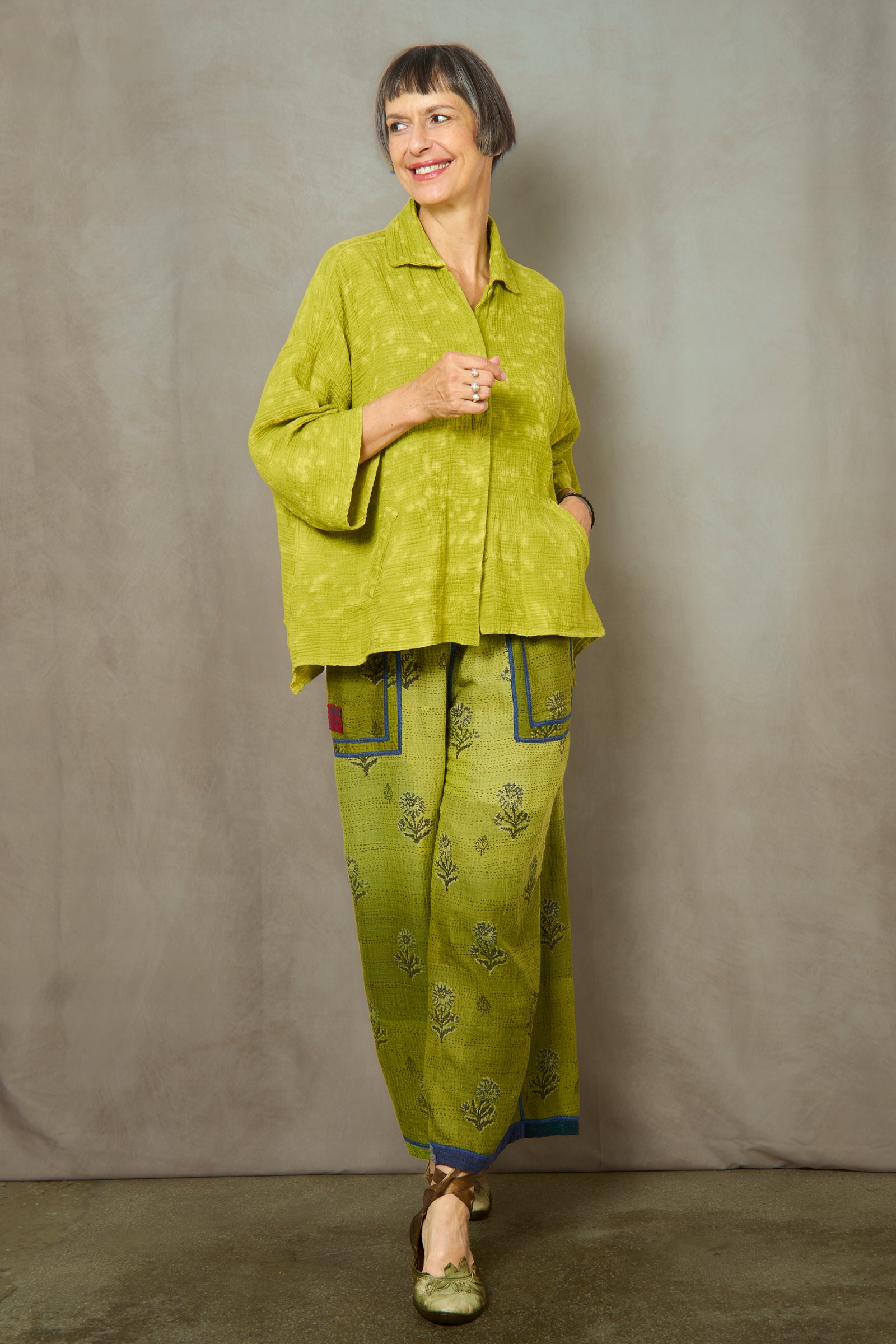 SAND SUN DYE RIPPLE KANTHA CROPPED TENT SHIRT - rs2596-lim -