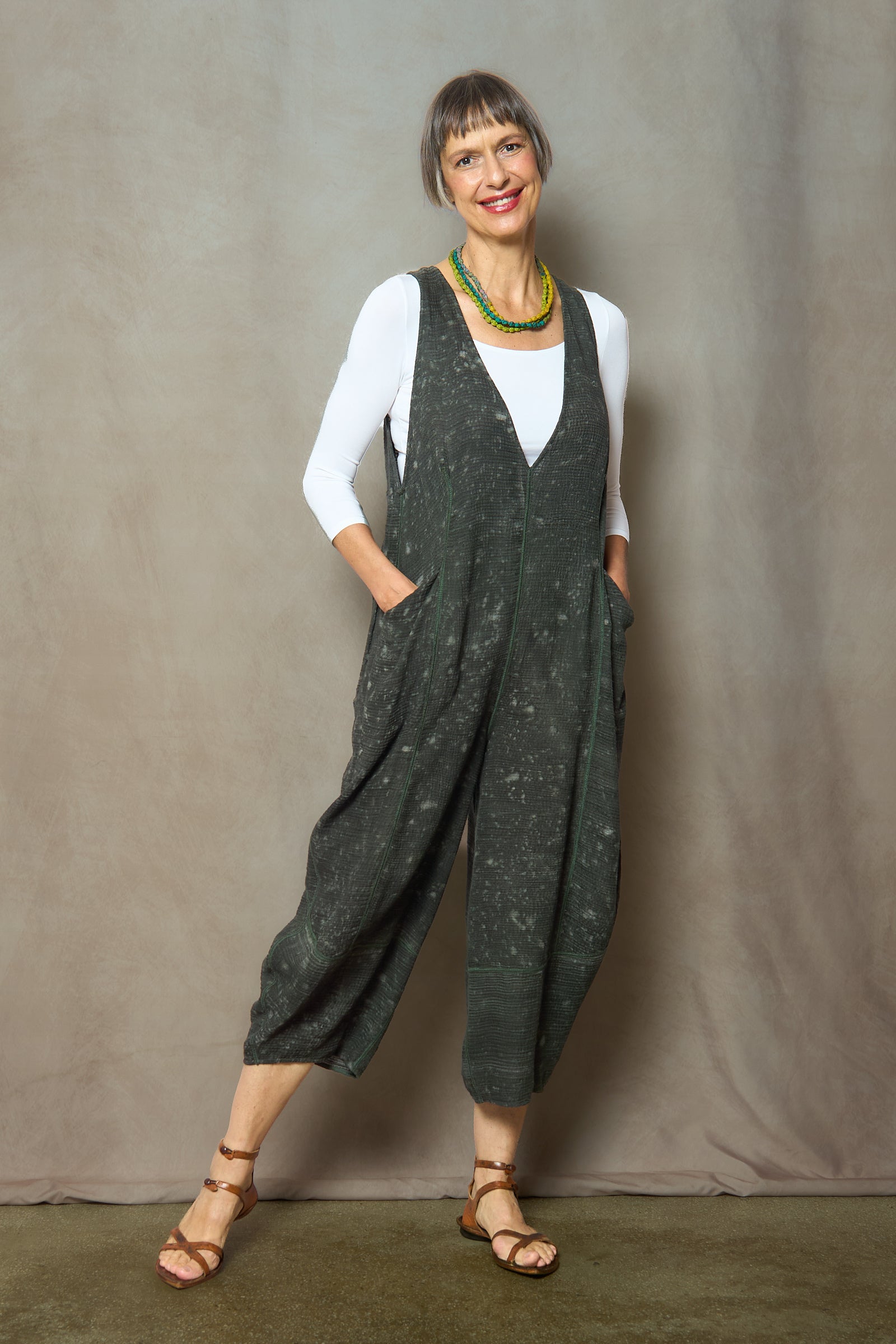 SAND SUN DYE RIPPLE KANTHA V-NECK JUMPER - rs2622-grn -