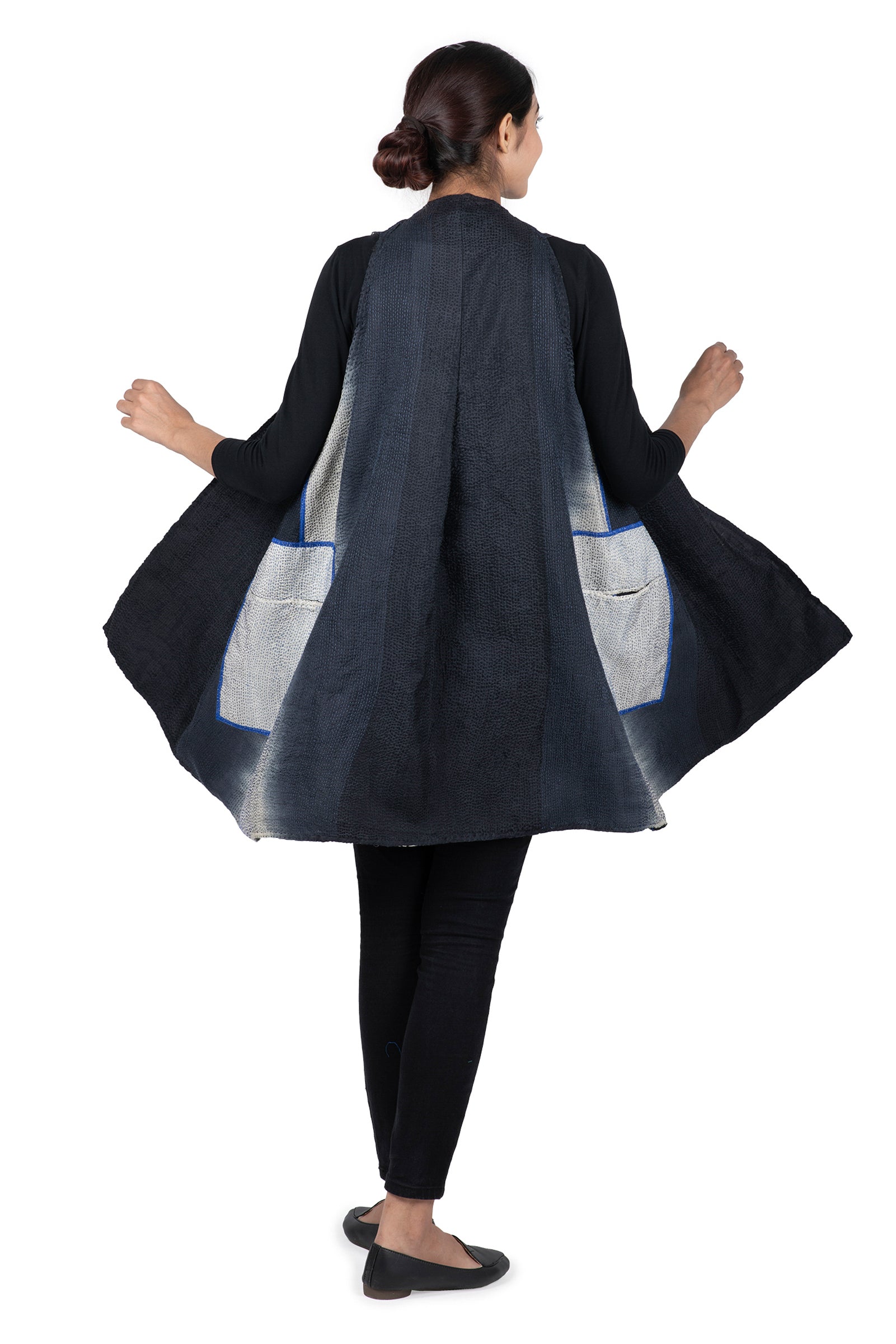 2 Layer Vintage Saris with Hand Stitches on Entire Garment - Reversible