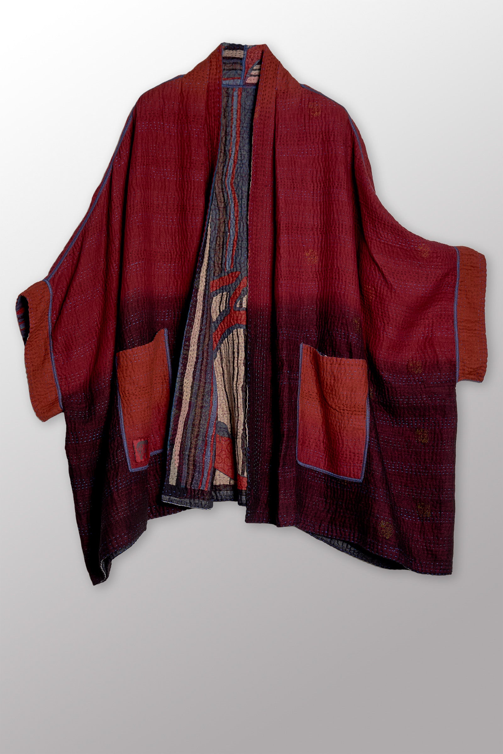 4 Layer Vintage Saris with Hand Stitches on Entire Garment - Reversible