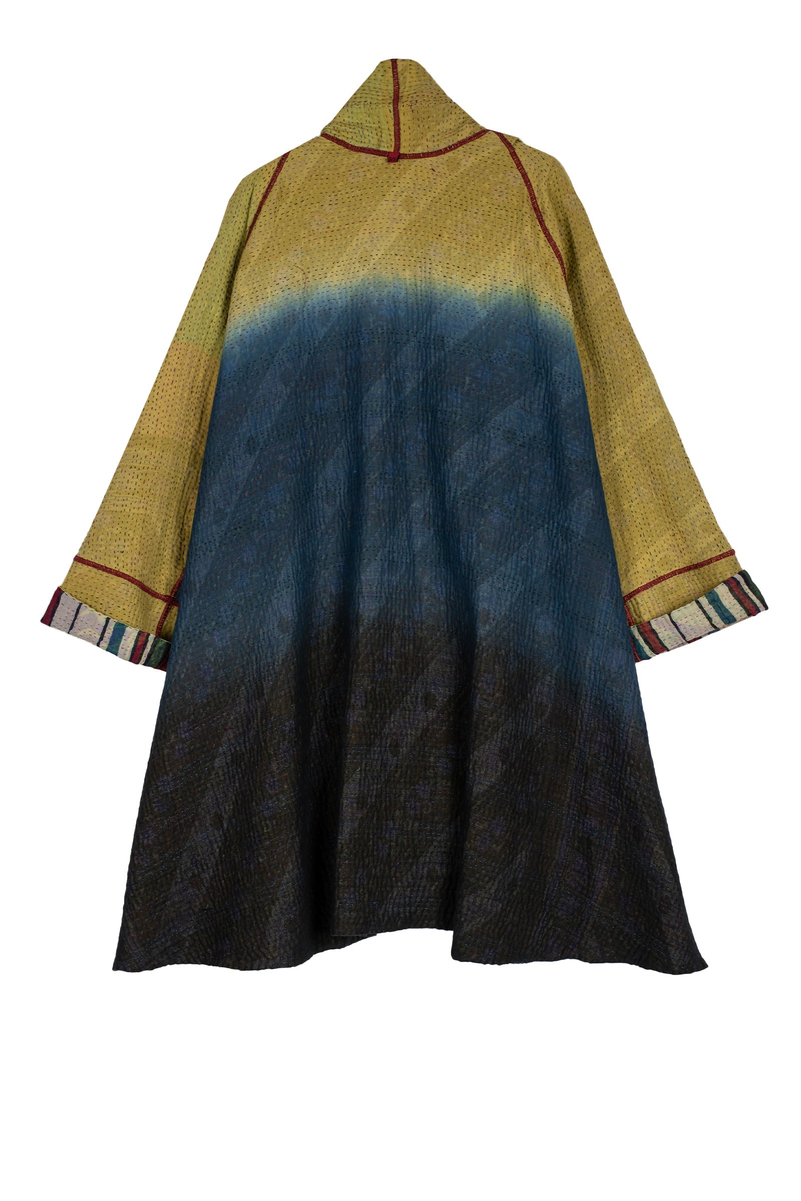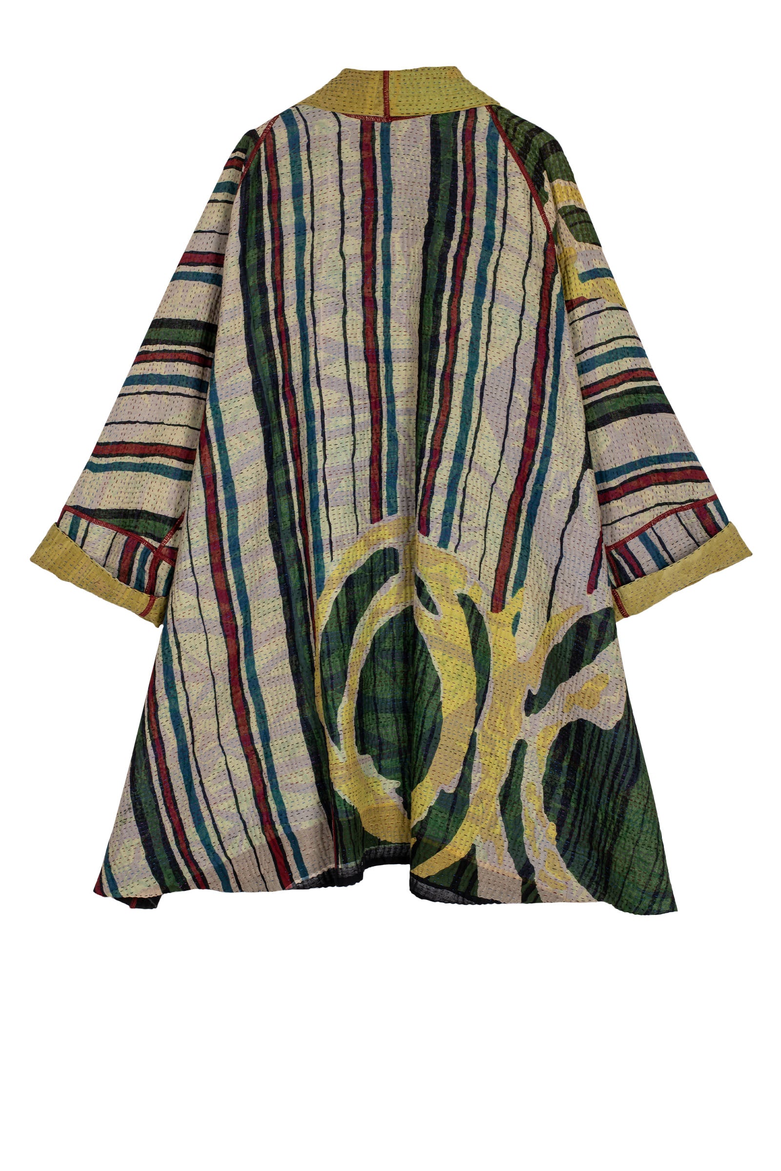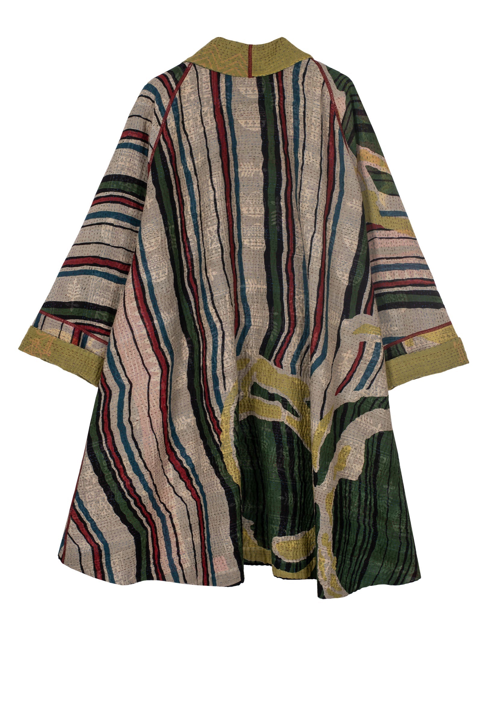 STRIPE AND BENDS KANTHA KIMONO LONG JACKET - sb4005-grn -