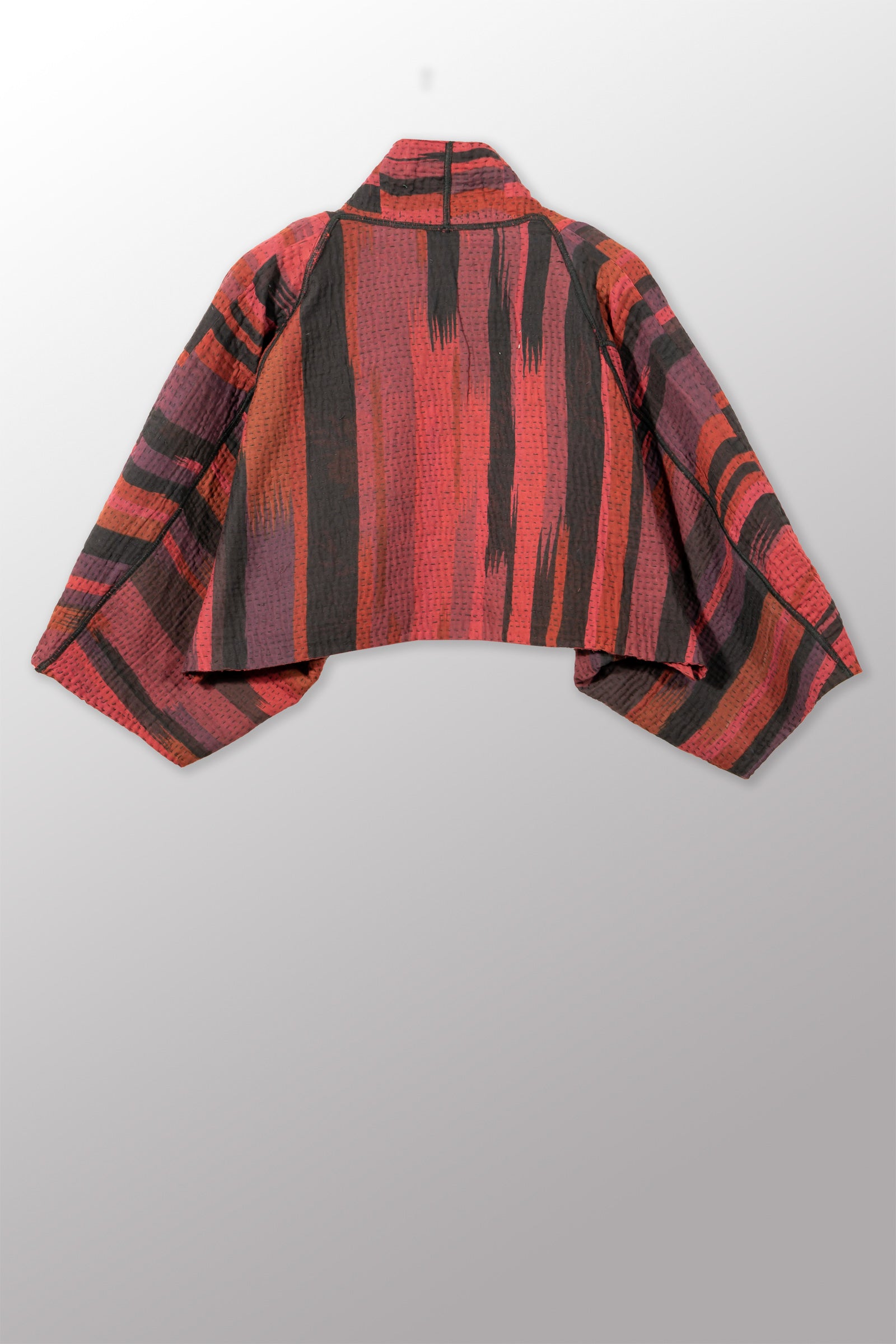 STRIPE AND BENDS KANTHA PUFF SLV. SHRUG - ov-sb4062-red -