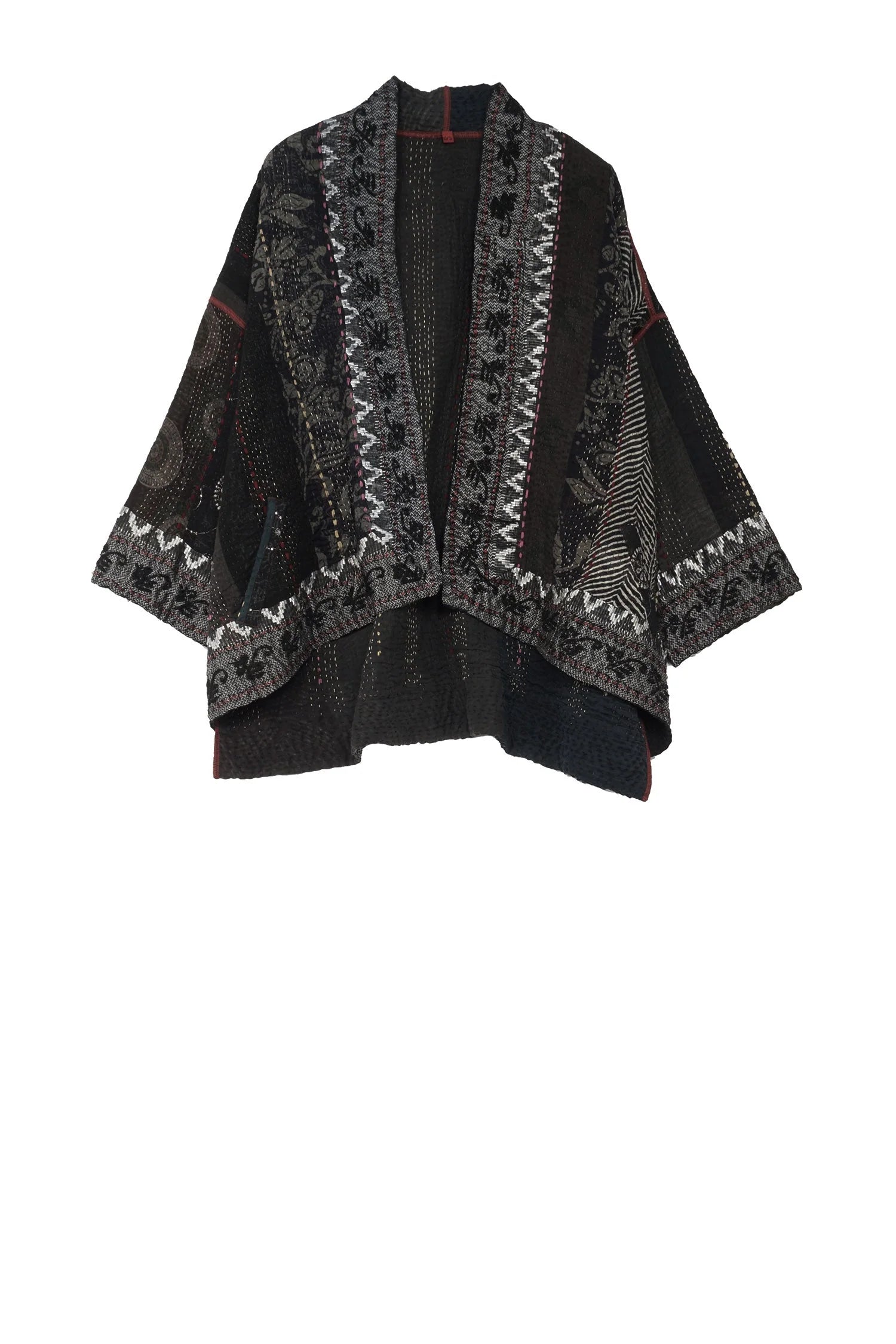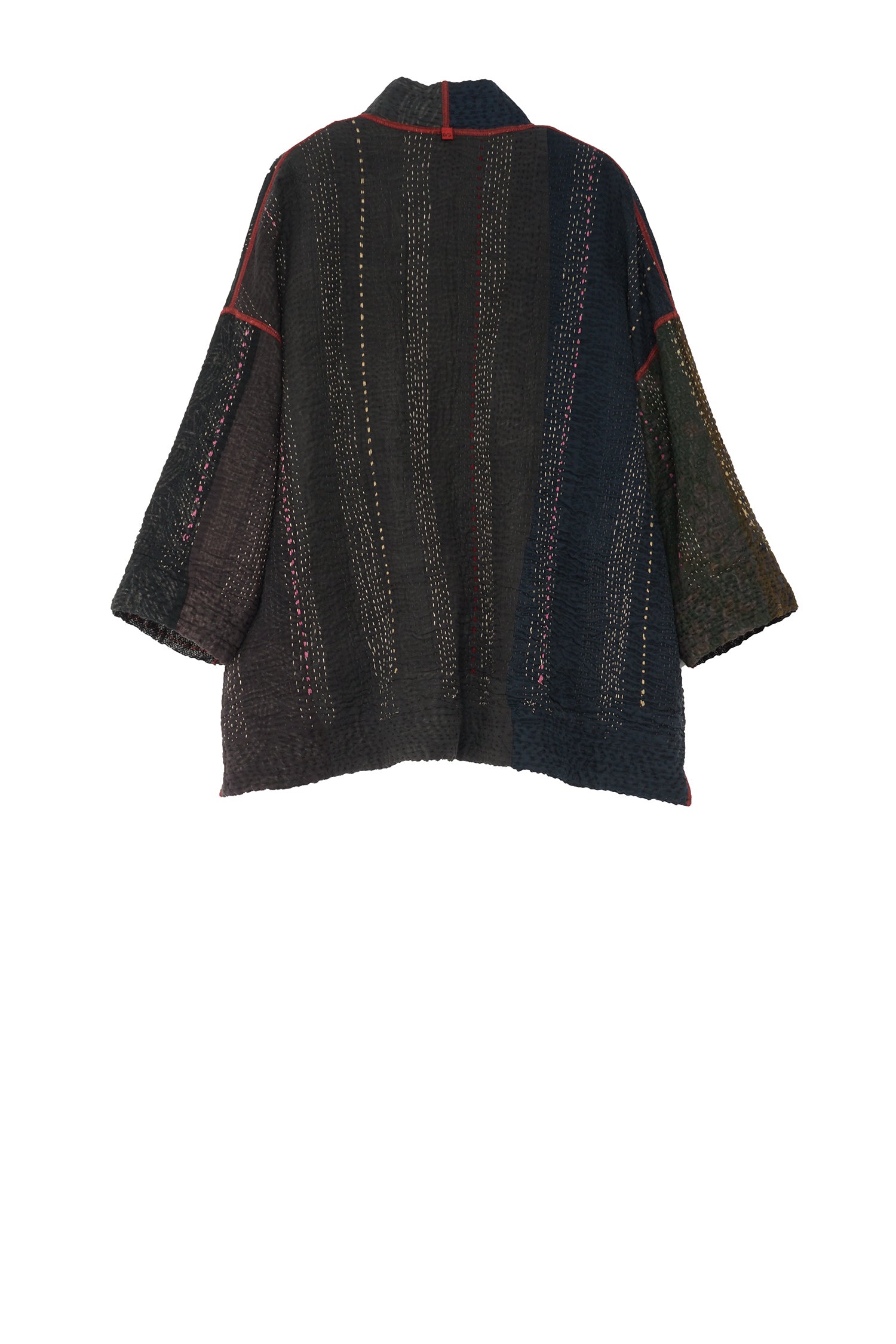 STRIPE RALLIS KANTHA MINI KIMONO JKT - pr4055-blk -