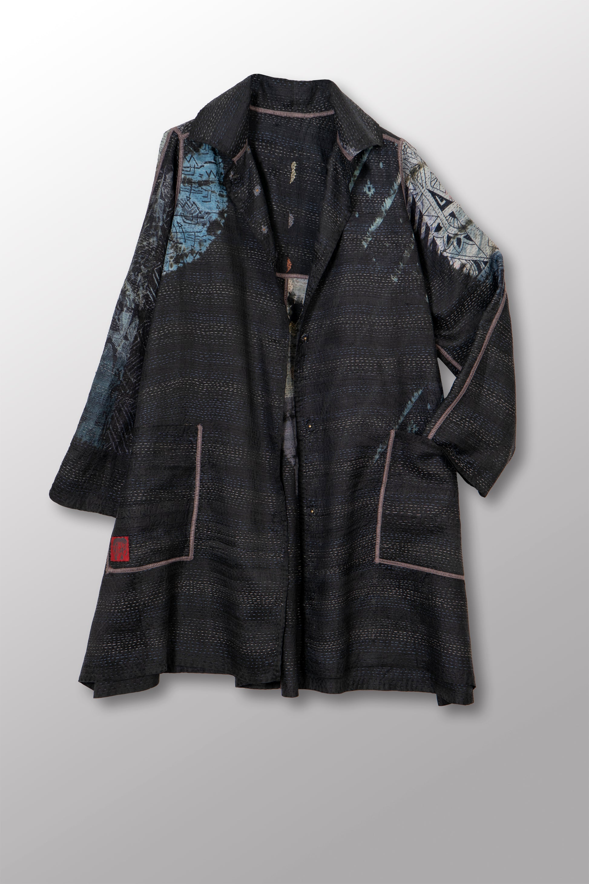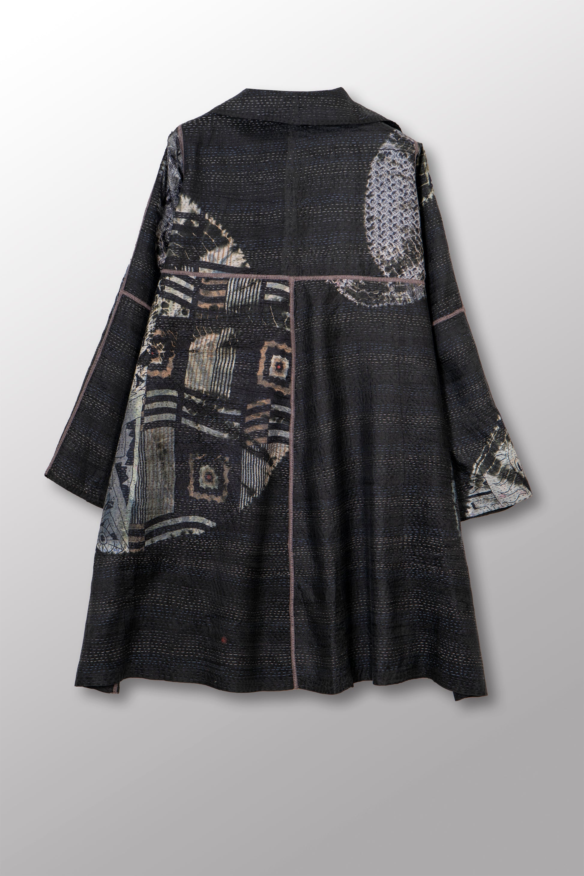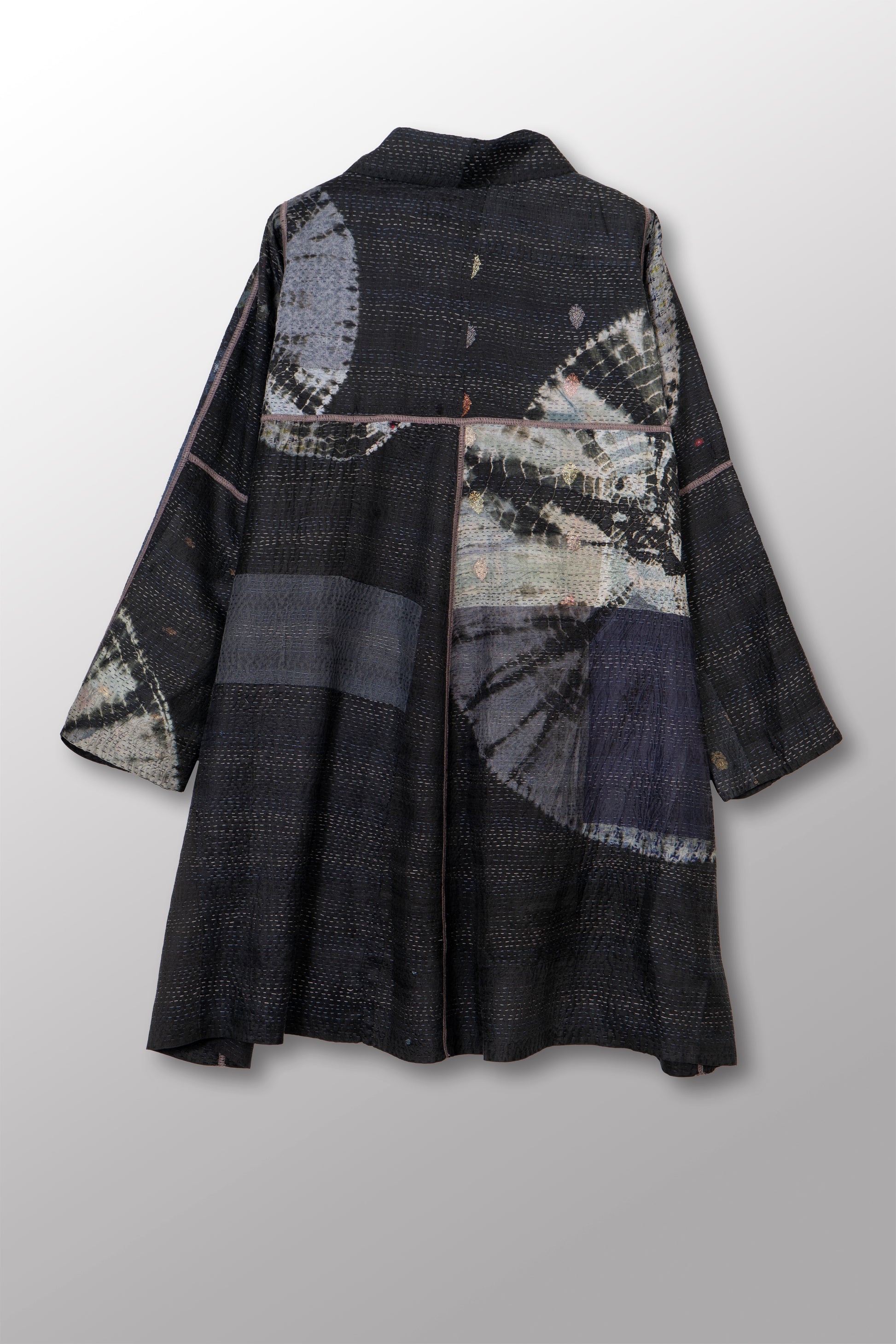 TIE DYE CIRCLE SHIBORI KANTHA A-LINE DUSTER - td2311-blk -