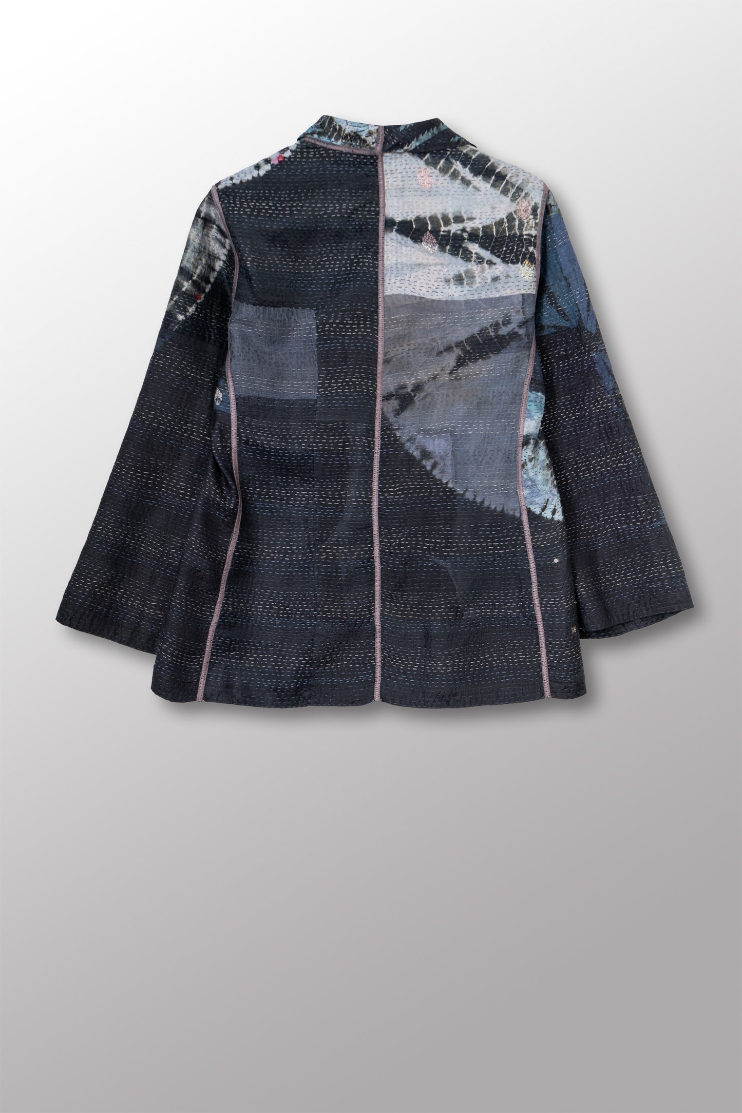 TIE DYE CIRCLE SHIBORI KANTHA SHORT JACKET - td2007-blk -