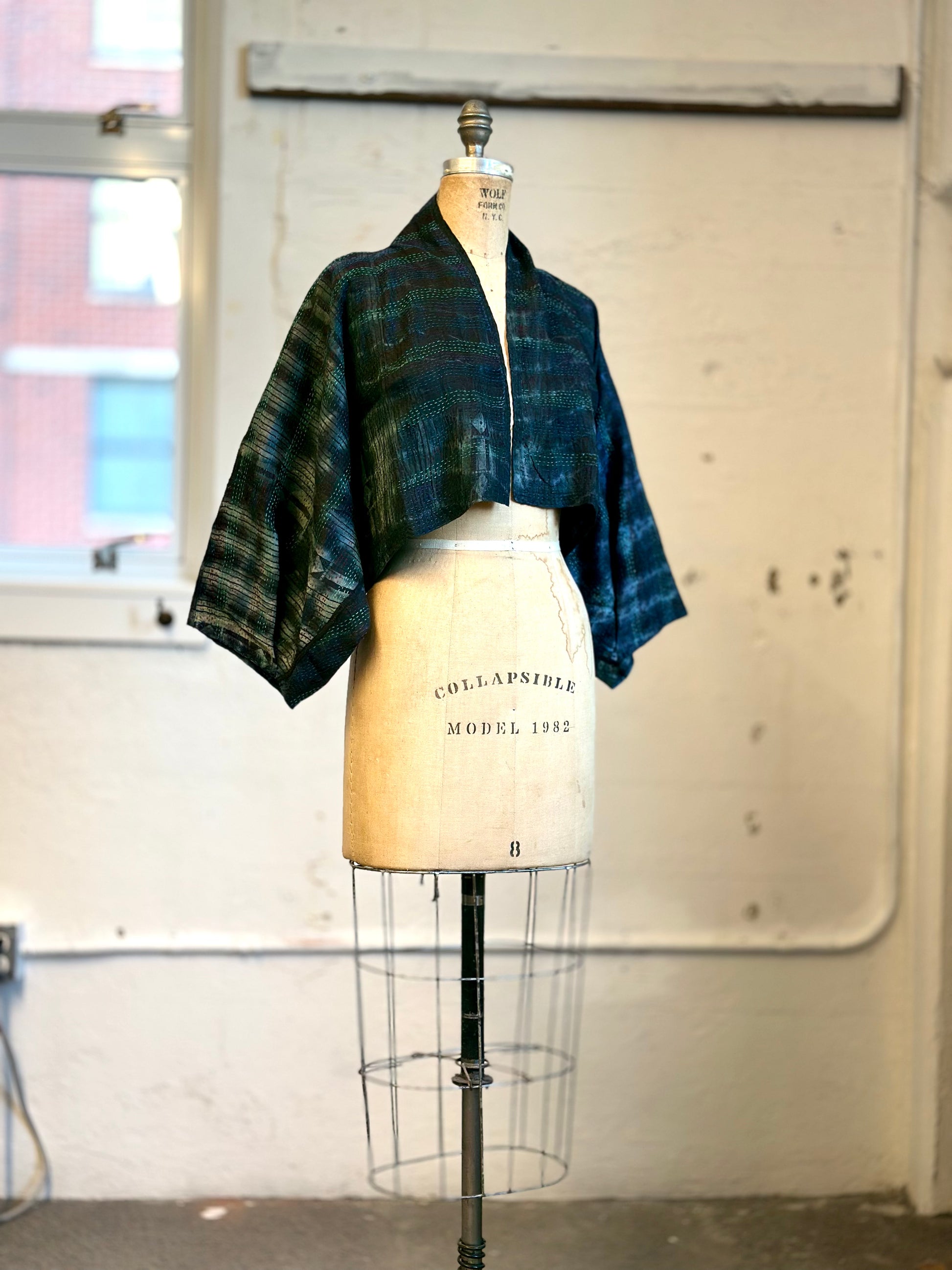 TIE DYE VINTAGE SILK KANTHA PUFF SLV. SHRUG - st-sv2062-blk -