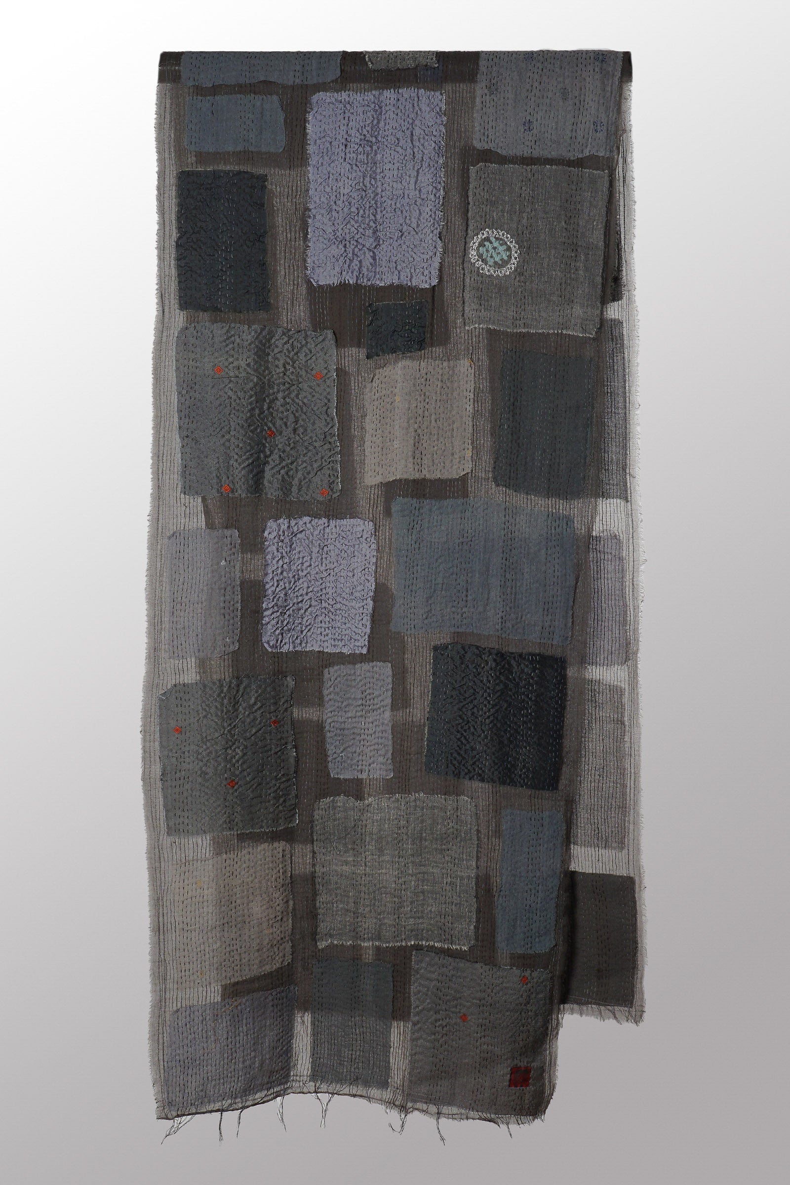 TONAL TILE PATCH KANTHA SCARF STANDARD - tt2801-gry -