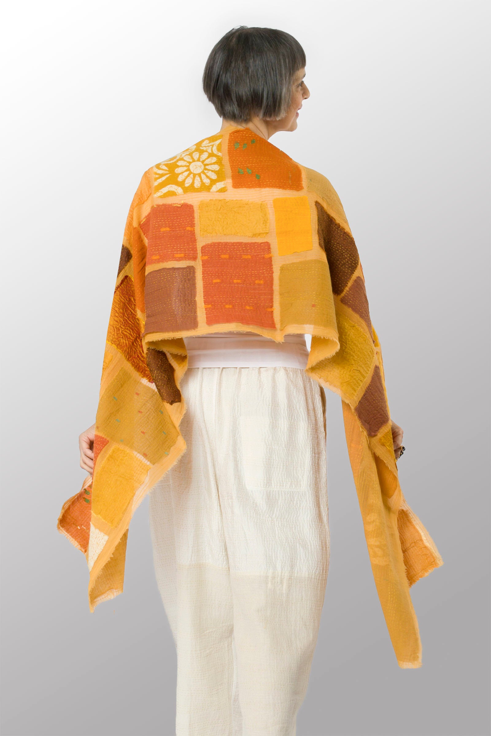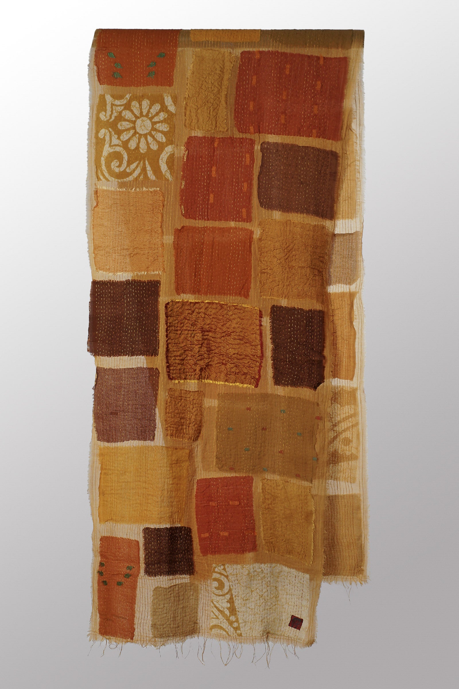 TONAL TILE PATCH KANTHA SCARF STANDARD - tt2801-ylw -