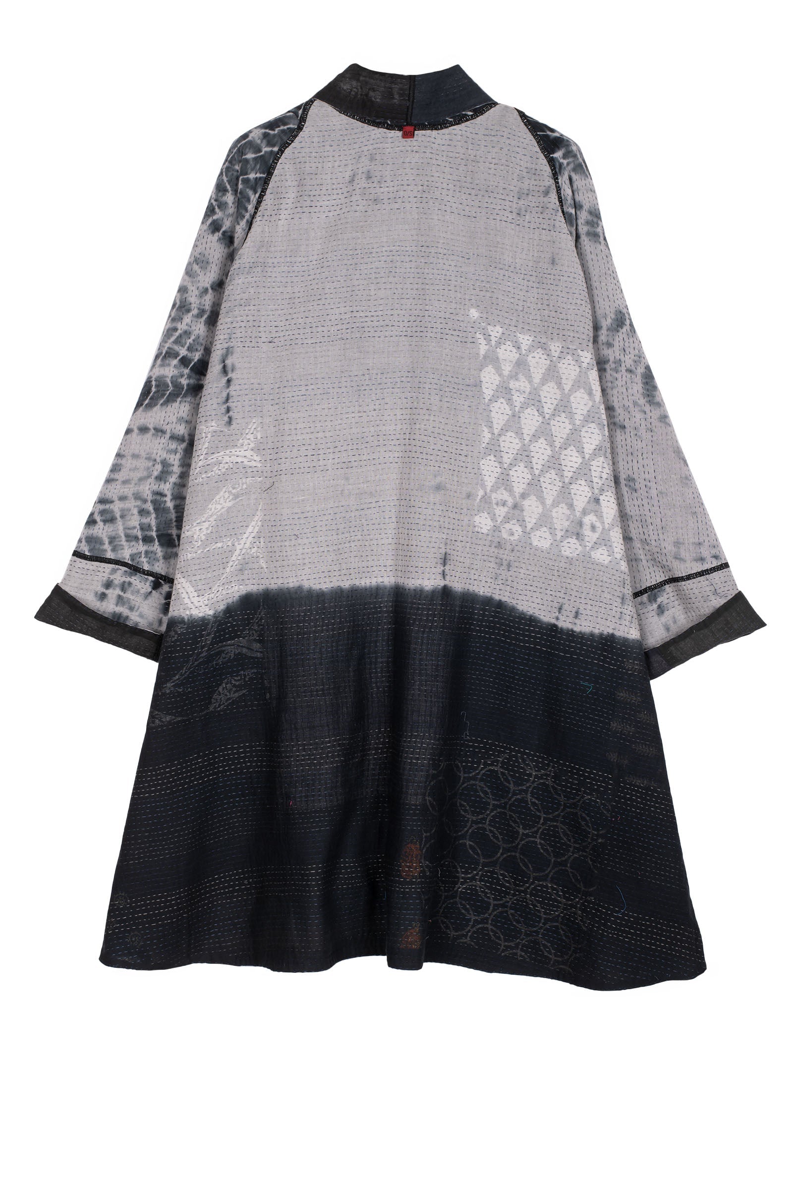 VINTAGE BOTTOM PRINT KANTHA KIMONO LONG JACKET - vb2005-blk -