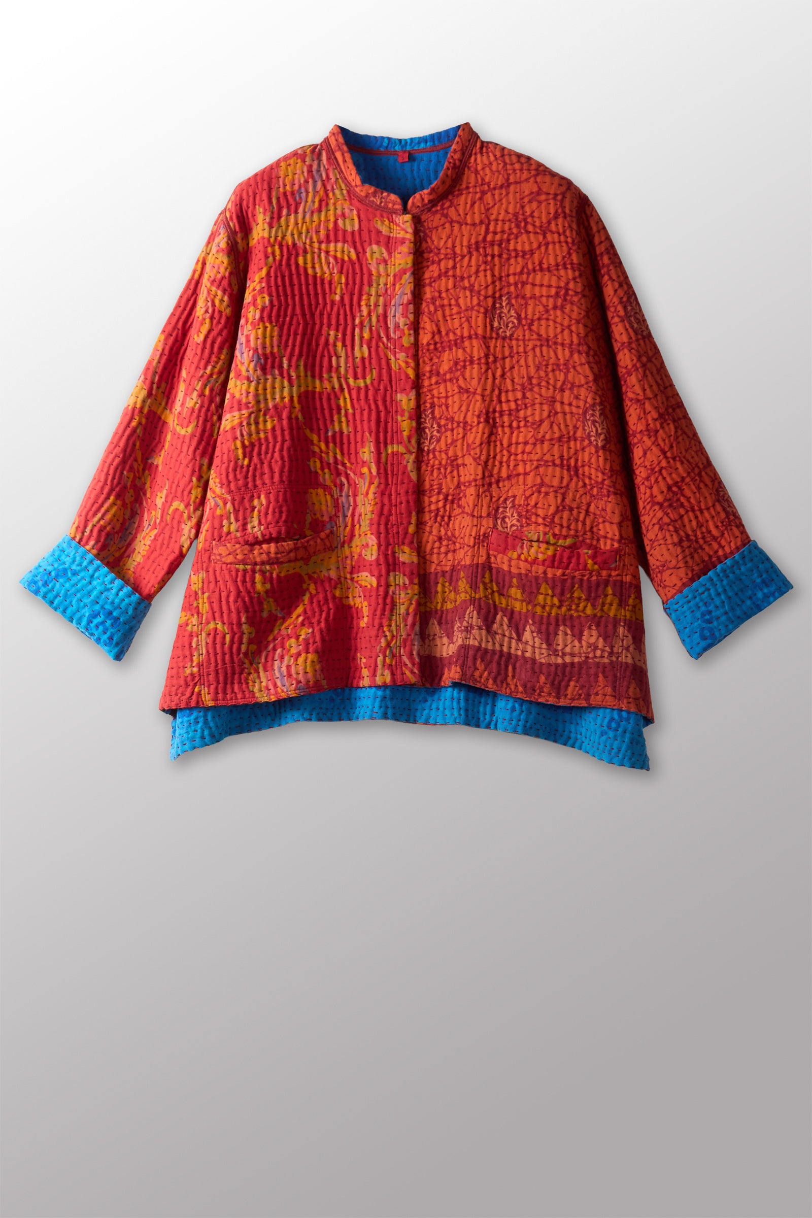 VINTAGE COTTON BBK KANTHA KAFTAN JACKET SHORT - bb4088-0001s -