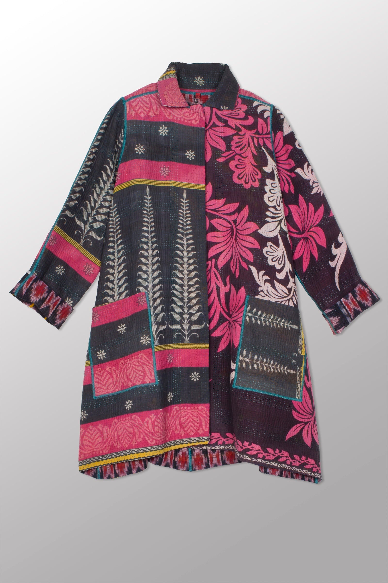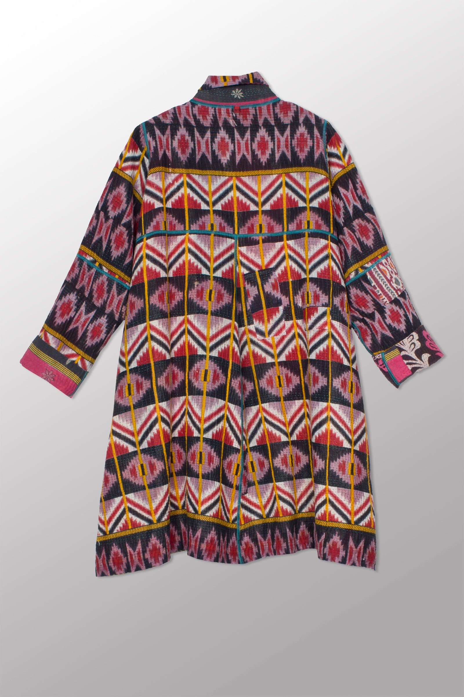 VINTAGE COTTON KANTHA A-LINE DUSTER - cv4311-0103a -
