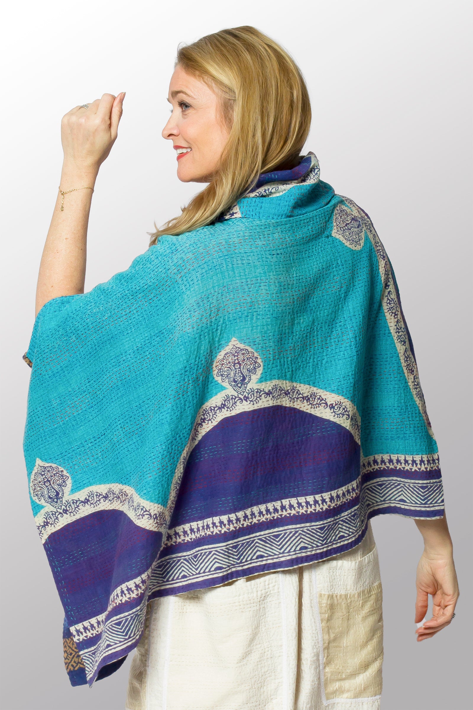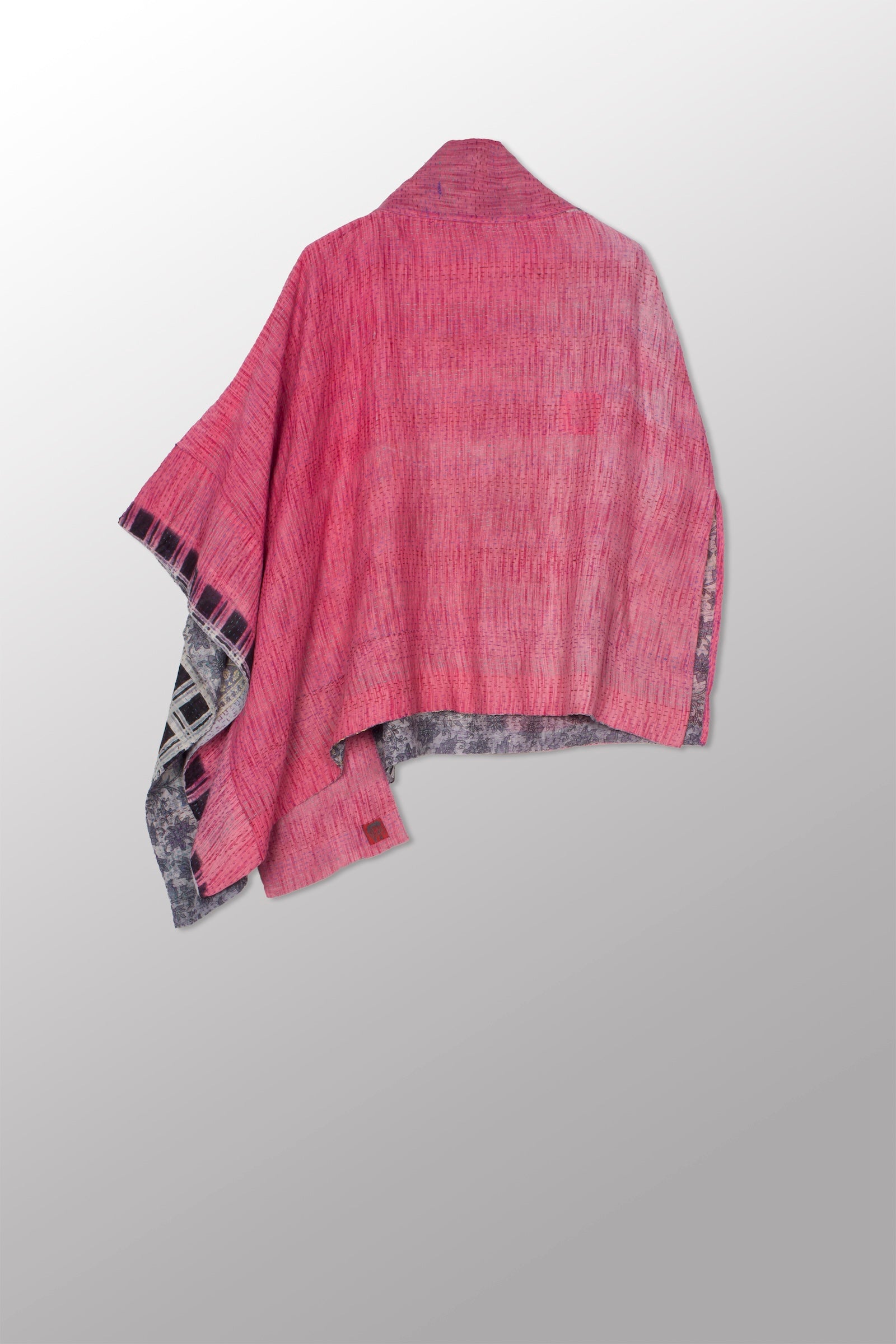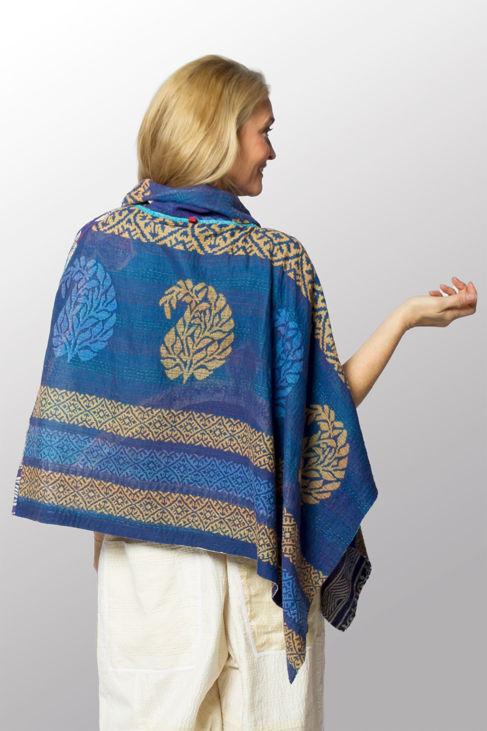 VINTAGE COTTON KANTHA COWL NECK LONG CAPE - cv2842-0001a -