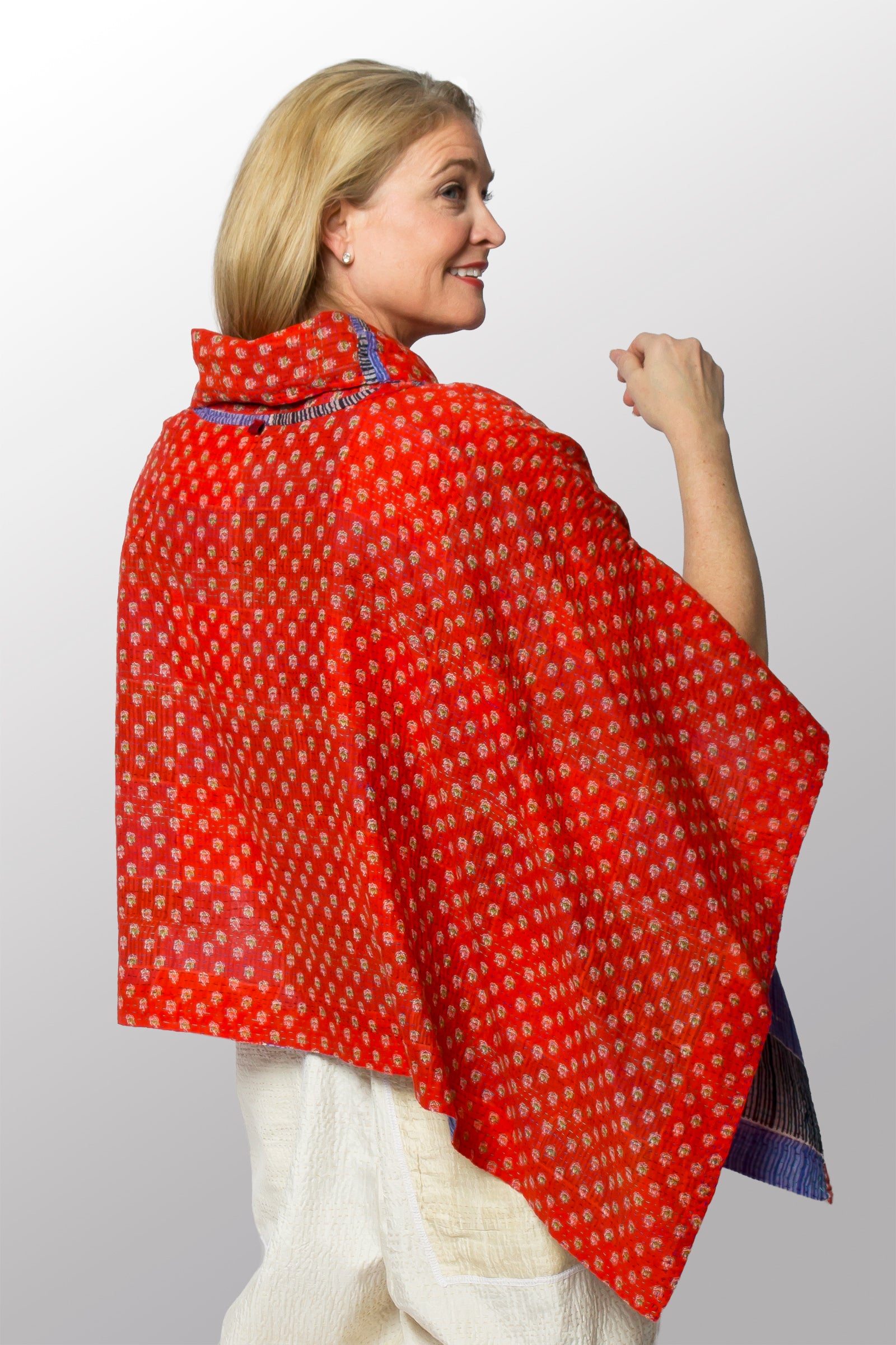 VINTAGE COTTON KANTHA COWL NECK LONG CAPE - cv2842-0005a -