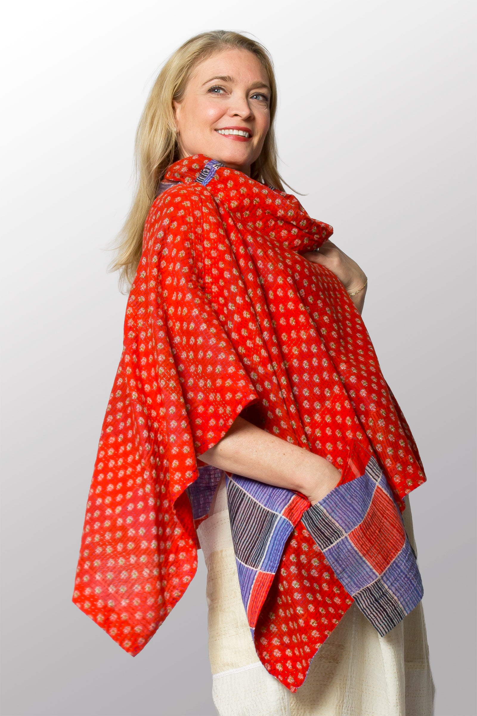 2 Layer Vintage Saris with Hand Stitches on Entire Garment - Reversible